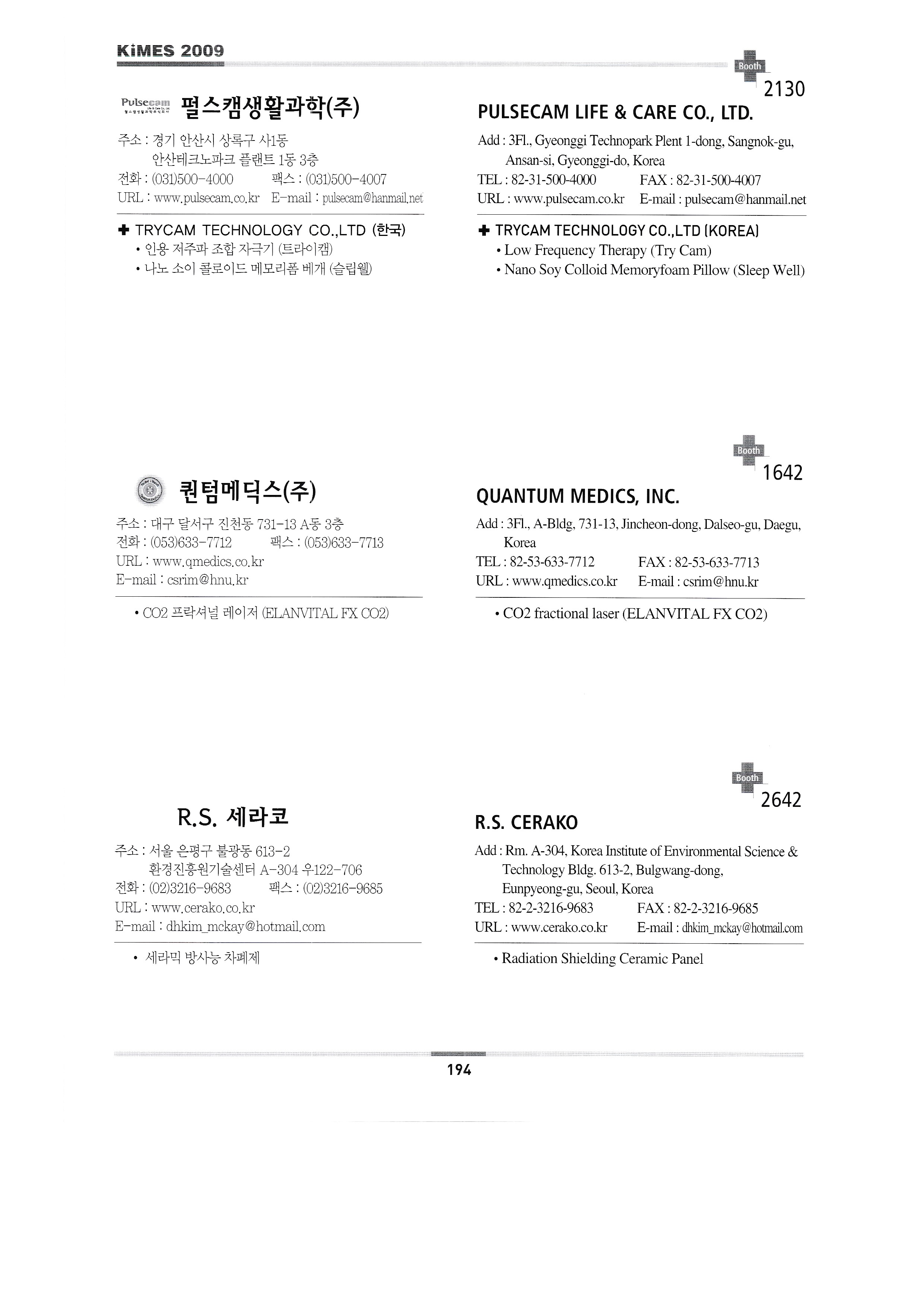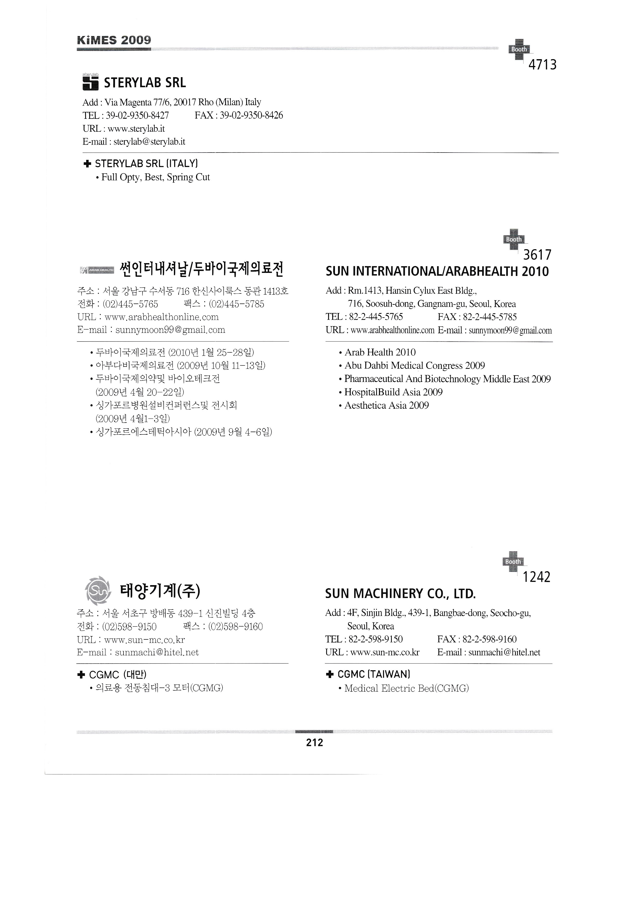 Mirae Medics Mirae S&T Co., Ltd. Misotec B&H already MMA Korea Specification MKT Inc. (Hap) Mou Medical MS Health Care Ncare Nagai Leben Co., Ltd./Bobo Trading Co., Ltd. Nano Carbona Inc. Naum Care Co., Ltd. Neo Doctor Neomed John Corporation Neoplastic Surgery & Cosmetic International Net Blue Co., Ltd. Nexon Co., Ltd. Next Safe Co., Ltd. Nolan Bio Entec Corporation Nuga Medical Co., Ltd. Okome Co., Ltd. Ohsung Meanders OMG Omron Healthcare Hanmaeum Care Optobiomed Co., Ltd. Optowell Corporation Dongui University Oriental Medicine Silver Wellness Project All Tech oryx Open Korea OSO Corporation Osong Life Co., Ltd. Osteosys Co., Ltd. Autos Tech Co., Ltd. Open Care Co., Ltd. PACIFIC HOSPITAL SUPPLY CO.,LTD. Korea Paul Co., Ltd. P-Pleasure Tech Pananomix Corporation Pennsylvania Peoples Co., Ltd. Person Medical Phoenix Vision Fitro Philips Electronics Co., Ltd. Phoenix Mecano Korea Co., Ltd. Cyprus Pointnix Co., Ltd. Fine Trading POSCOM Corporation Primpo PRIMESTAR INSTRUMENTS Protos Co., Ltd. PS Eye Co., Ltd. Pulse Cam Life Science Quintum Medics Co., Ltd. R.S. Cerako RB&C Redesign Co., Ltd. REED SINOPHARM EXHIBITIONS CO.,LTD. Rep Tech Co., Ltd. Reveco Medical Co., Ltd. ROSSMAX INTERNATIONAL LTD. Line Messe Royal Electronic Medical Device RUBBEREX MALAYSIA Royal Medical Co., Ltd. 2009 Retirement Preparation & Silver Industry Fair Saehan Meditech Co., Ltd. Saeul Biotech Co., Ltd. Samwoo Electronics Precision Samson Samsong Caster Samson Corporation Samsung Protector Sangdo Med Sanam Tech Co., Ltd. Sale You Freezer Sangjeong Trading Co., Ltd. SCC Haijin Products Sein Industries Semitec Med 2009 Senior & Disabled Expo Sewoo Corporation Seodong Trade Shinchang Medical Industry Shinkwang Industry (SG Med) SHENZHEN BIOCARE ELECTRONICS CO.,LTD. Shinhwa Medical Shinjin Electronics Co., Ltd. Shinshin Meditech Shinwoo Inter Trade Shinyong Dental Co., Ltd. Siemens Healthcare Shinwoo Medical, Solar Korea C-Tech Medical Co., Ltd. SK-S Medical SM Tea Co., Ltd. SM Medical Tech (Luxo Korea) SnS Co., Ltd. S&S Co., Ltd. Solomon multimedia communication Sometech Co., Ltd. Suil Development Stabilus (Hyoil ENT) Spa Tech Co., Ltd. SFRI SARL Stratec Co., Ltd. STERYLAB SRL Sun International/Dubai International Medical Exhibition Taeyang Machinery Co., Ltd. Seongjin Seongjin Shimura Co., Ltd. Seonghwan E&B Co., Ltd. Sungkwang Meditech Sun Meditech SUNPEX TECHNOLOGY CO.,LTD. Sungsim Medical Industry Co., Ltd. Sunwoo Sunwoo Trading |