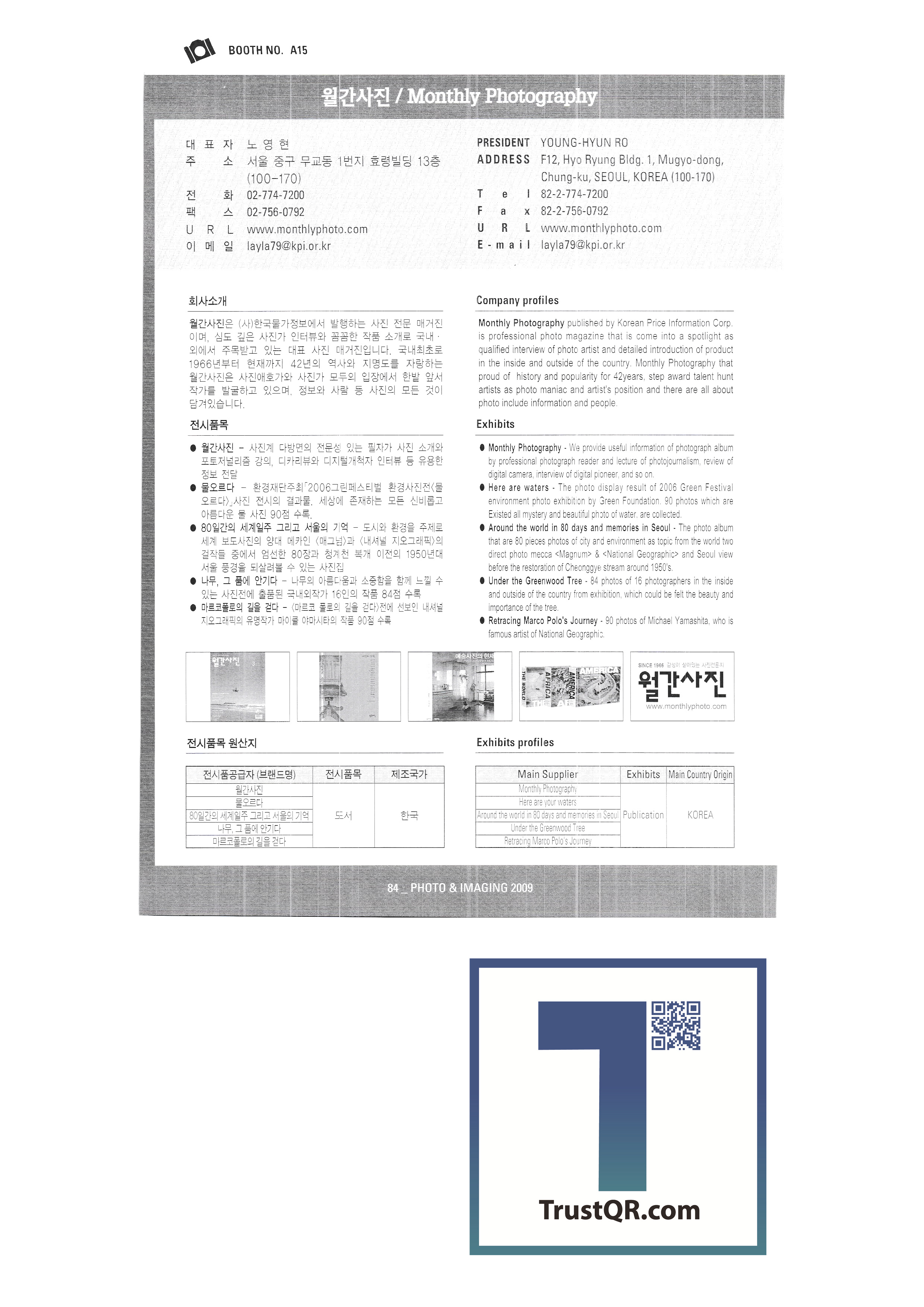 | 모던피아 미디어 브리지 미주리코알프㈜ 본젠 코퍼레이션 부원디지털 사진 사랑 삼양테크 샌디스크 코리아 샵 서원산업테크 세기P&C㈜ 소느로앨범 소니코리아 송화시스템기술㈜ 주식회사 스마트스퀘어 스탑북 ㈜스튜디오클럽 ㈜시큐라인 시프레임 ㈜씨비엘 ㈜씨앤피시스템 씨지코리아 아름다운사진 아트데코 에프엔씨코오롱 여울미디어 영수산업 영일정보 주식회사 예닐곱 예술도서 오로라 라이트 뱅크 올림푸스 한국㈜ 원배경 월간사진 ㈜웰퍼스트 |