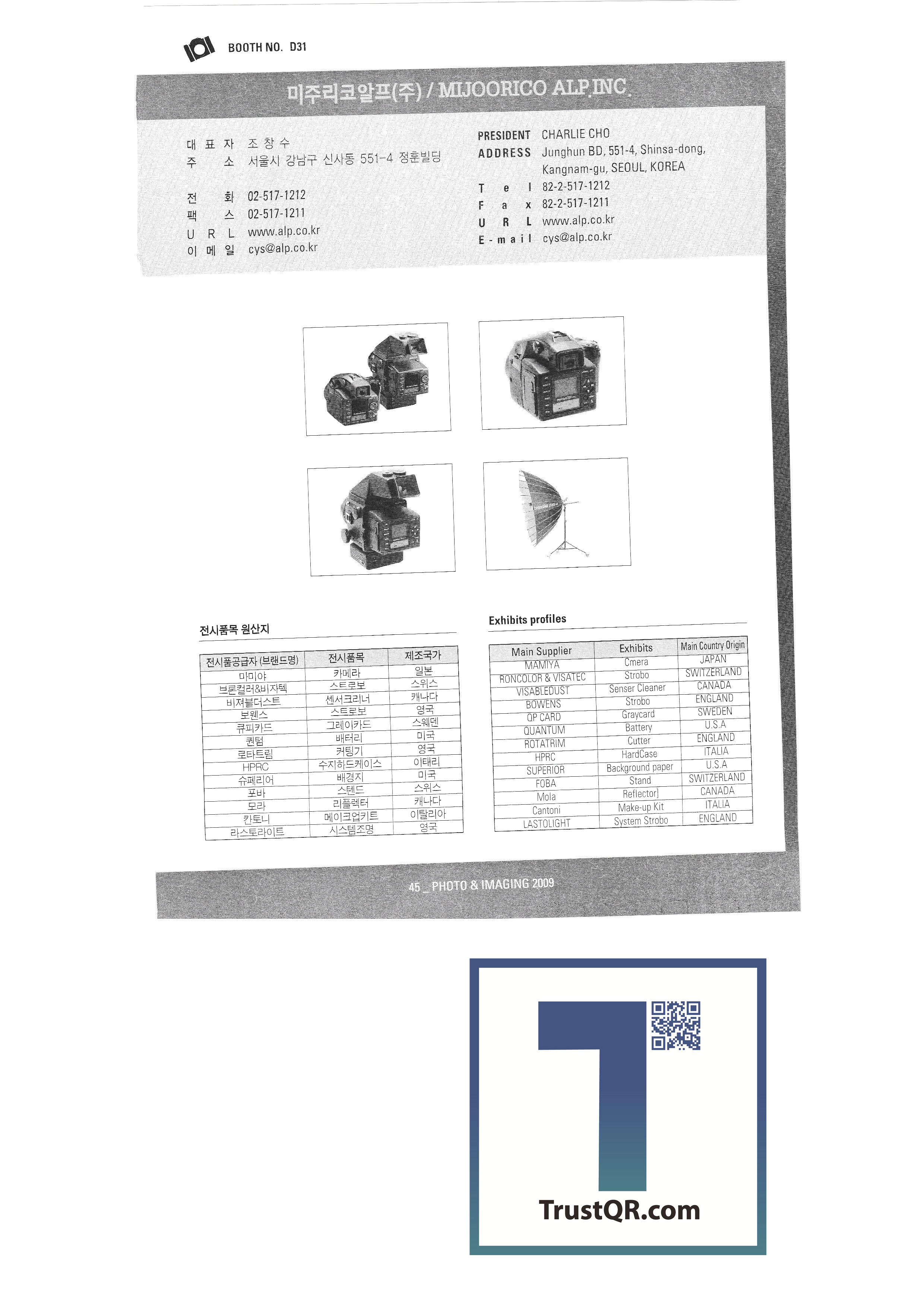 Modern Pia Media bridge Missouri Koalp Co., Ltd. Bonzen Corporation Buwon Digital Photo love Samyang Tech SanDisk Korea Shop Seowon Industrial Tech Century P&C Sonro Album Sony Korea Songhwa System Technology Co., Ltd. Smart Square Co., Ltd. Stopbook Studio Club Inc. Secure Line Sea frame CBL Co., Ltd. C&P System Co., Ltd. CG Korea Beautiful photo Art Deco FNC Kolon Yeol Media Youngsu Industry Youngil Information Co., Ltd. Six or seven Art book Aurora Light Bank Olympus Korea Co., Ltd. Background Monthly photo WellFirst Co., Ltd. |