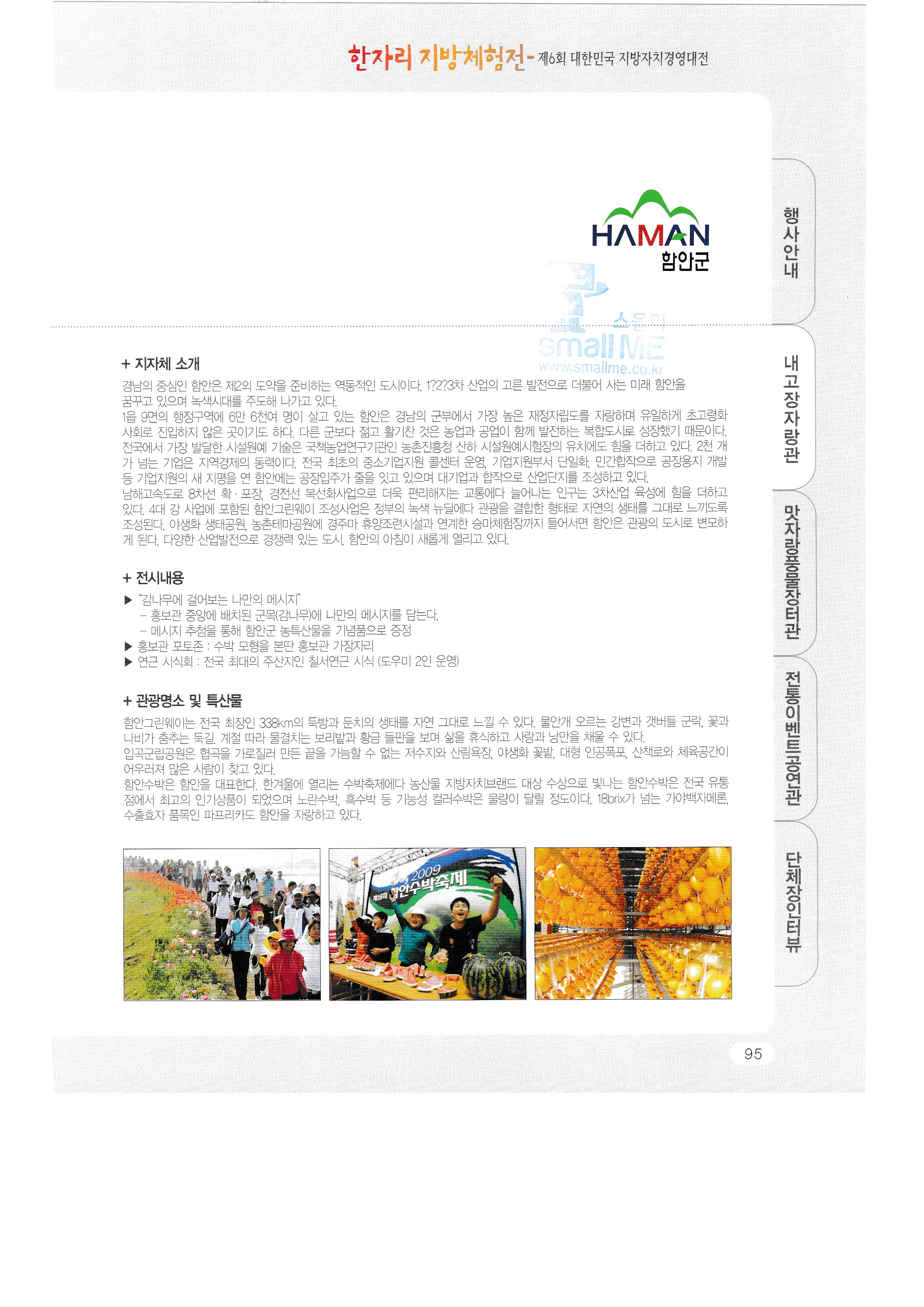 | 한자리 지방 체험전, 2009, - 4 : 제6회 대한민국 지방자치경영대전, (0) | 2020.08.10 |