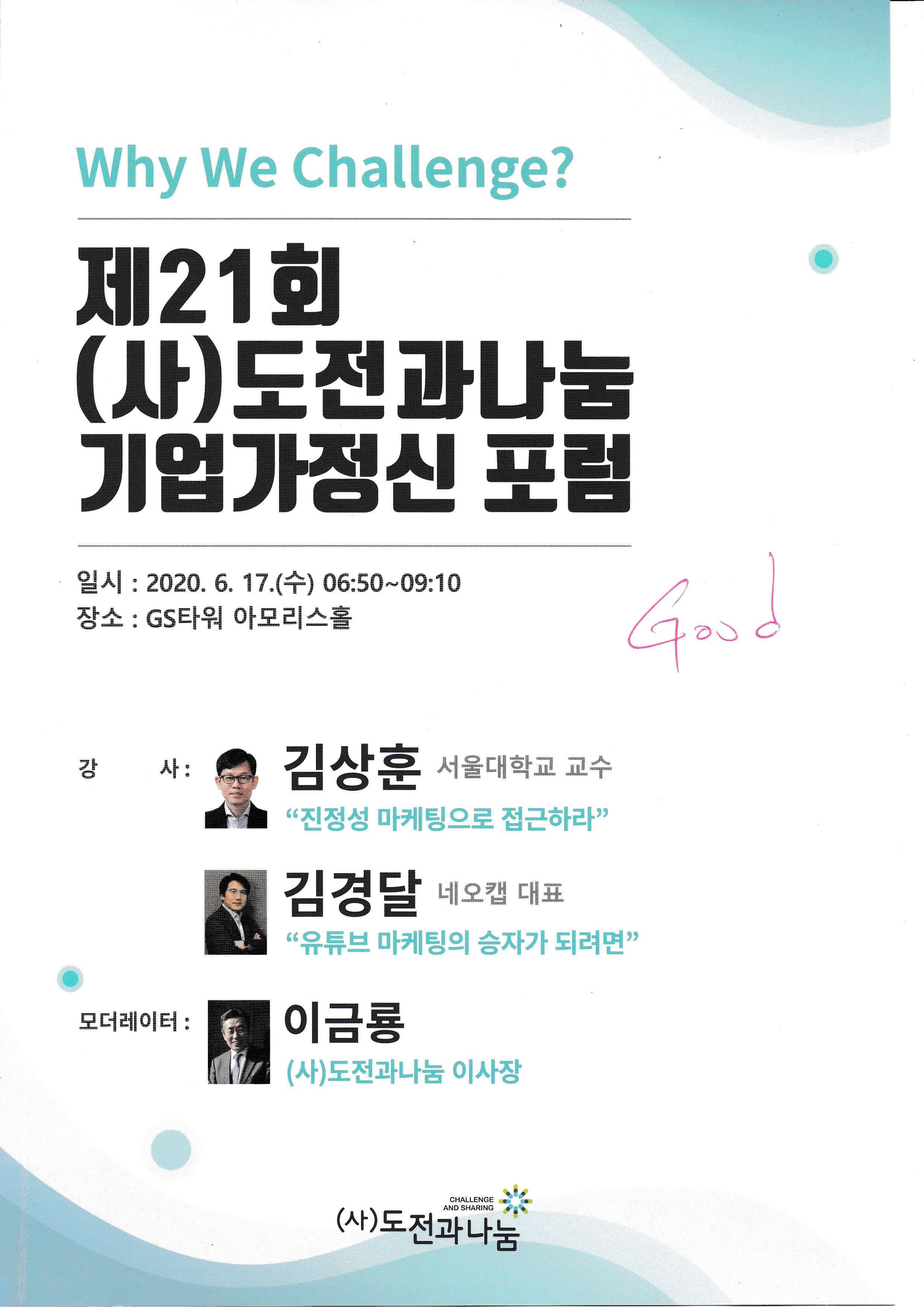 | 제18회 도전과 나눔 기업가정신 포럼,-1 : 4차산업혁명과 대학의 역할, 김우승 한양대학교 총장, (0) | 2020.08.16 |