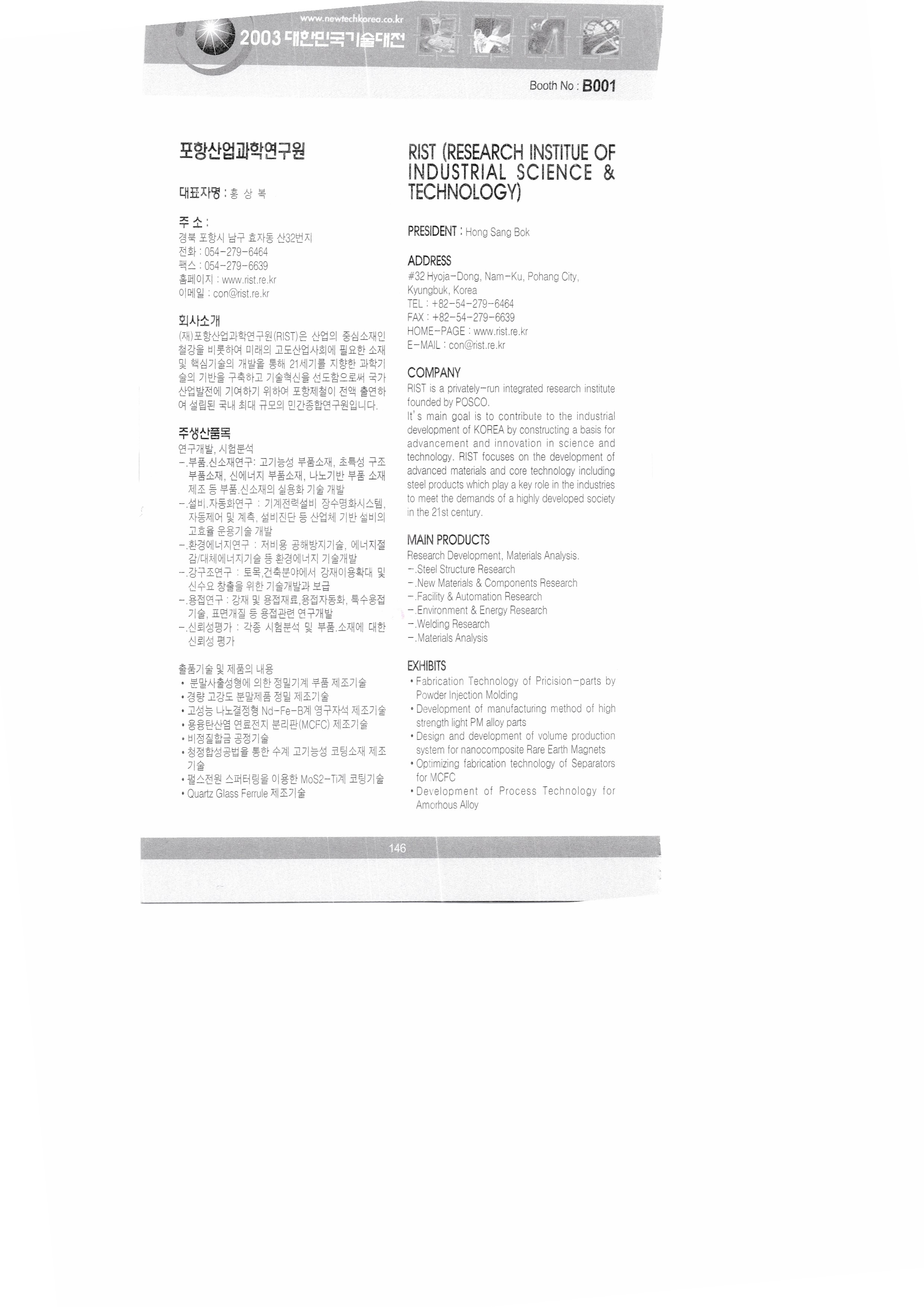 2003, 대한민국 기술대전 - 4 : 2003, Korea Technology Fair,
