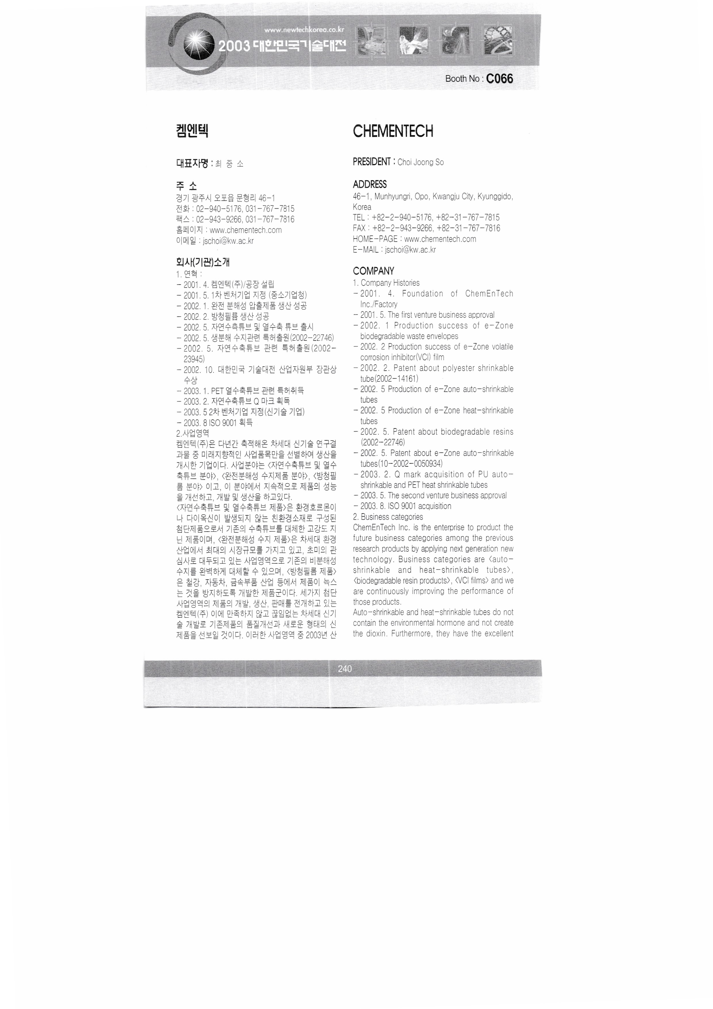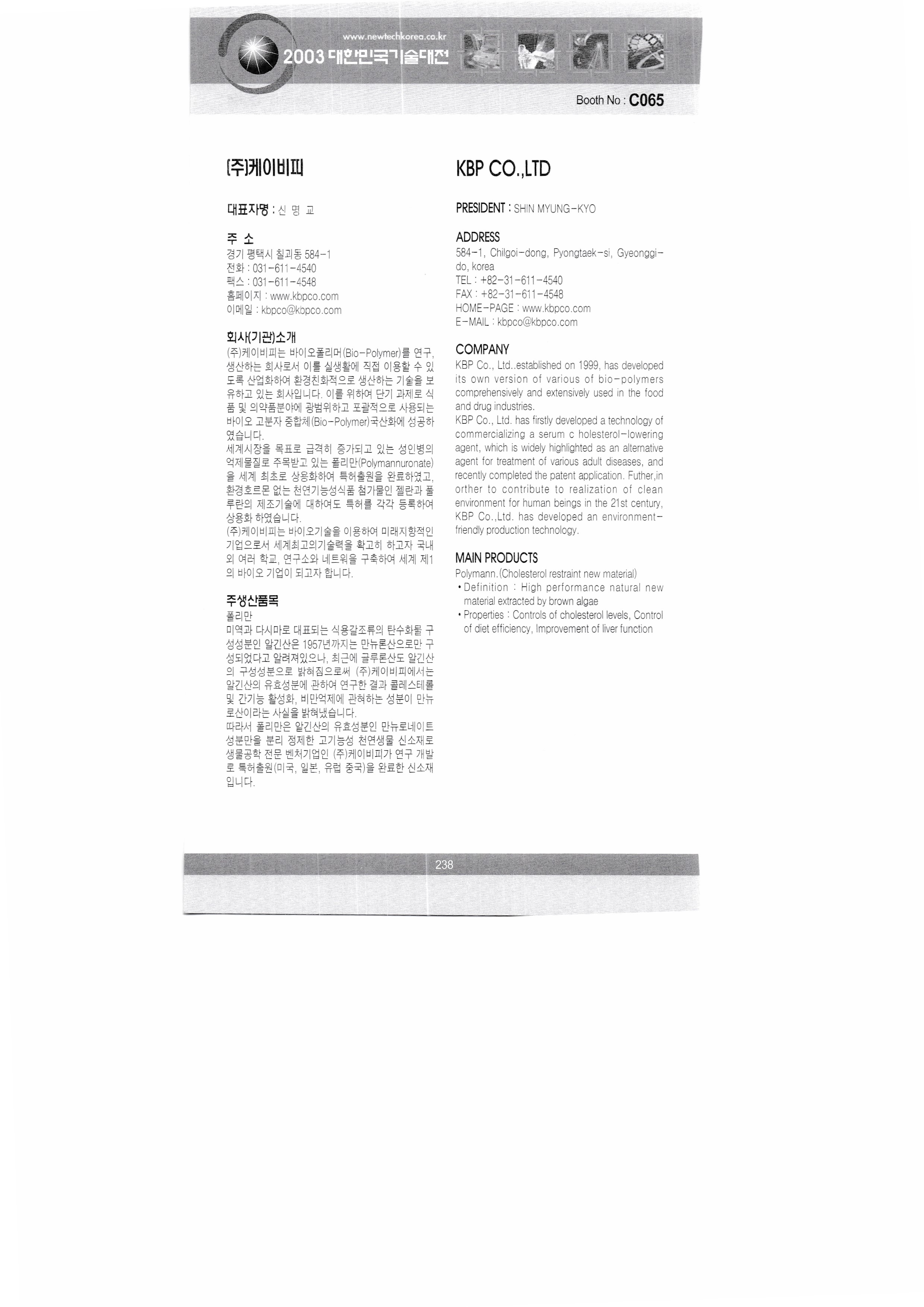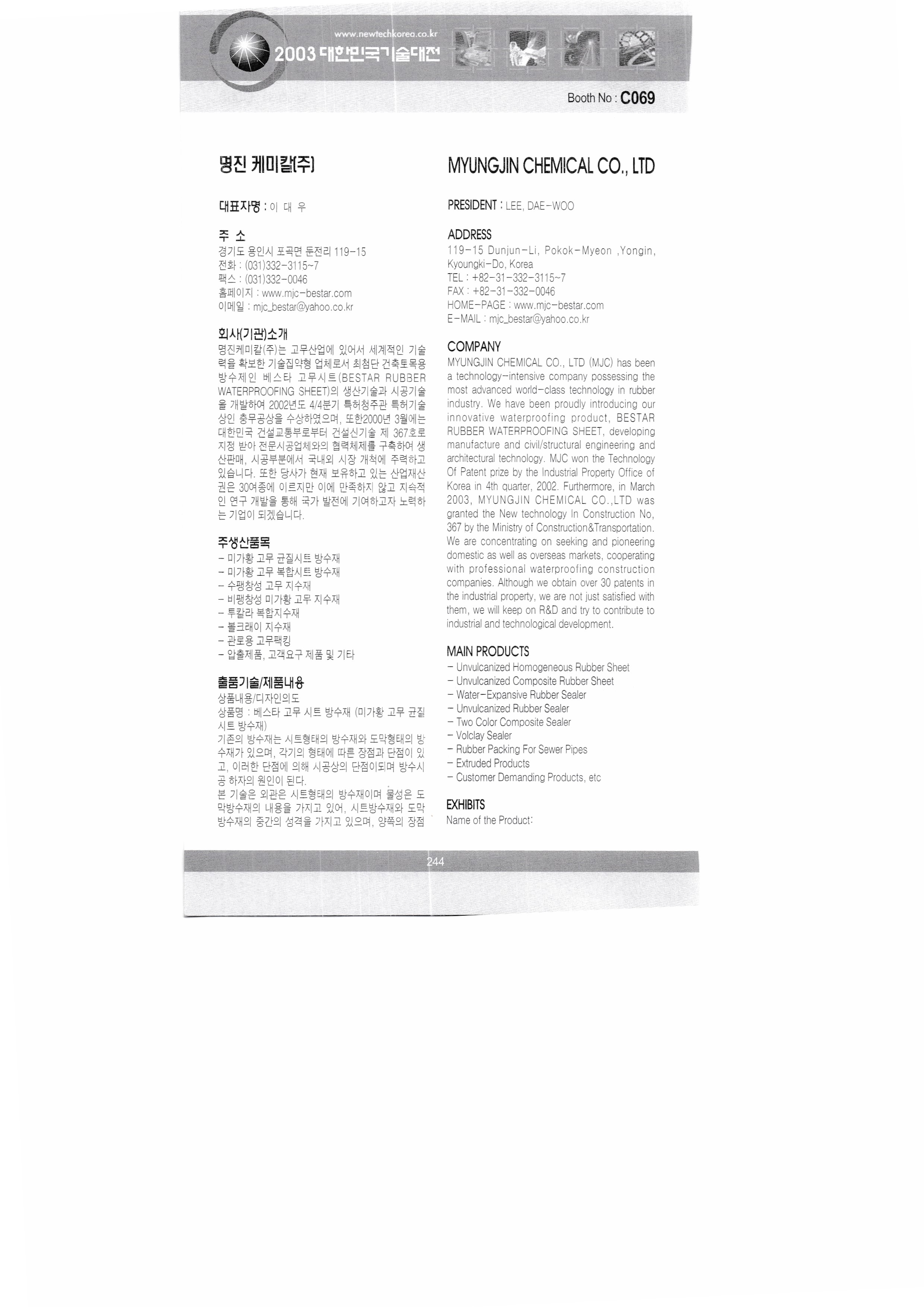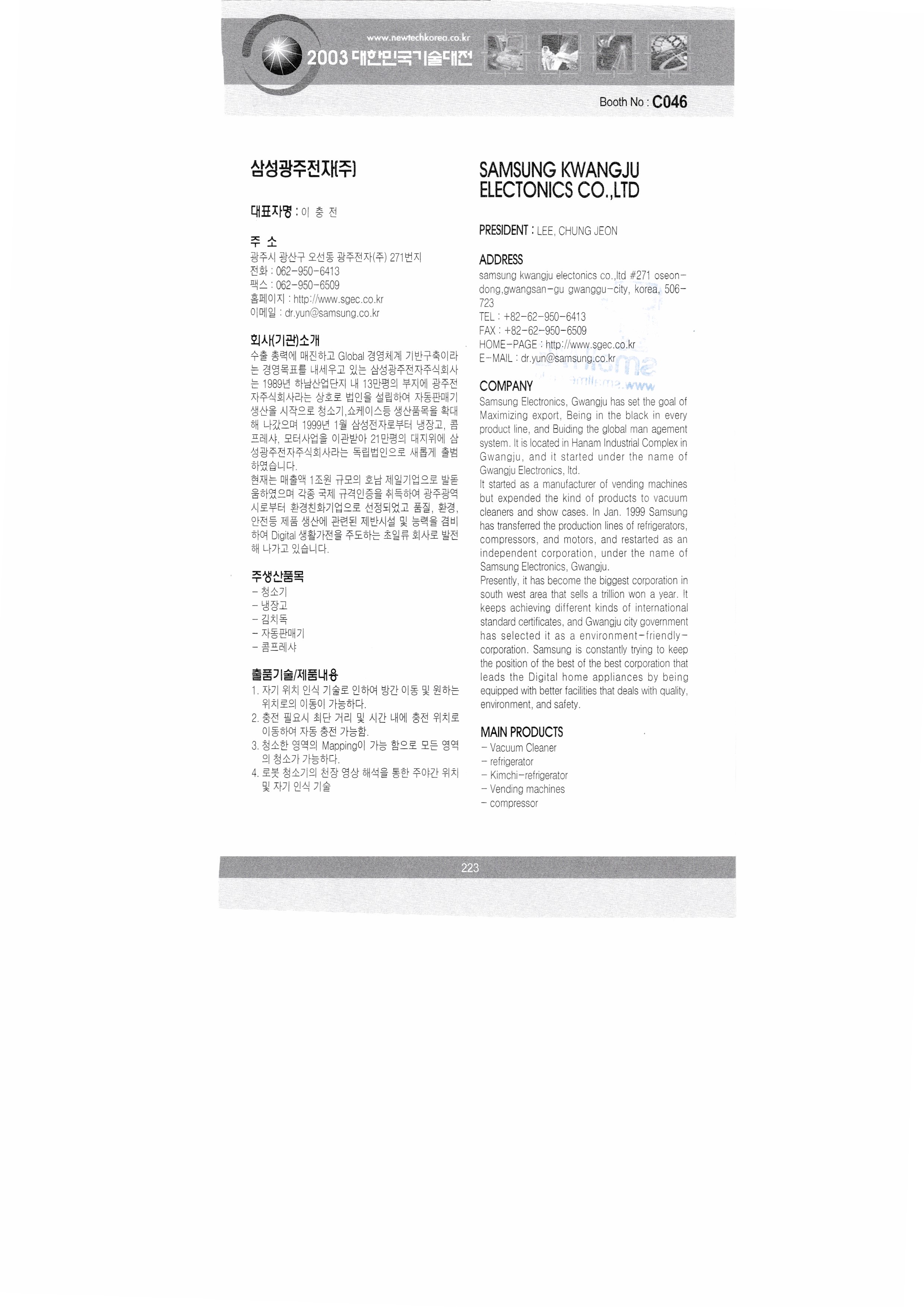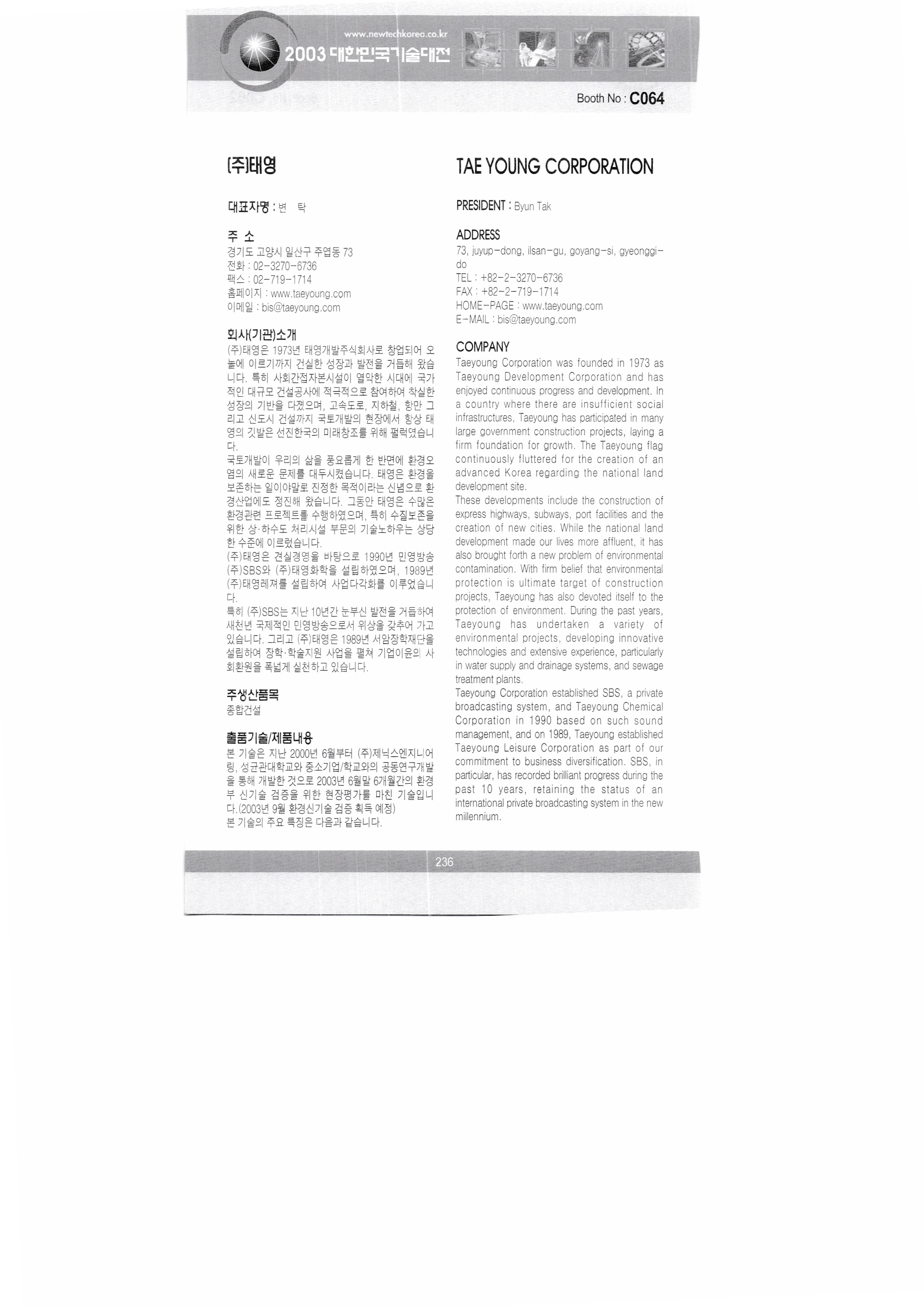 2003, 대한민국 기술대전 - 6 : 2003, Korea Technology Fair,