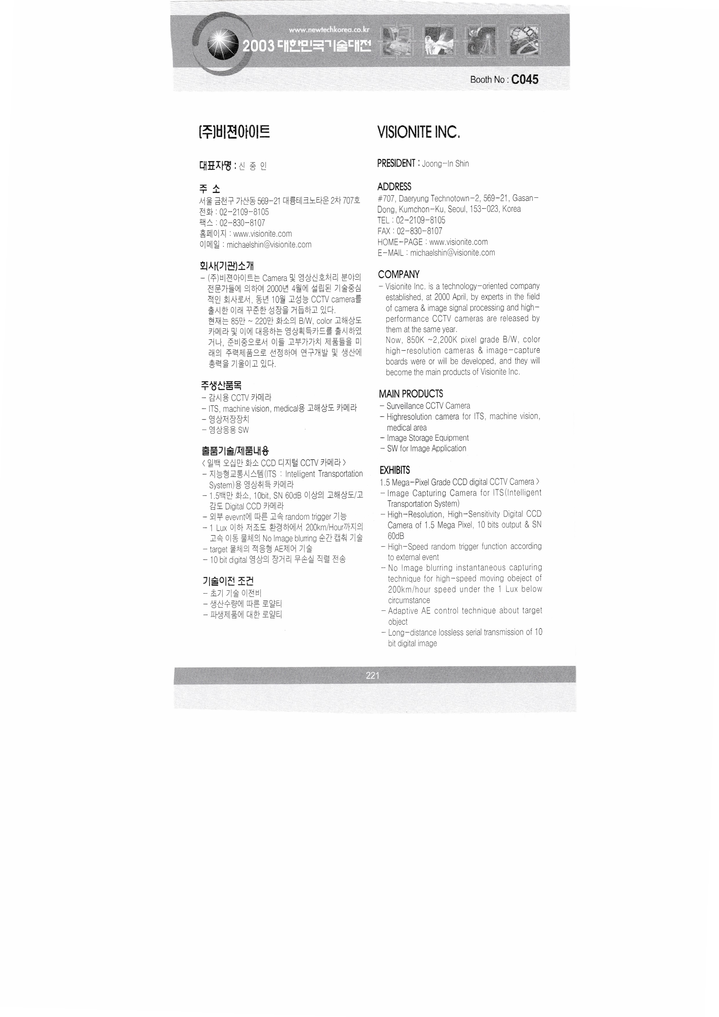 | 2003, 대한민국 기술대전 - 8 : 2003, Korea Technology Fair, (0) | 2020.08.13 |