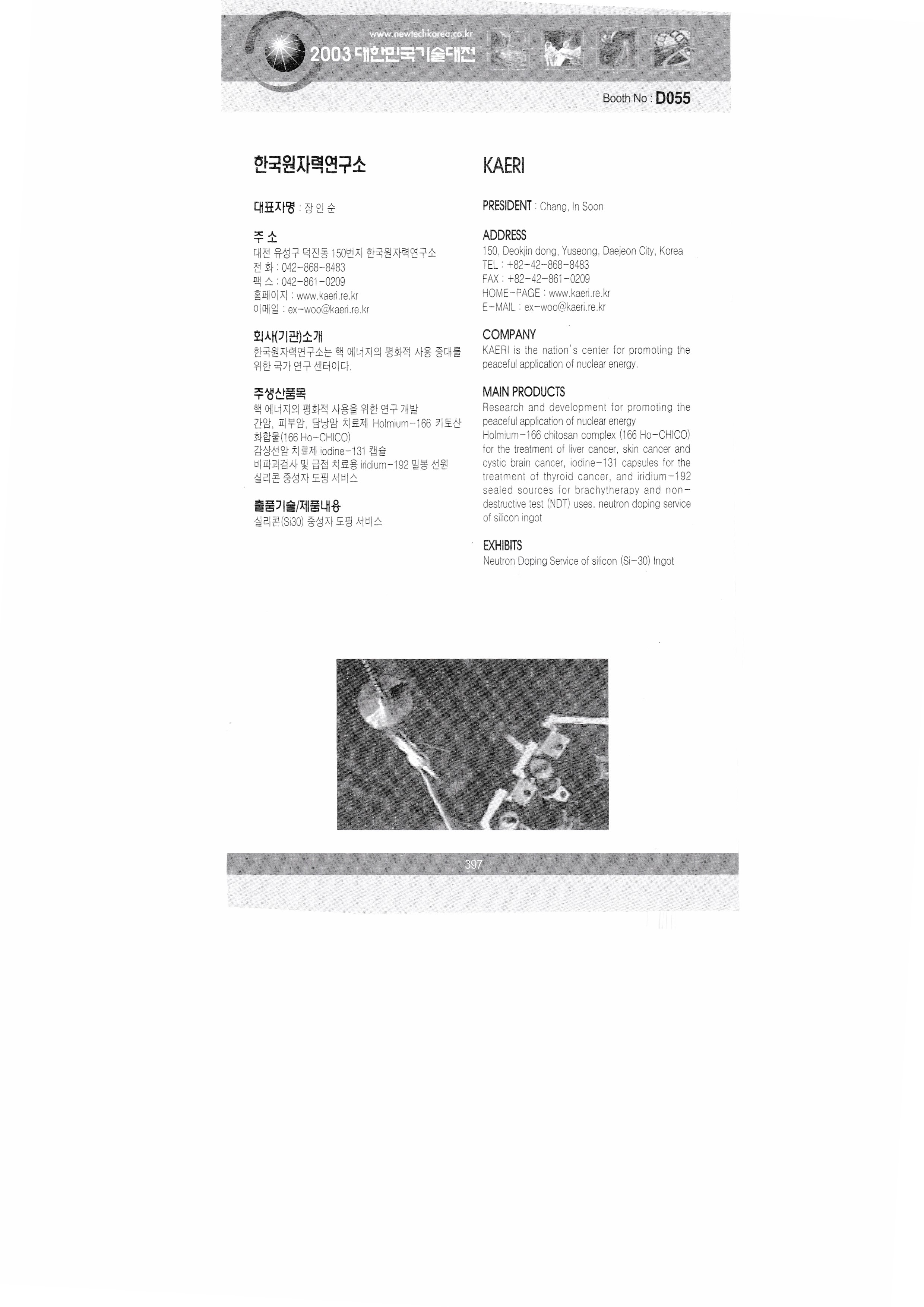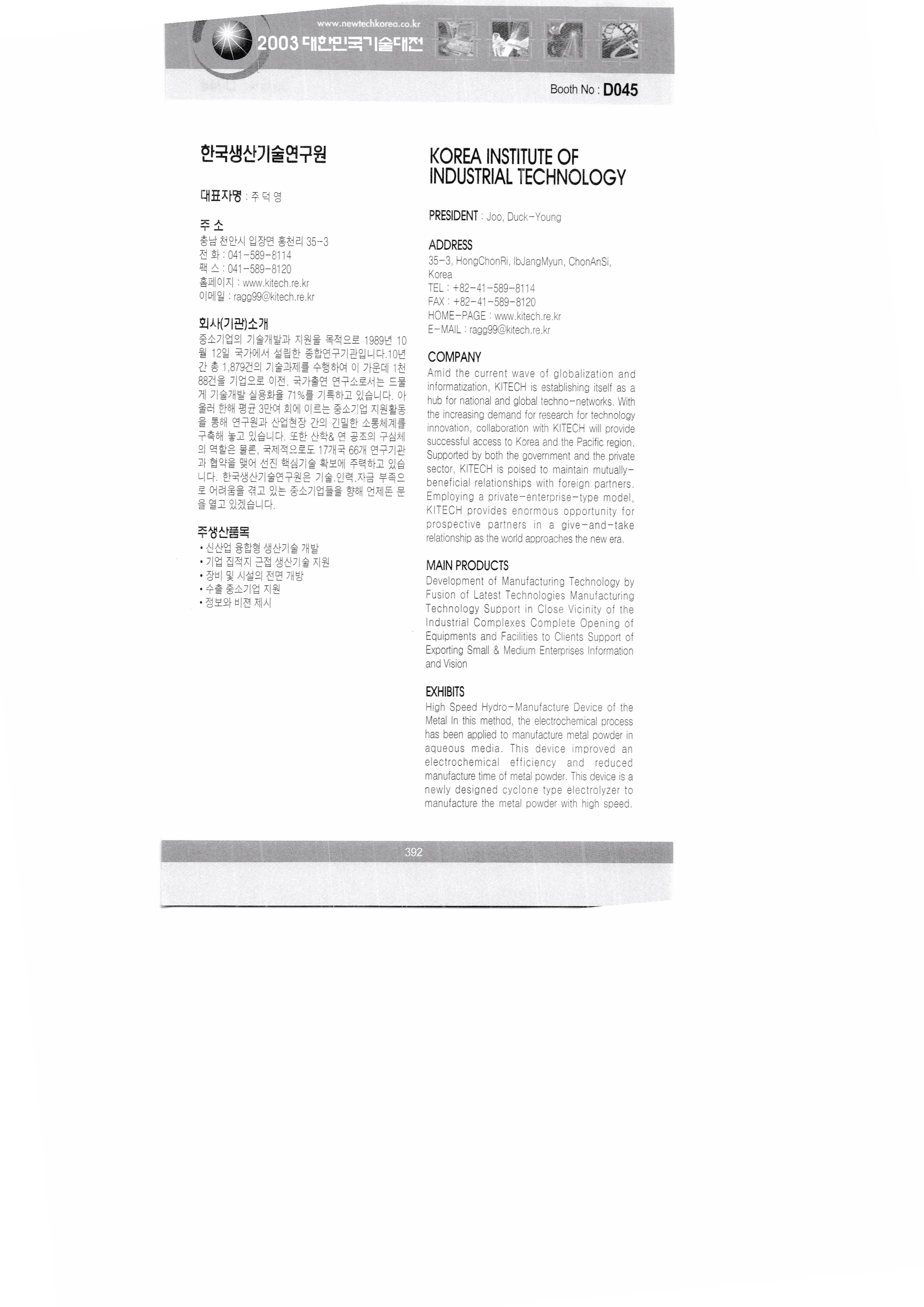 2003, 대한민국 기술대전 - 10 : 2003, Korea Technology Fair,