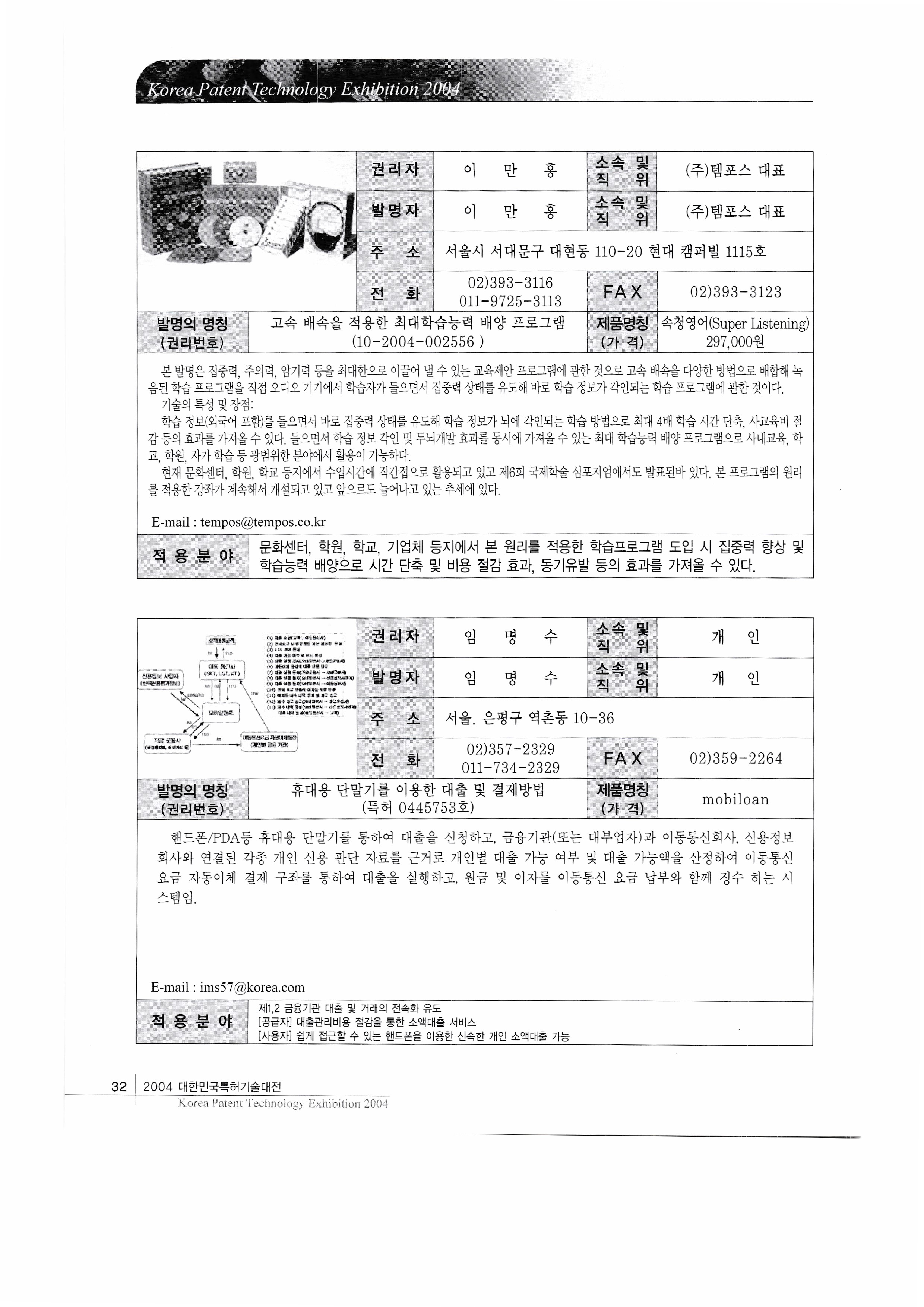 2004, 대한민국, 특허기술대전 - 1 : 2004, Korea, Patent Technology Exhibition,