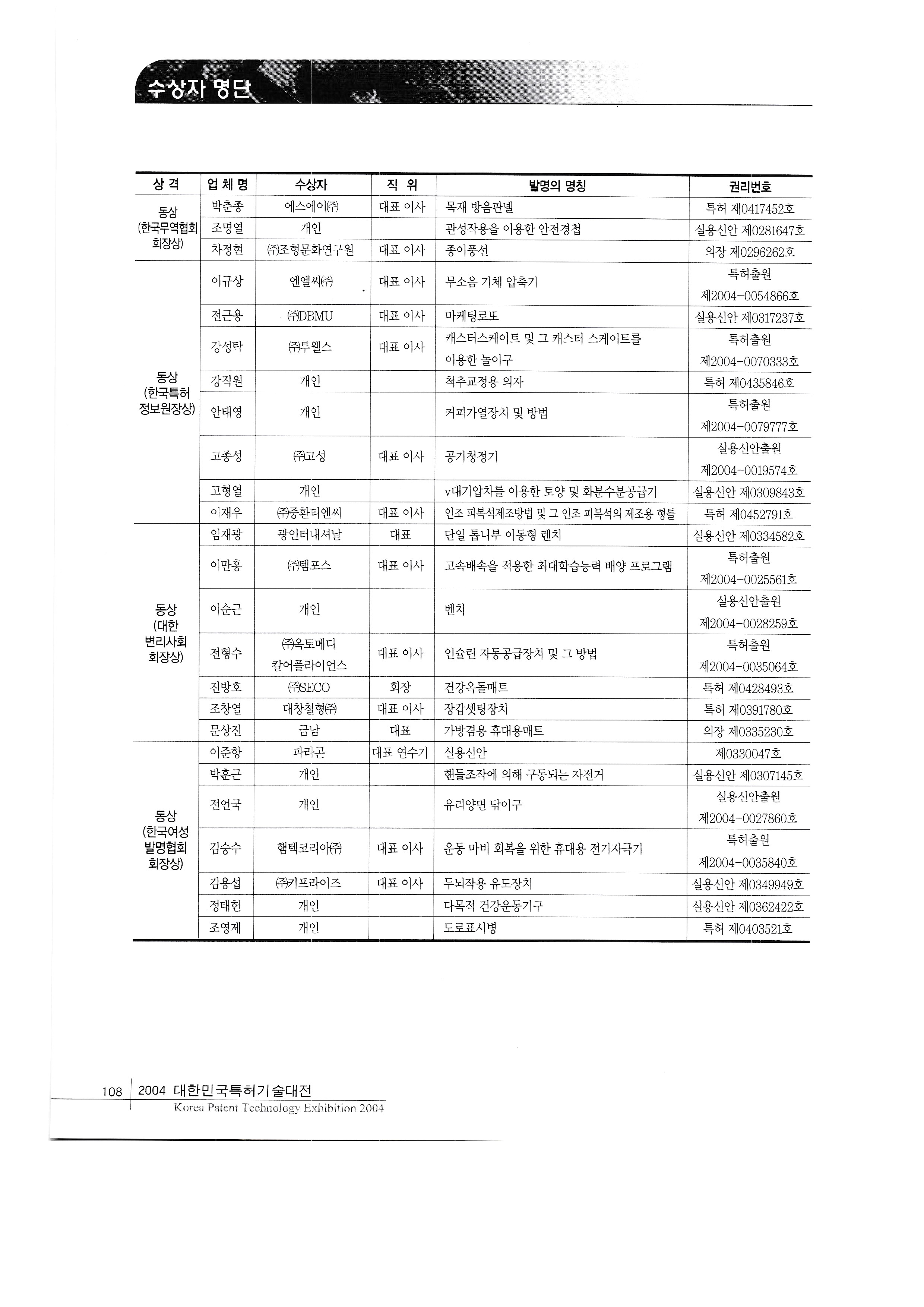 2004, 대한민국, 특허기술대전 - 3 : 2004, Korea, Patent Technology Exhibition,