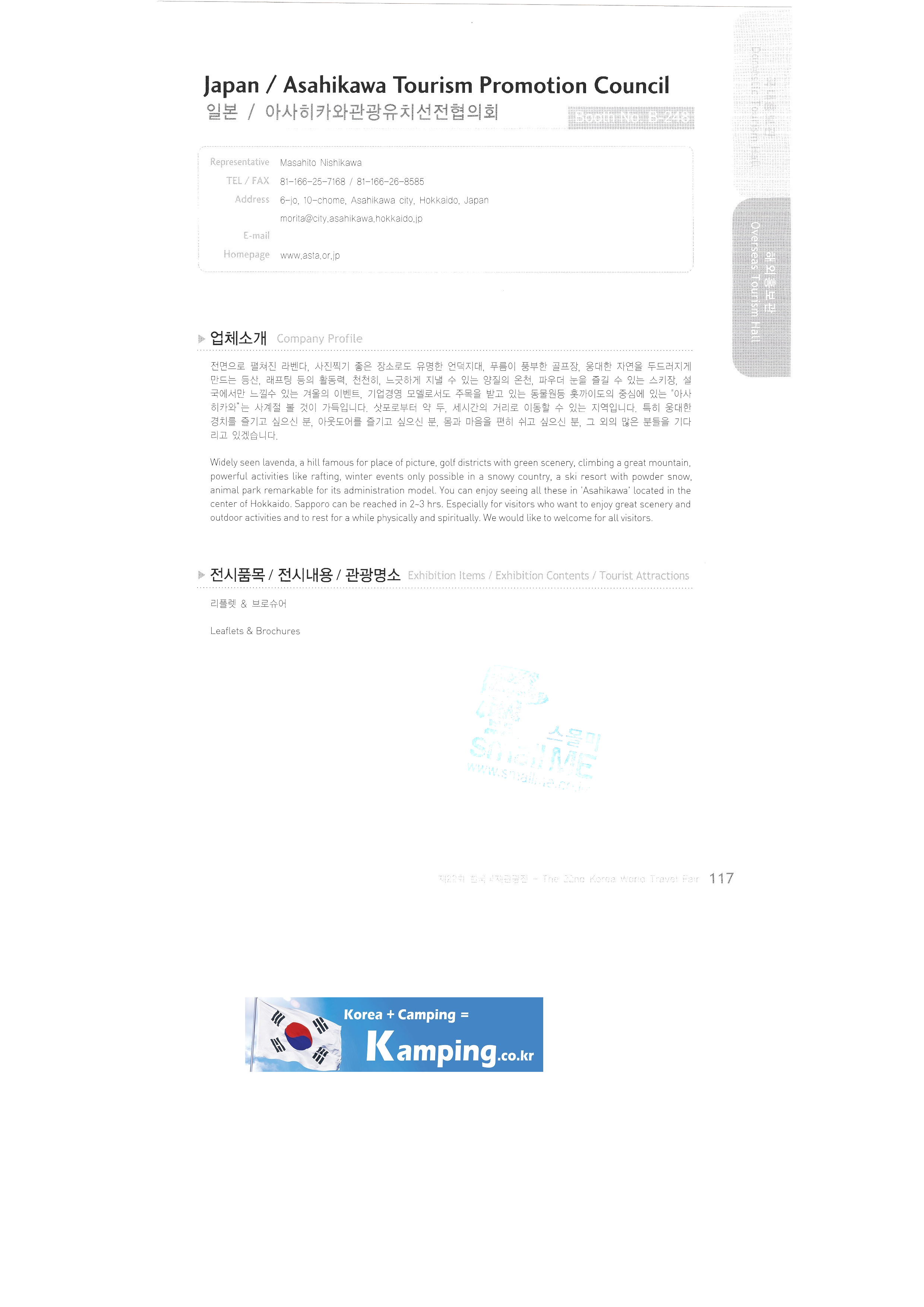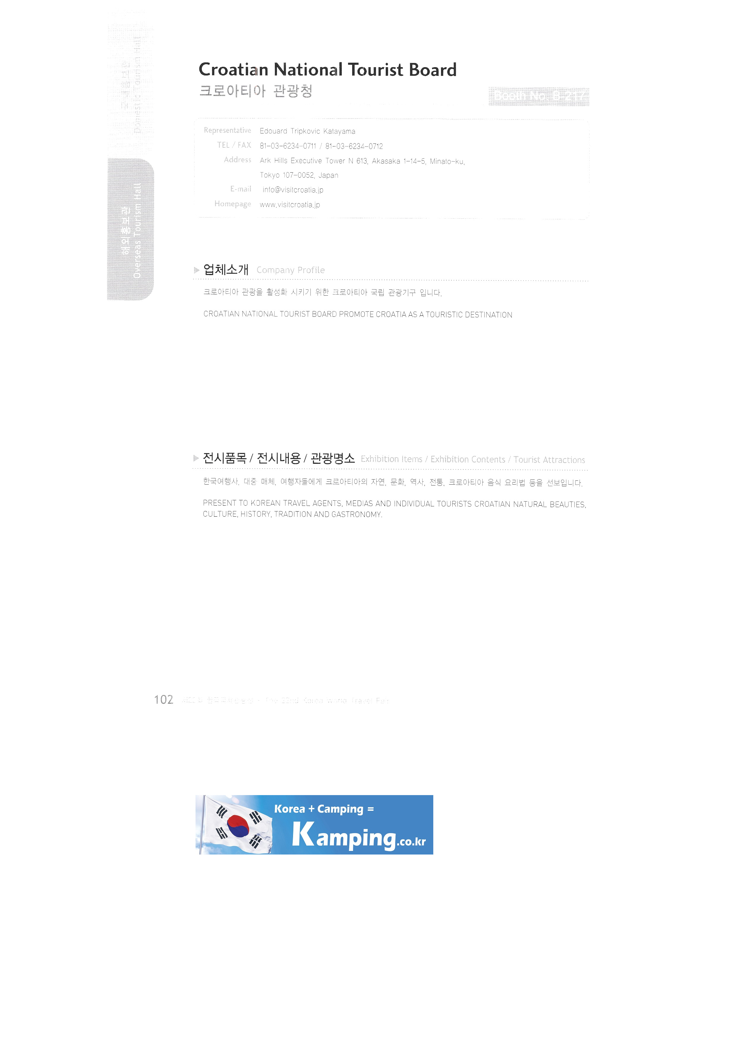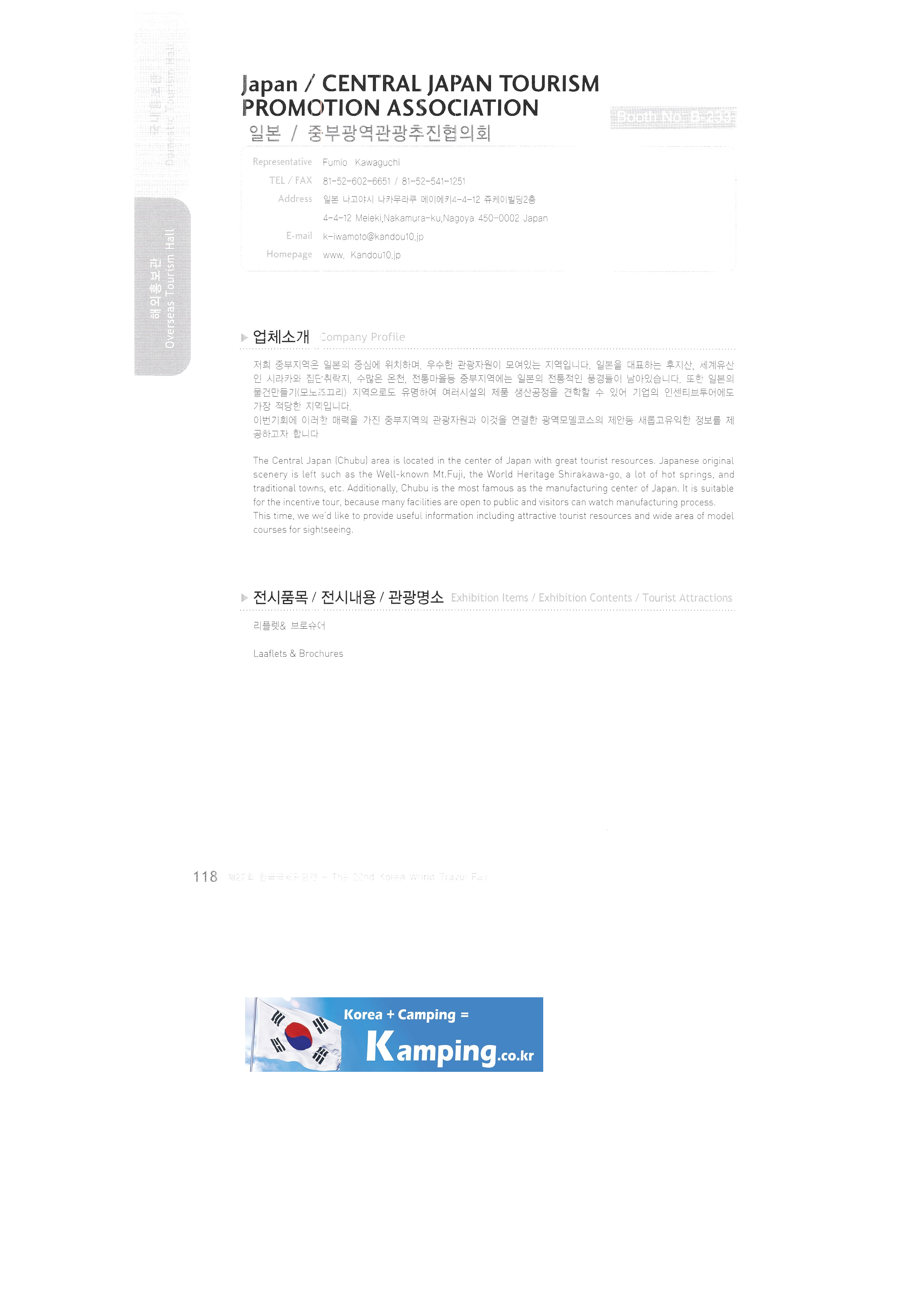 Transportation Tourism Newspaper Tour de Monde Monthly travel idea Travel Graphics Travel Press Travy Ulsan Metropolitan City East Asian National Association Tourism Promotion Association Atlantis Voyages Tunisia Austrian government tourism office Azadi International Tourism Association Brunei/Royal Brunei Airlines Brunei/Empire Hotel & Country Club Brunei/Brunei Tourism Authority Cambodia International Airport China's national free country Seoul area Committee of Tourism Industry/Ministry of Tourism and Sports of the Republic of kazakhstan Croatia Tourism Authority Czech Tourism Authority Egypt Tourism Board Embassy of the Republic of Hungary in Korea Embassy of Kenya Embassy of Slovakia German government tourism office Guam/DFS Guam-Pleasure Island Guam Government Tourism Office Hawaii Korean Tourist Association Hong Kong Tourism Promotion Agency India Government Tourism Office Garuda Orient Holiday Korea Indonesia Tourism Office Korea Office Israel Government Tourism Office Seoul Office Japan/Asahikawa Tourism Promotion Council Japan/Chubu Wide Area Tourism Promotion Council Japan/Chiba Prefecture Japan/East Japan Railway Company Japan/Hakodate International Tourism Convention Association/Hokkaido Tourism Promotion Organization Taonan Regional Division Japan/Hiroshima & Okayama Hokkaido Tourism Promotion Organization Japan/Ibaragi Airport Promotion, etc. |