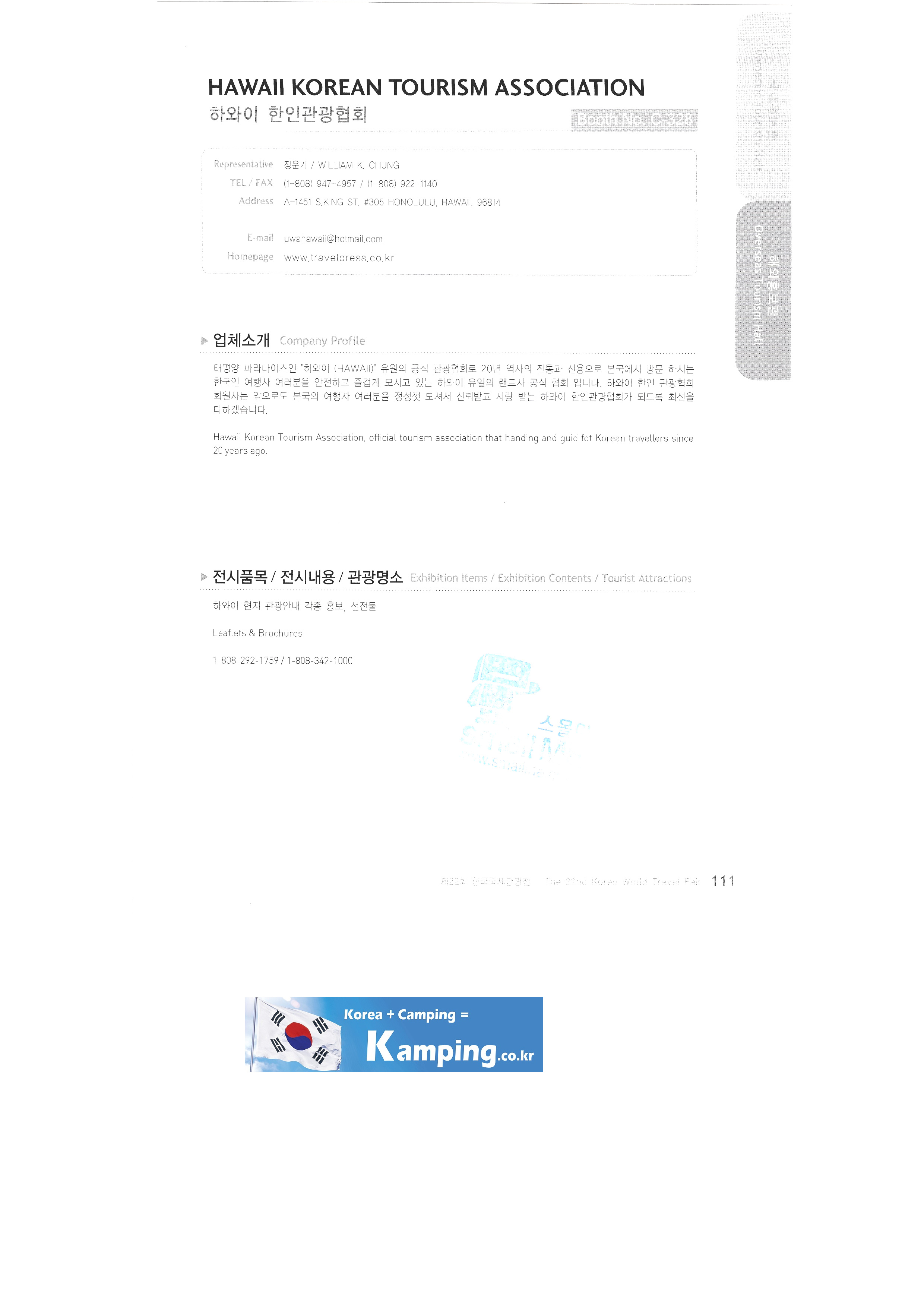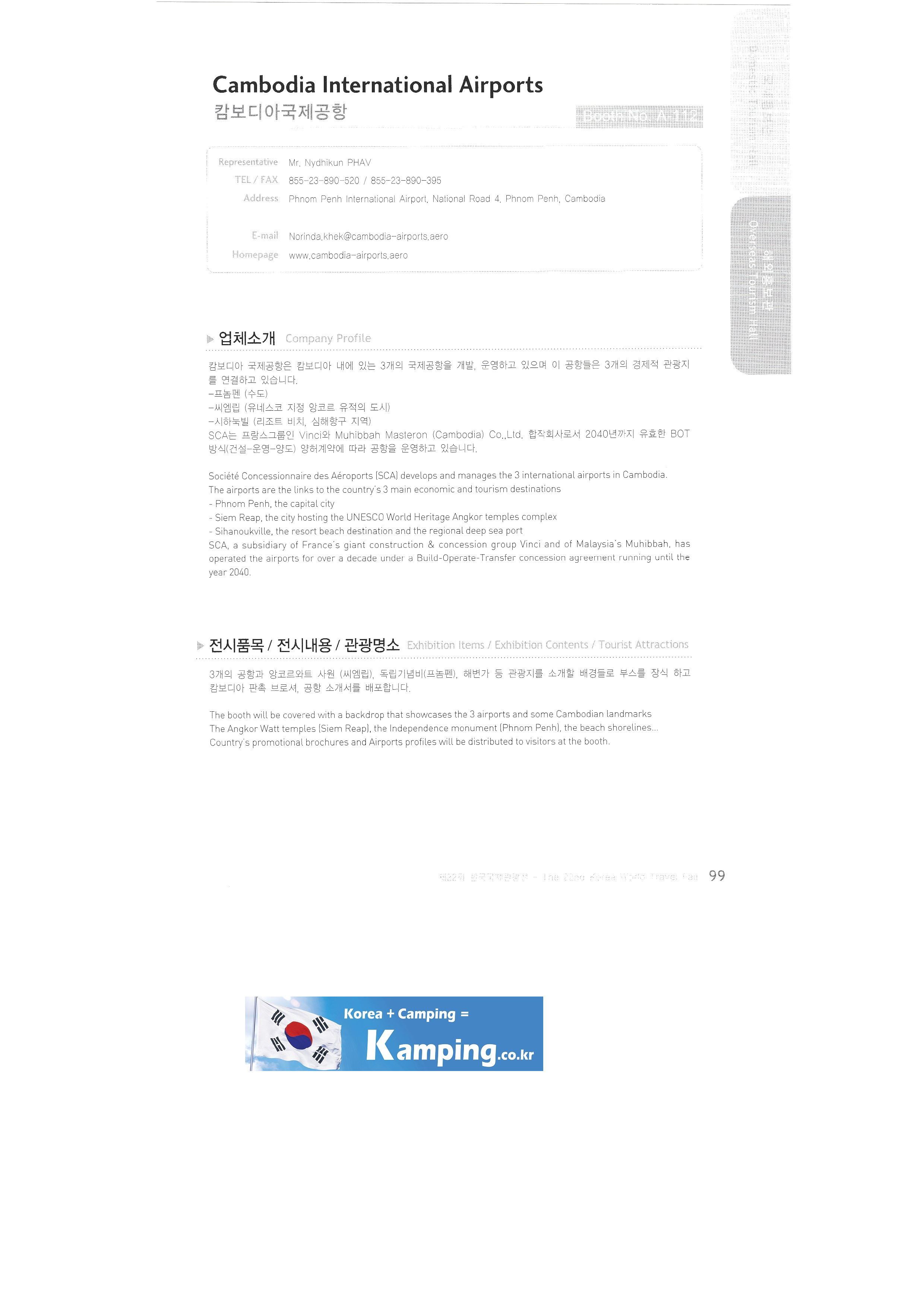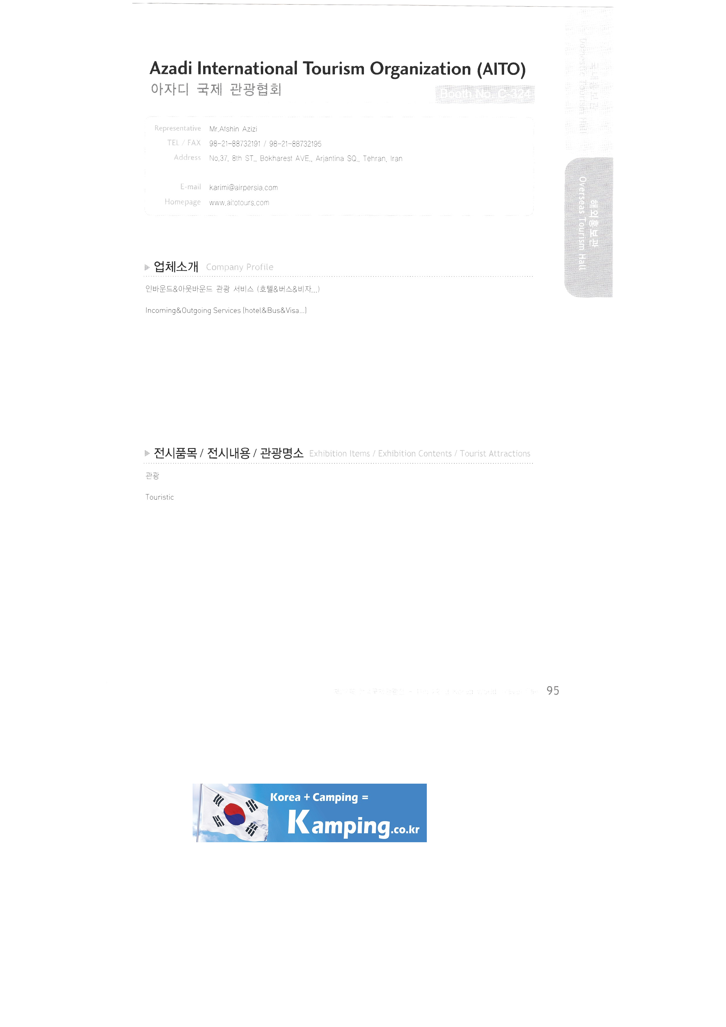 Transportation Tourism Newspaper Tour de Monde Monthly travel idea Travel Graphics Travel Press Travy Ulsan Metropolitan City East Asian National Association Tourism Promotion Association Atlantis Voyages Tunisia Austrian government tourism office Azadi International Tourism Association Brunei/Royal Brunei Airlines Brunei/Empire Hotel & Country Club Brunei/Brunei Tourism Authority Cambodia International Airport China's national free country Seoul area Committee of Tourism Industry/Ministry of Tourism and Sports of the Republic of kazakhstan Croatia Tourism Authority Czech Tourism Authority Egypt Tourism Board Embassy of the Republic of Hungary in Korea Embassy of Kenya Embassy of Slovakia German government tourism office Guam/DFS Guam-Pleasure Island Guam Government Tourism Office Hawaii Korean Tourist Association Hong Kong Tourism Promotion Agency India Government Tourism Office Garuda Orient Holiday Korea Indonesia Tourism Office Korea Office Israel Government Tourism Office Seoul Office Japan/Asahikawa Tourism Promotion Council Japan/Chubu Wide Area Tourism Promotion Council Japan/Chiba Prefecture Japan/East Japan Railway Company Japan/Hakodate International Tourism Convention Association/Hokkaido Tourism Promotion Organization Taonan Regional Division Japan/Hiroshima & Okayama Hokkaido Tourism Promotion Organization Japan/Ibaragi Airport Promotion, etc. |