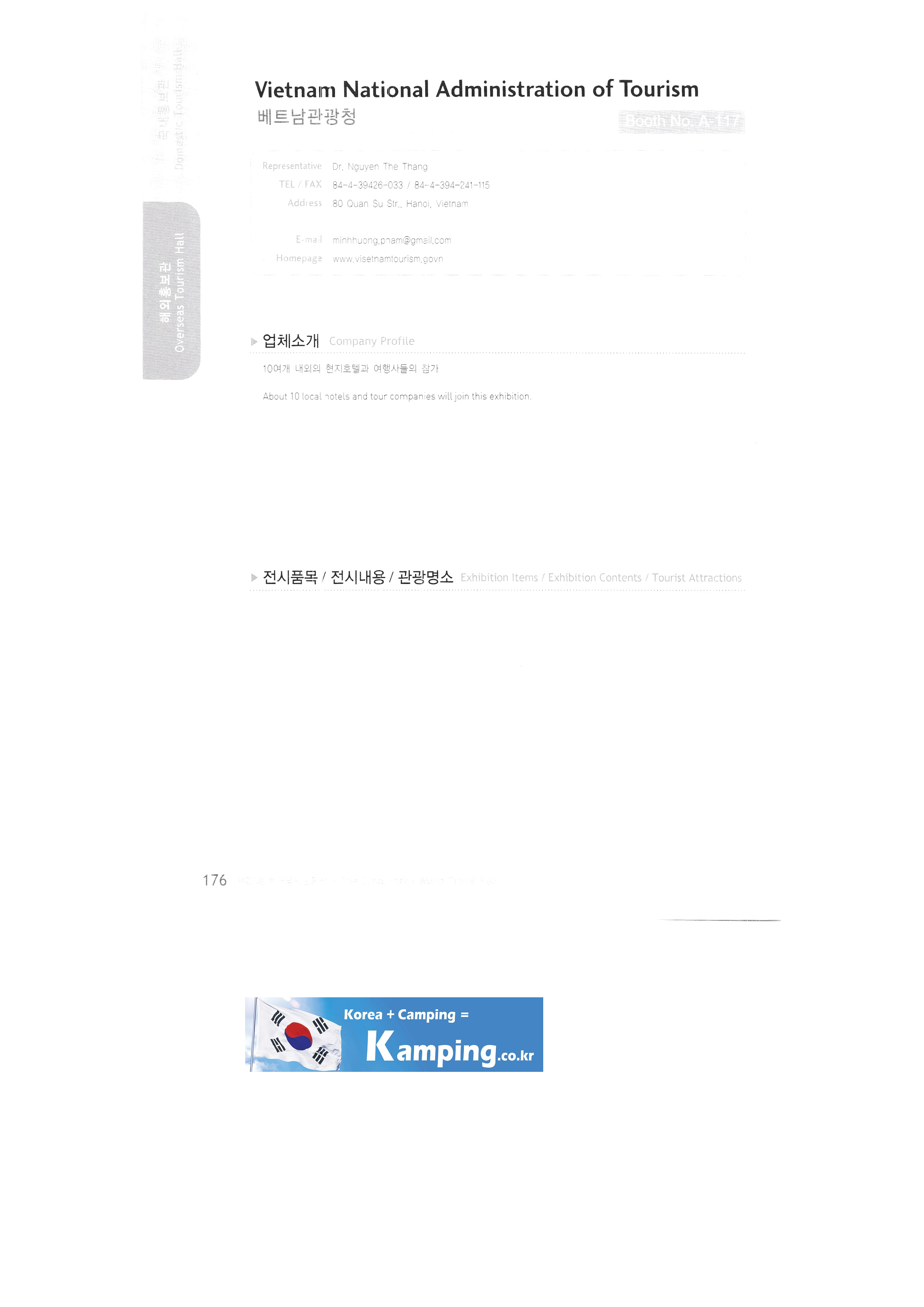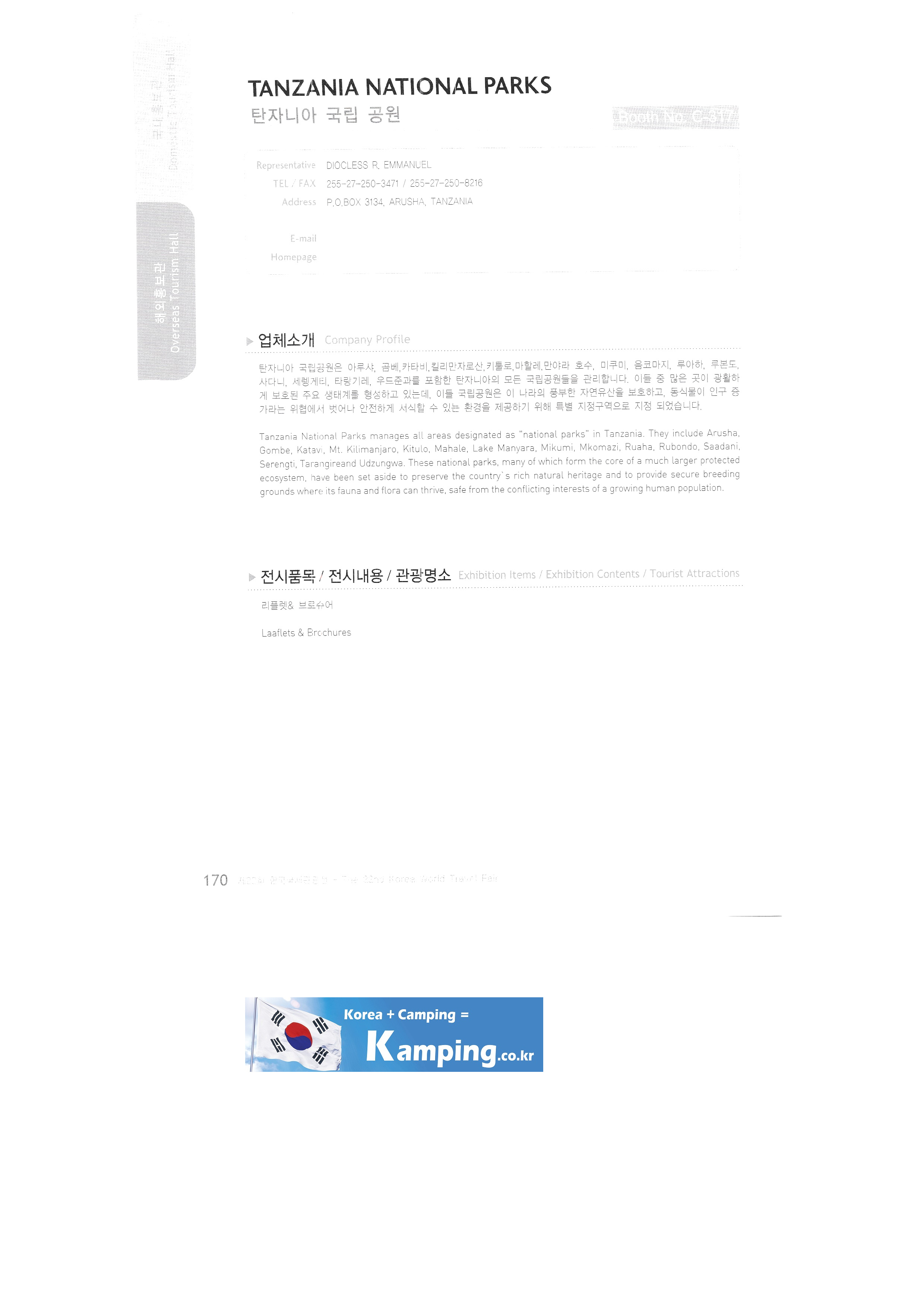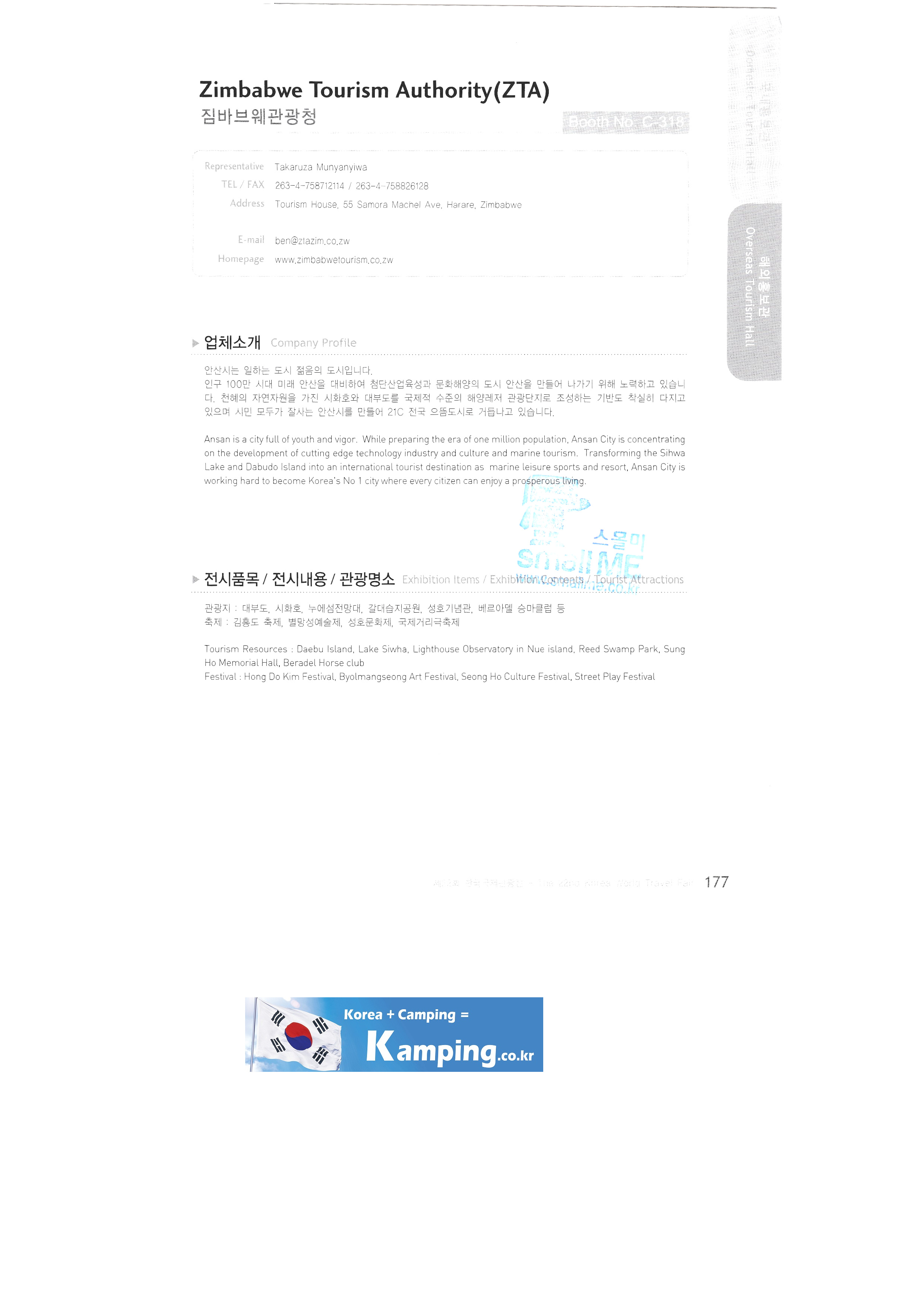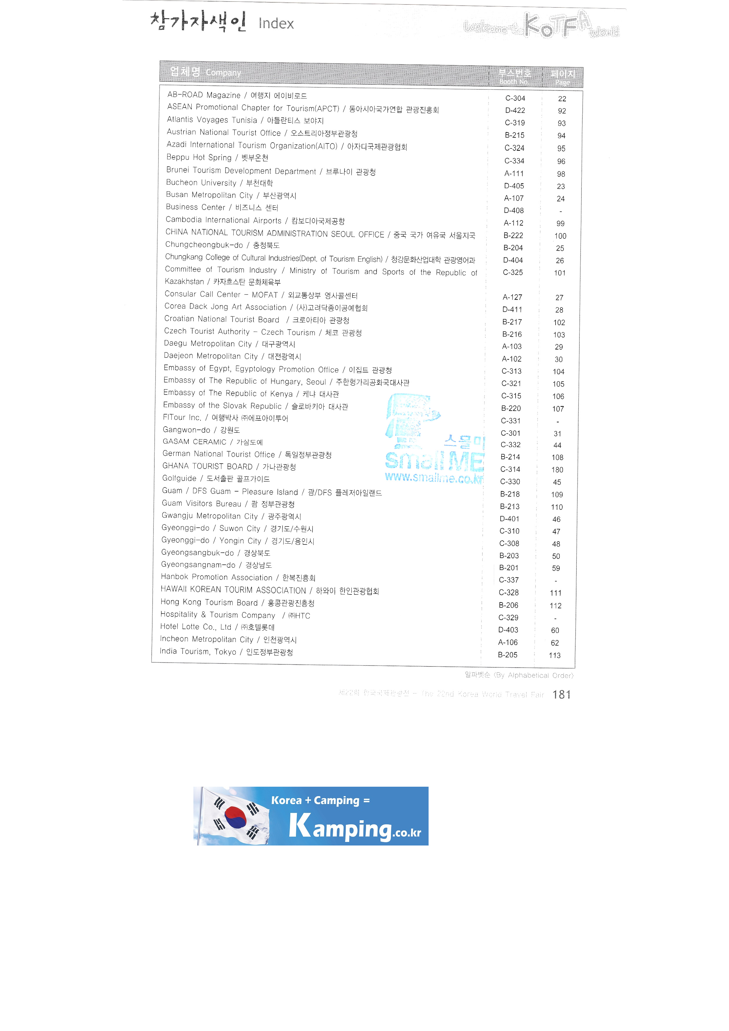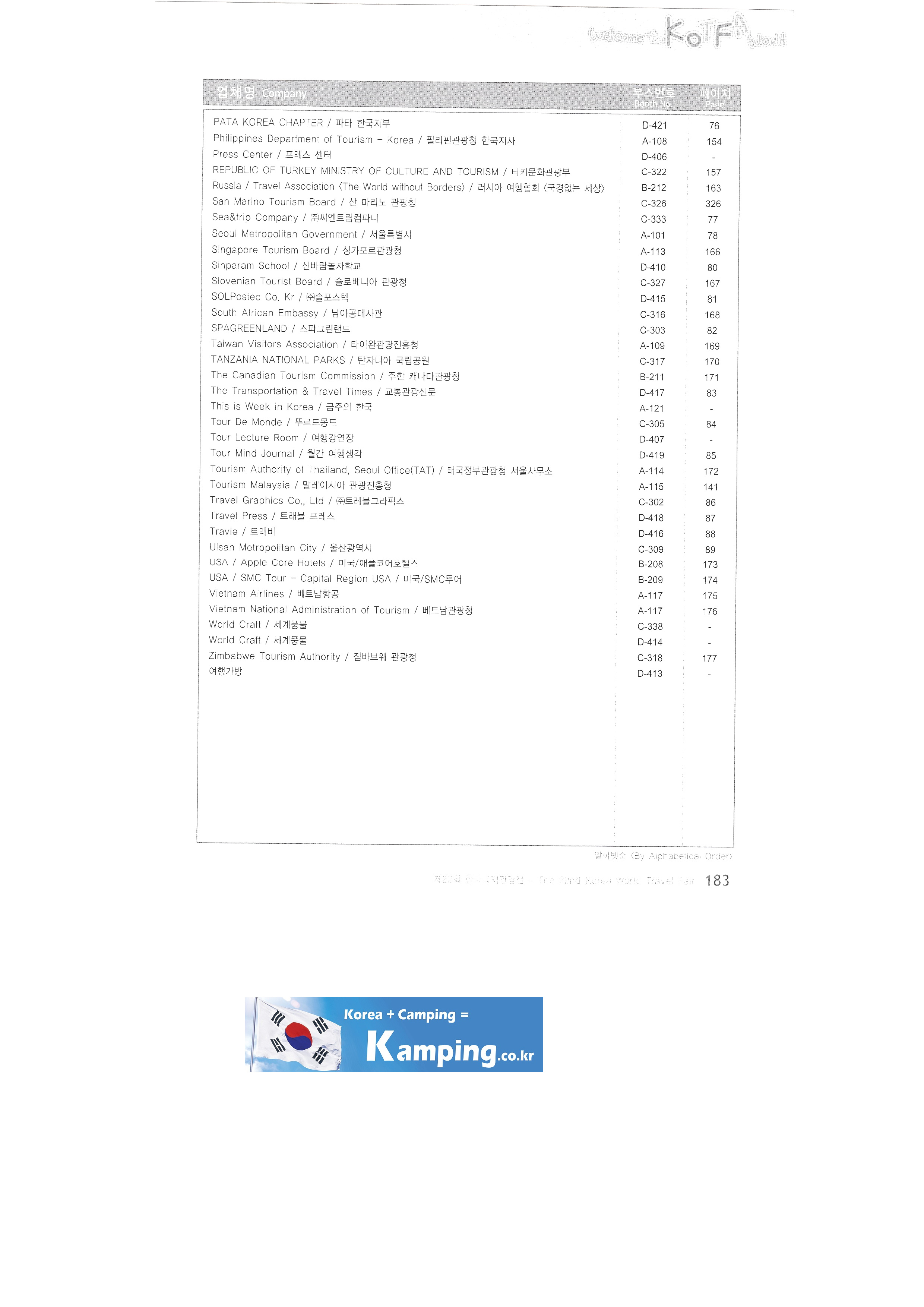 Tourism Slovenia Embassy of South Africa Taiwan Tourism Promotion Agency Tanzania National Park Tourism Canada in Korea Thailand Government Tourism Office Seoul Office USA/Apple Core Hotels USA/SMC Tour Vietnam Airlines Vietnam Tourism Board Tourism Zimbabwe Korea-Japan Cultural Exchange Association Slovenia / Compass D.D. Ghana Tourism Board |