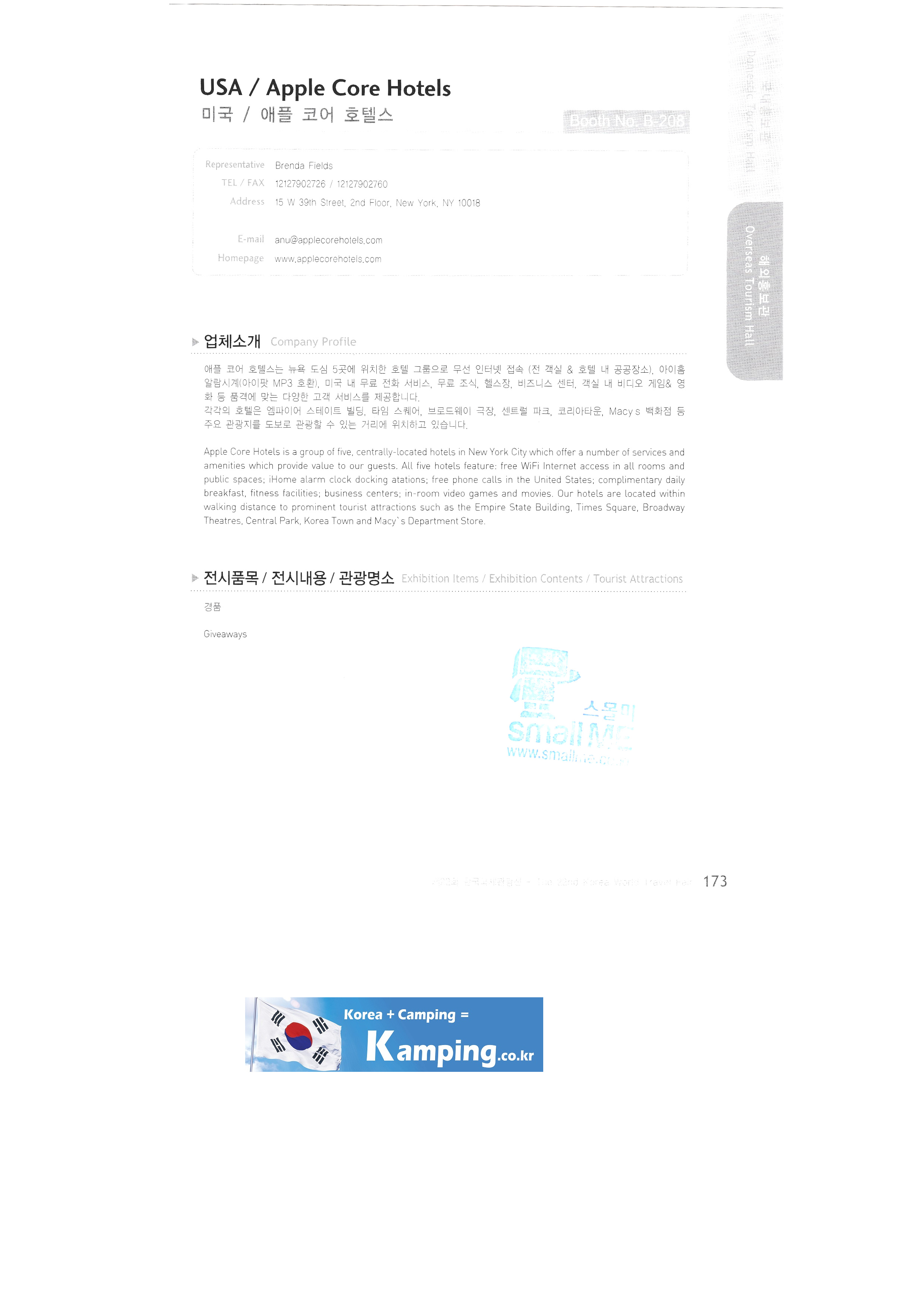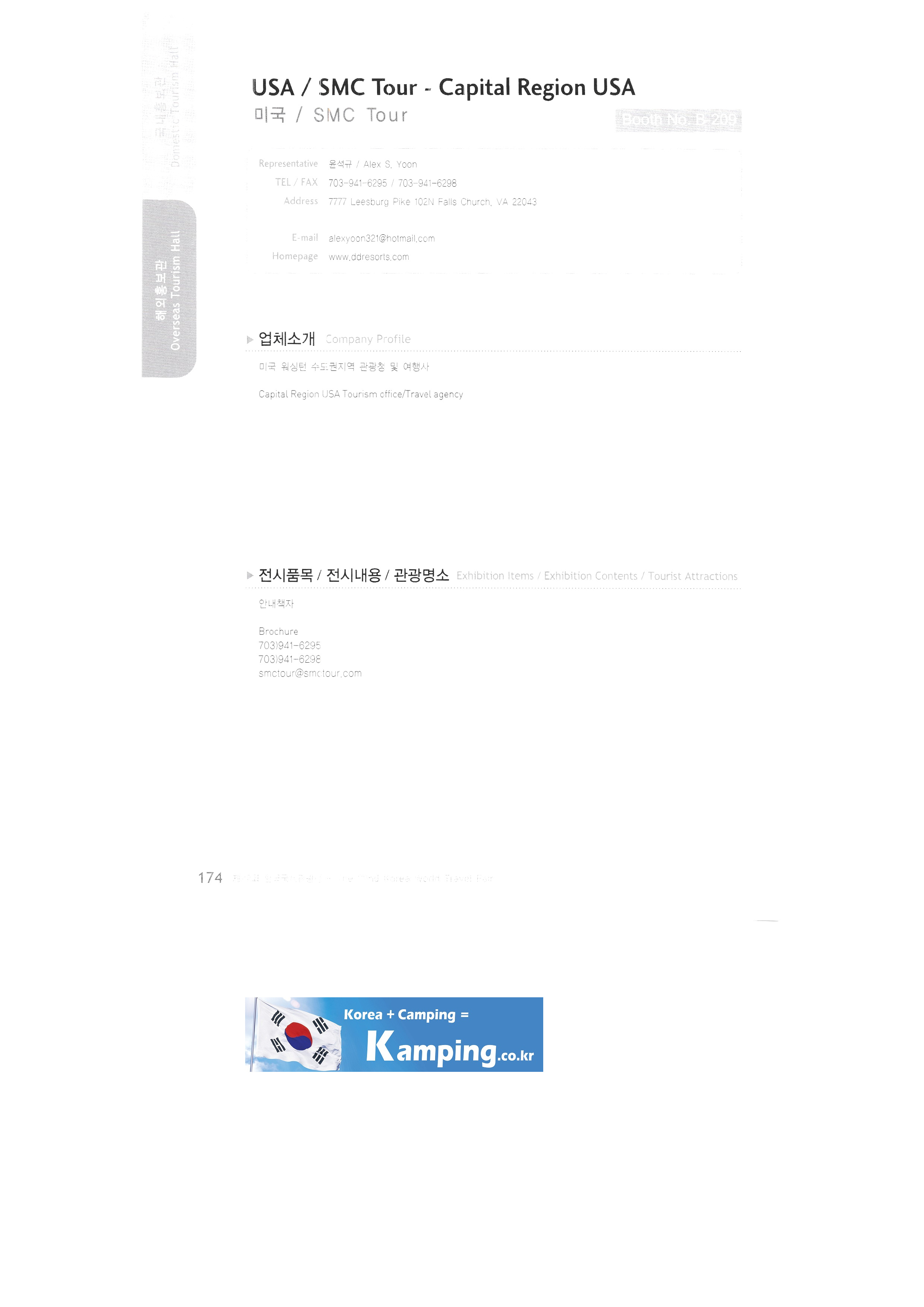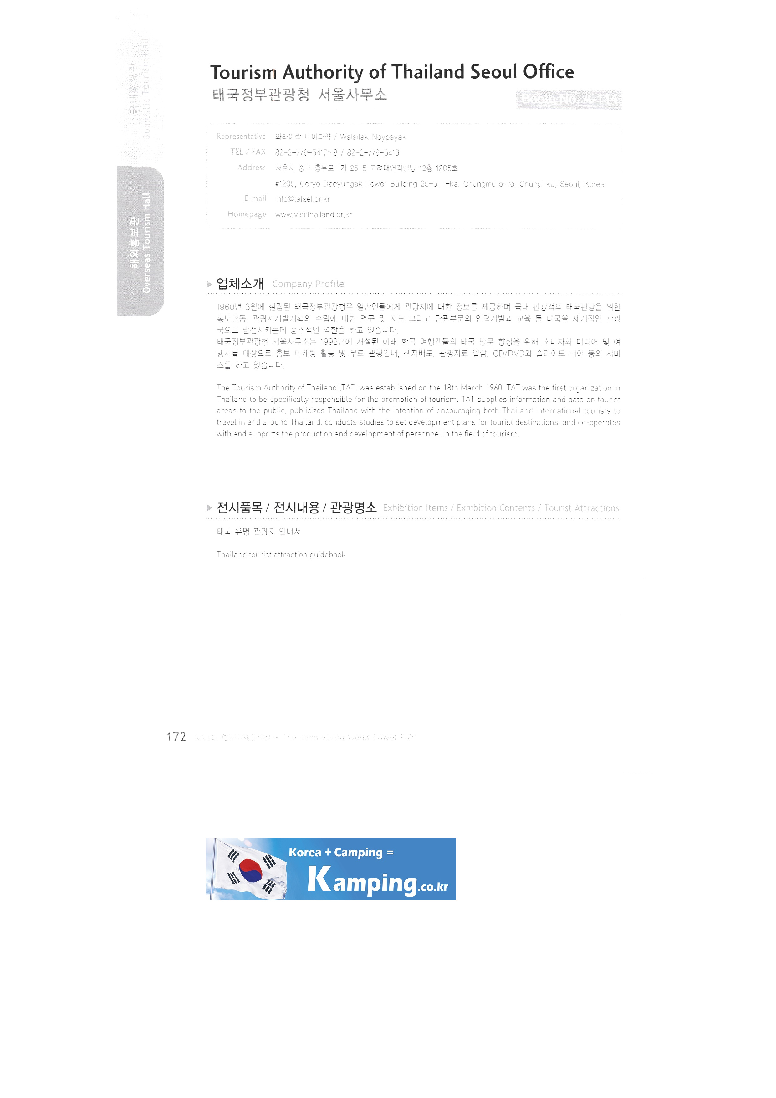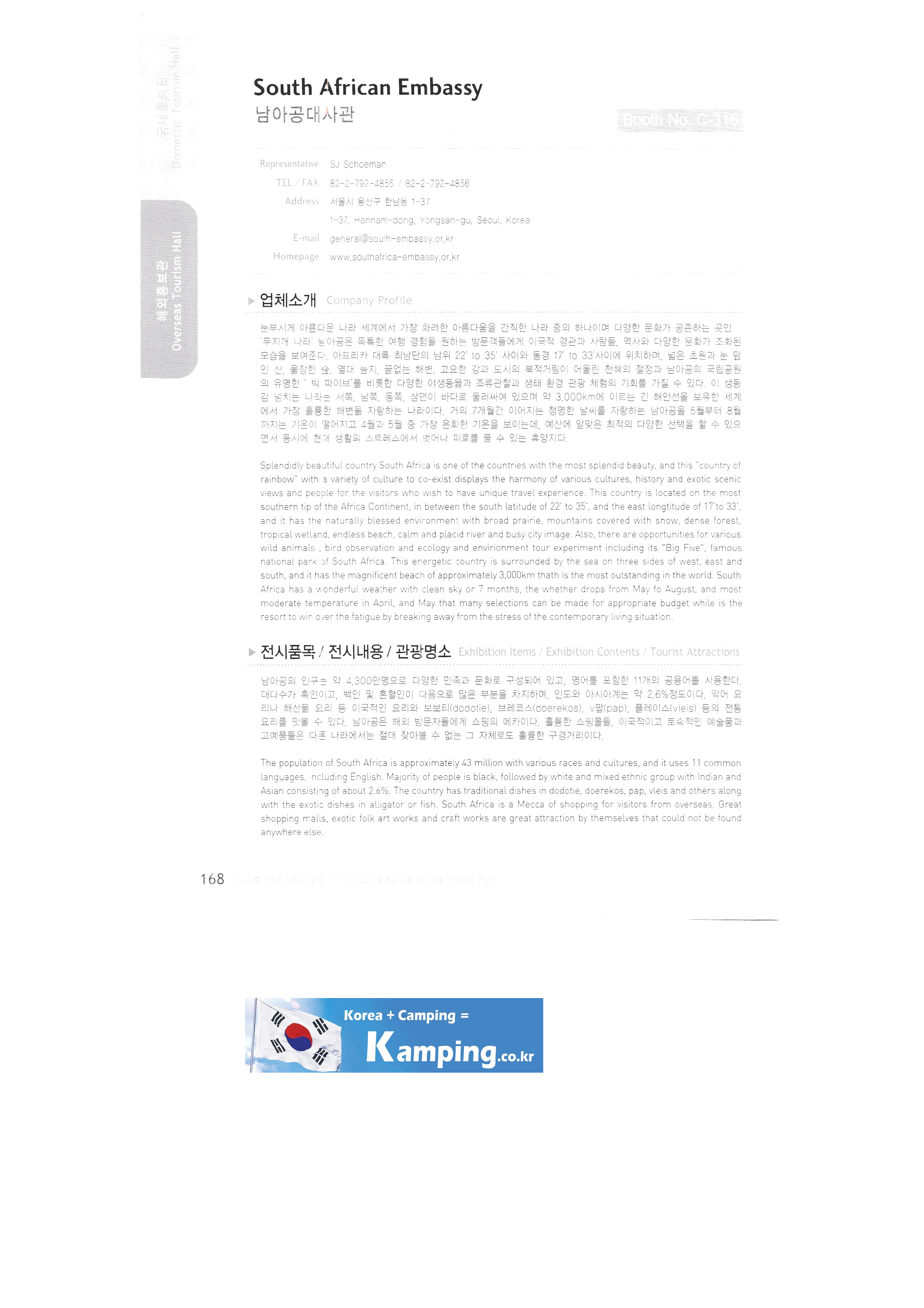 | 슬로베니아 관광청 남아공대사관 타이완관광진흥청 탄자니아 국립공원 주한 캐나다 관광청 태국정부관광청 서울사무소 미국/애플 코어 호텔스 미국/SMC Tour 베트남항공 베트남관광청 짐바브웨관광청 한일문화교류연합회 슬로베니아 /컴파스 D.D. 가나관광청 |
