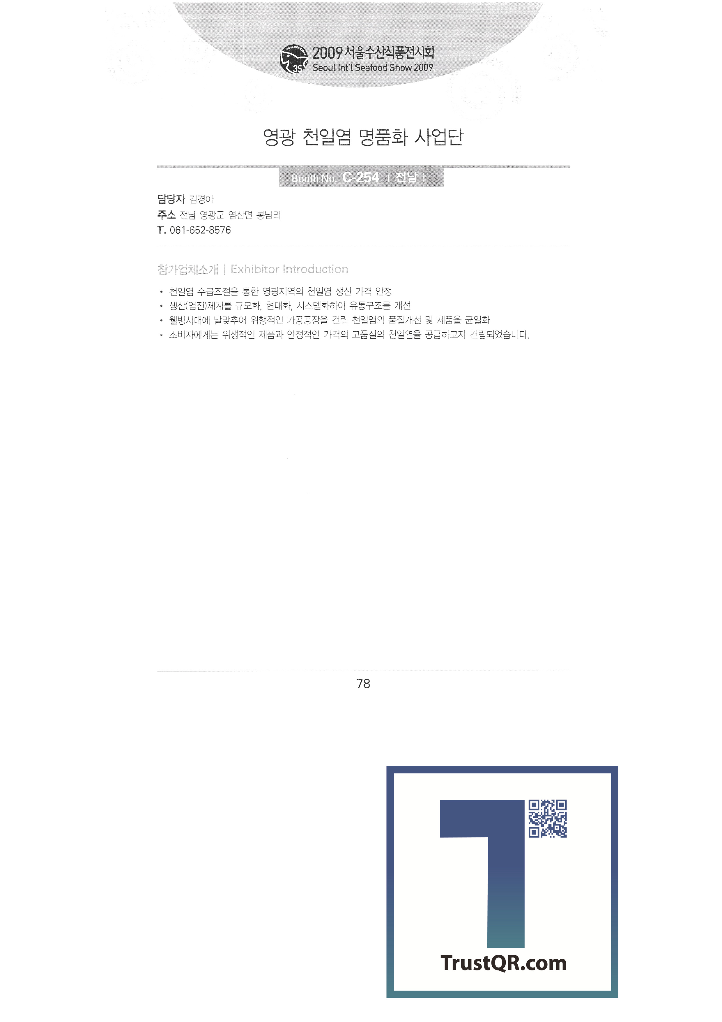 Manjeon Food Co., Ltd. Sea squirt water industry cooperative Anchovy village long-awaited Mirae System Co., Ltd. Full of sea By the sea 21 Badawon Co., Ltd. Beomyang Fisheries (Mushroom Flounder English Association Corporation) Bosung Trading Co., Ltd. Bugwang Fisheries Sajo CS Co., Ltd. Sacheon Fishing Village Sambo Tech Seoul Dried Seafood Co., Ltd. Seokha Trading Co., Ltd. Sunil Fisheries Industry Co., Ltd. Seolin Fisheries Segaero Fisheries Co., Ltd. Sedong Corporation Semin Fisheries Co., Ltd. Sewoong Fisheries Co., Ltd. Songdo Fisheries Federation of Fisheries Cooperatives Korean Food Research Institute, Sookmyung Women's University Suncheon Hamchoja Salt SiG Bio Food and Beverage Newspaper Food Journal Shilla University Industry-Academic Cooperation Foundation RIS Project Team Shinhansung Food Seafood Co., Ltd. Arami Food Ami Corporation Dad's Story of Jeju Badang Fish Andonggan Mackerel Co., Ltd. H R-Monthly) Hotel & Restaurant Yeonggwang Gulbi Special Product Division Yeongwangcheon Sea Salt Luxury Business Team English Association Corporation Hyunjin Marine Orion Food Machinery Yongdaehwangtae English Association Corporation Unit Vision |