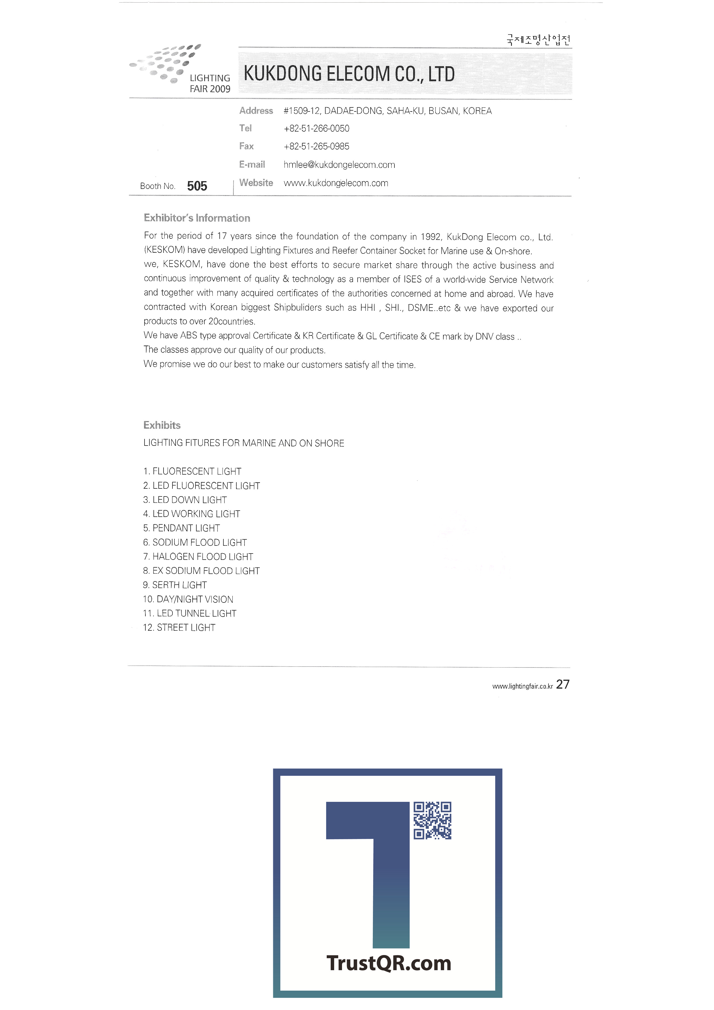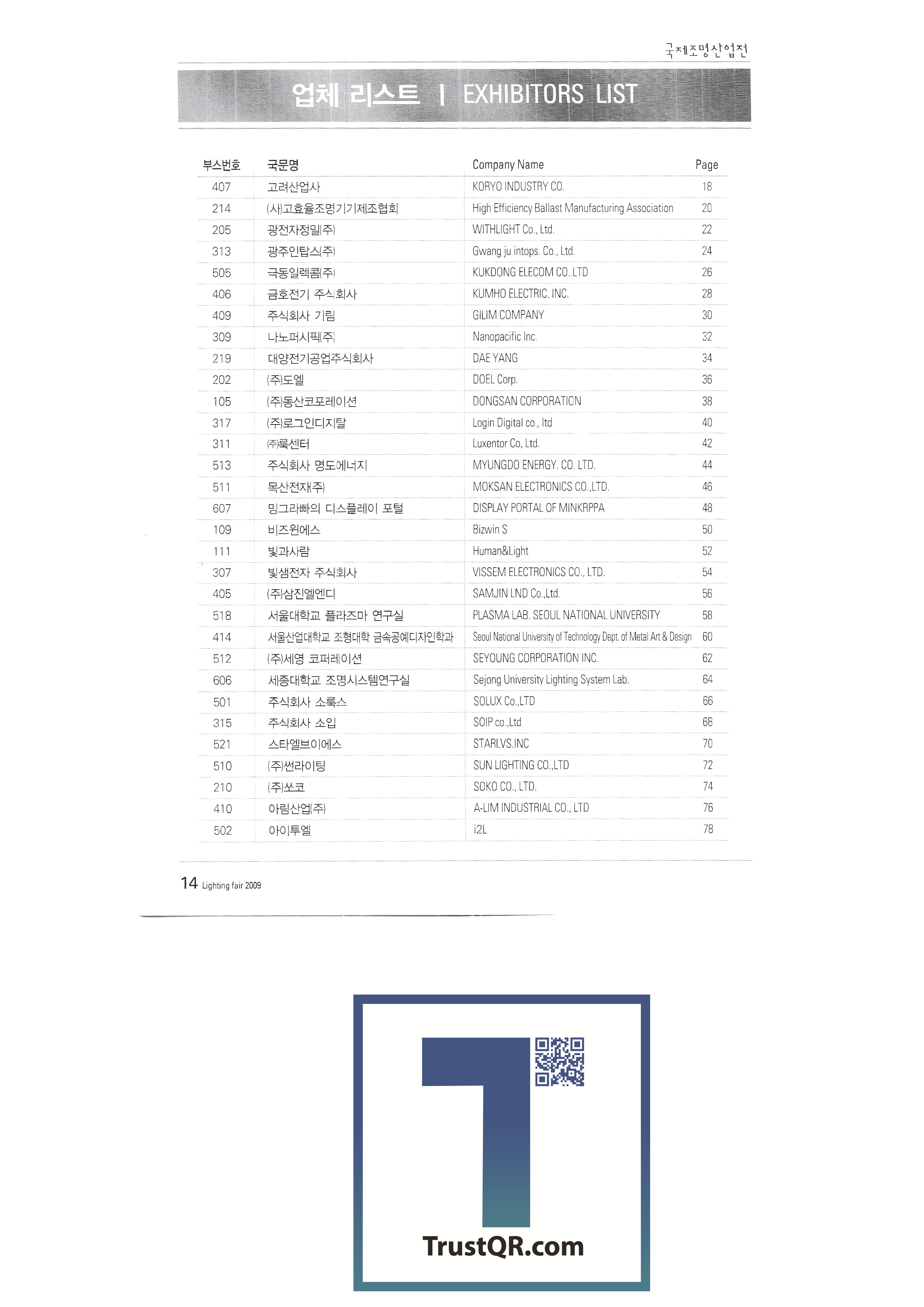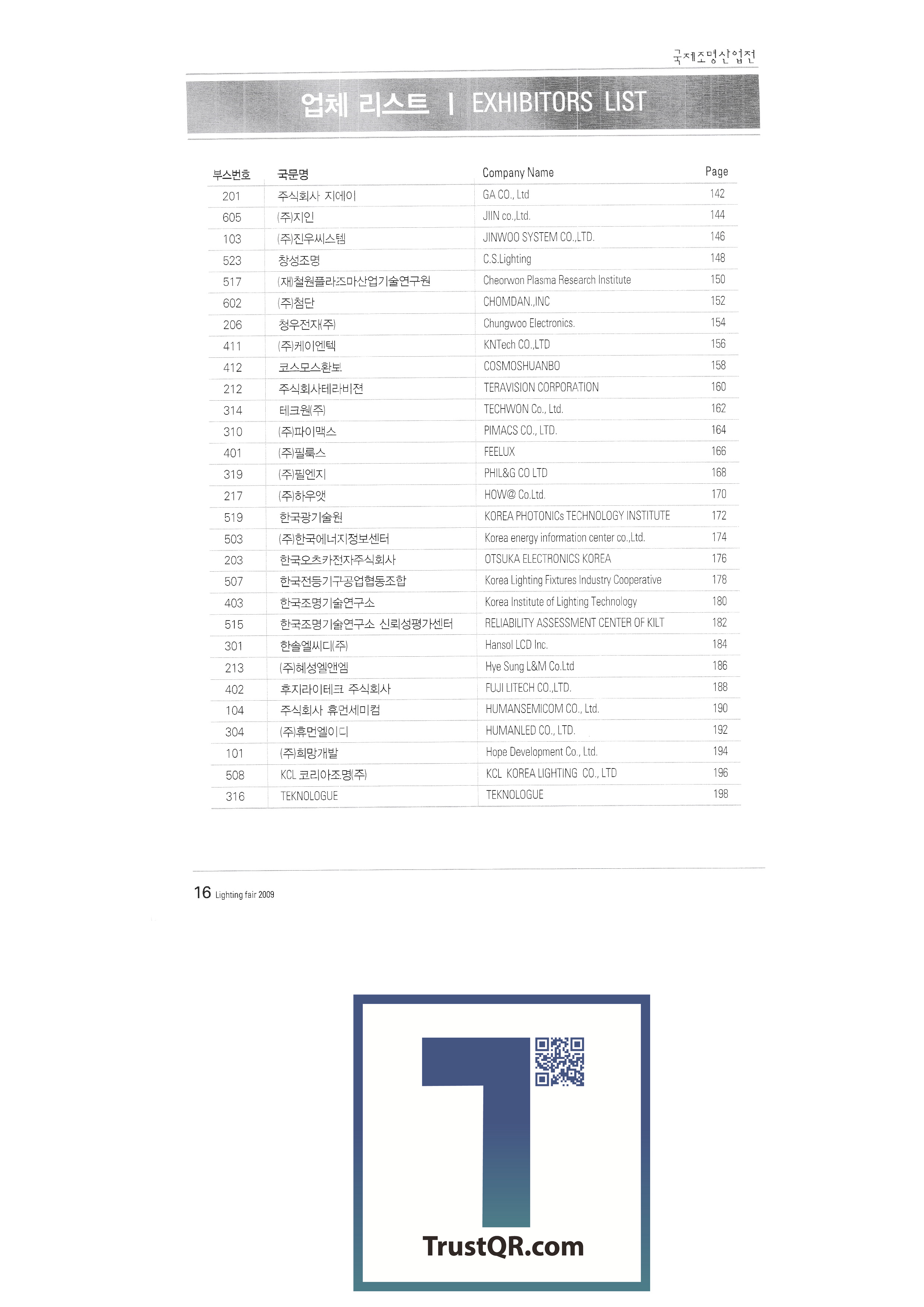 | 고려산업사 (사)고효율조명기기제조협회 광전자정밀㈜ 광주인탑스㈜ 극동일렉콤㈜ 금호전기 주식회사 주식회사 기림 나노퍼시픽㈜ 대양전기공업주식회사 ㈜도엘 ㈜동산코포레이션 ㈜로그인디지탈 ㈜룩센터 |