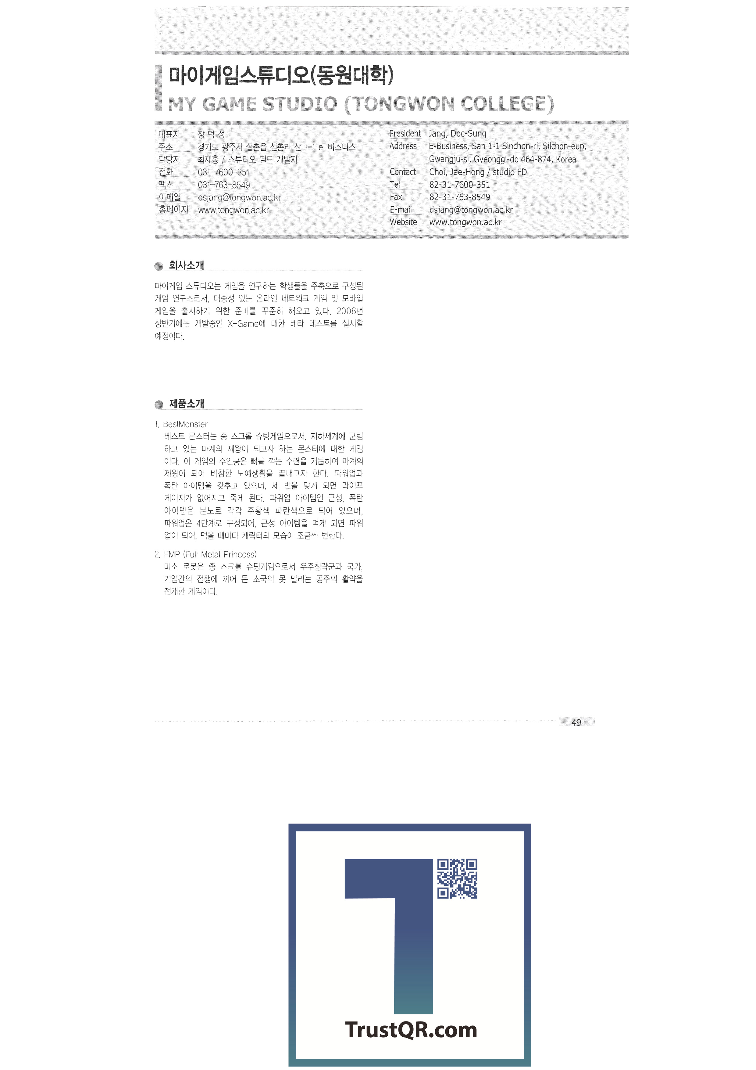 Digital & Digital D-Q DTV Interactive Co., Ltd. Live NC Co., Ltd. Line Messe Co., Ltd. Lansil Co., Ltd. Remote Solution Co., Ltd. My Game Studio (Dongwon University) Myeongjun Information & Communication Moa Communication Megarev Co., Ltd. Miracle Software Co., Ltd. Bavaria Baeksan OPC Co., Ltd. BTN Bflysoft Co., Ltd. People and the future Samsung Electronics Saerotech Saebit Micro Co., Ltd. Seoul Graduate School of Science Sungil Telecom Sungho Industry Co., Ltd. Sehwa P&C Co., Ltd. Cellzino Telecom Softronix Co., Ltd. Soft House Co., Ltd. Sure Soft Tech Co., Ltd. Spire Technology Co., Ltd. Shinyeop Tech Sun Meditech Co., Ltd. CDS Co., Ltd. CIDM C&S ASEA BOLT Ivid Co., Ltd. Ivy Media Co., Ltd. I.B.S. Ain Pictures Morning Technology Co., Ltd. Atech Co., Ltd. Upgrade Information System Co., Ltd. |