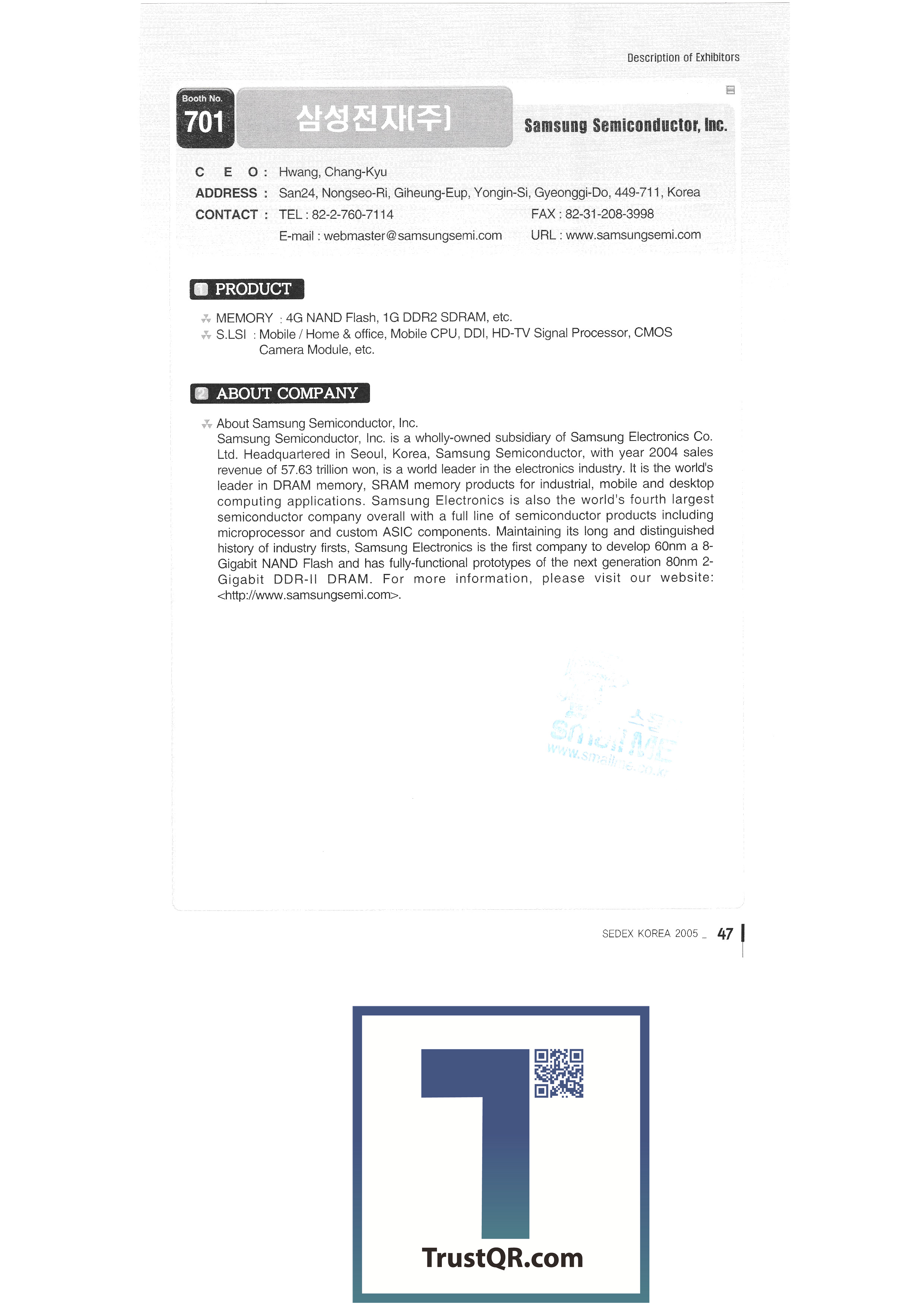 SEDEX KOREA 2005, 대한민국, 반도체, 디스플레이 전시회, - 2