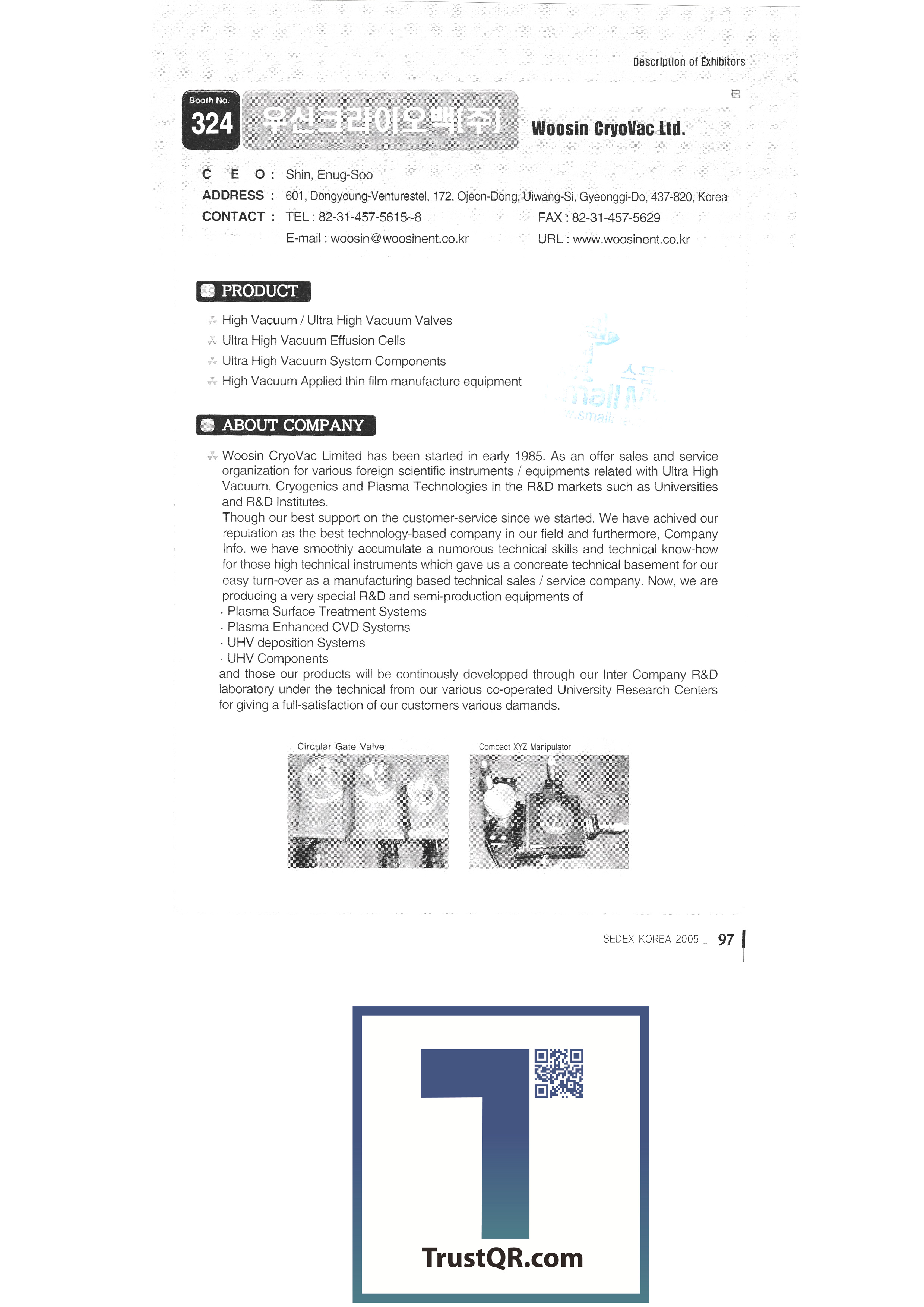 STS Co., Ltd. AD Chips Acetech Co., Ltd. A&G APTC Co., Ltd. FST Co., Ltd. Elumatech Korea Co., Ltd. LM Tech LOT Vacuum Co., Ltd. MCS Logic Co., Ltd. MAT Co., Ltd. Mtek Vision Co., Ltd. Youngjin Astech Auto CFT Co., Ltd. Woosung Vacuum Wooshin Cryobag Co., Ltd. Wooil High Tech Wooshin ACT Ultech Wonik Quartz Co., Ltd. Monthly motion control World Courier Korea Yunam Optics Editech Co., Ltd. EN Technology Co., Ltd. EO Technics Enweiser Intec Infobion Co., Ltd. INFICON Ilwoong Trading Co., Ltd. Jaram Technology Co., Ltd. Electronic Components Research Institute Electronic Materials Genesis Technology Co., Ltd. JC International Co., Ltd. Gelline Co., Ltd. Jettech Julabo Korea Co., Ltd. KC Tech K-One Information Communication KC Co., Ltd. |