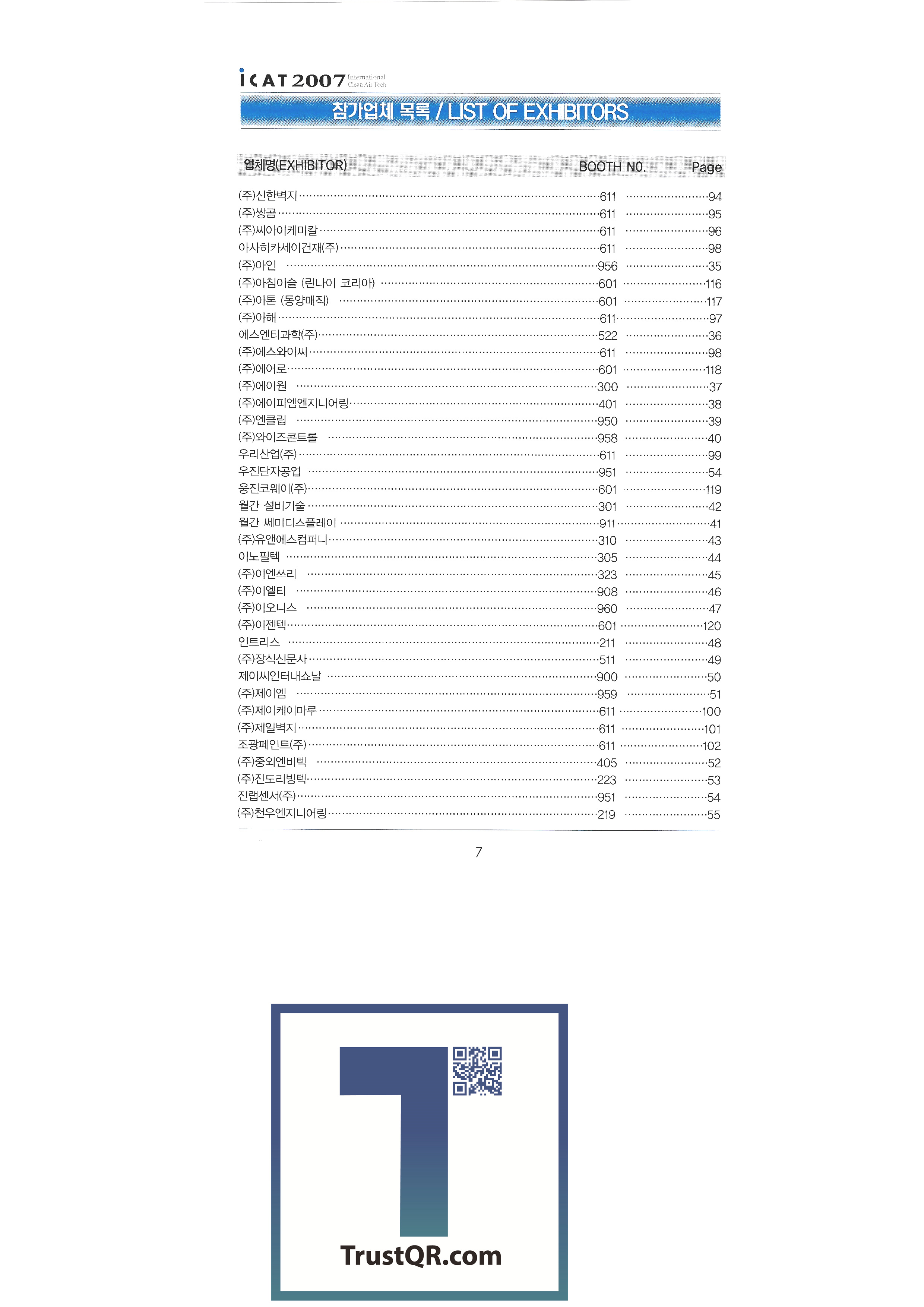 | 가든뷰 고모텍㈜ ㈜과학기술분석센터 국립환경과학원 ㈜기린엘앤에스 노우앤킵유어제니스㈜ ㈜대양하이테크 동일시마즈㈜ 레크에어코리아 로젠버그코리아㈜ ㈜맑은공기 ㈜맑은전자 미투엔지니어링㈜ ㈜바이오텔 반도체 네트워크 (재)부산테크노파크 부품소재기술연구소 기계부품소재기술지원센터 ㈜삼우이엠씨 ㈜선레이 ㈜세명하이트 ㈜아인 |