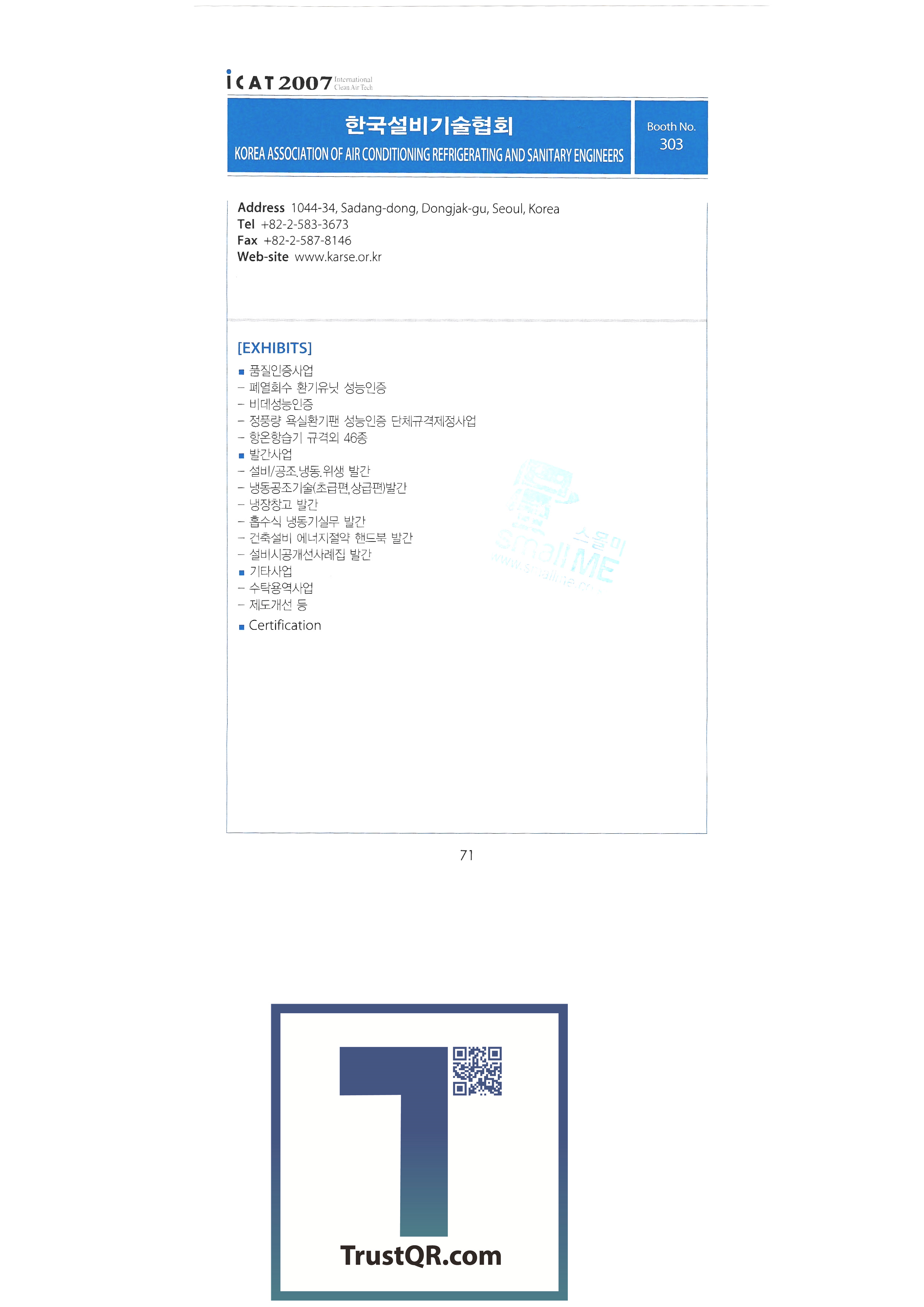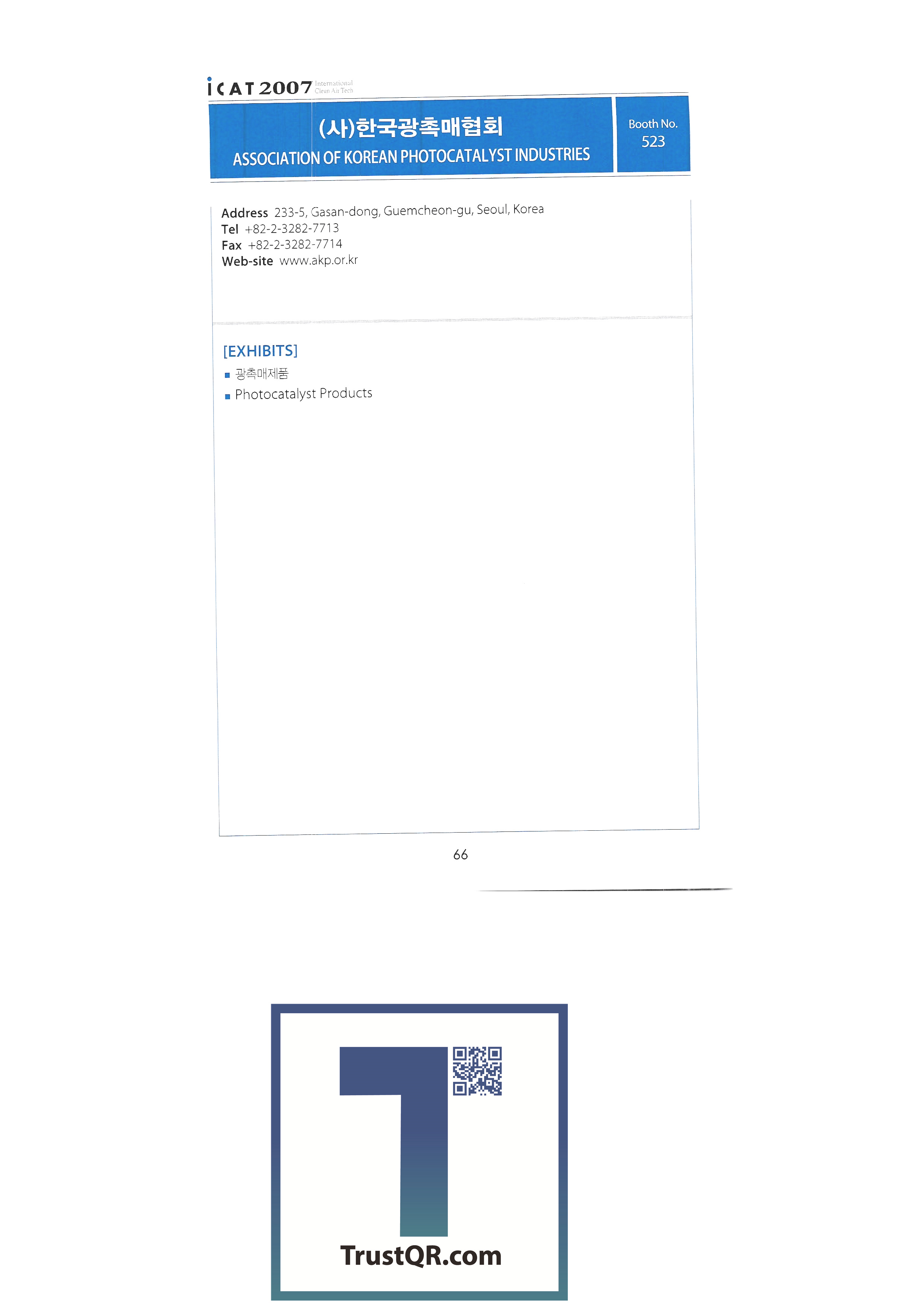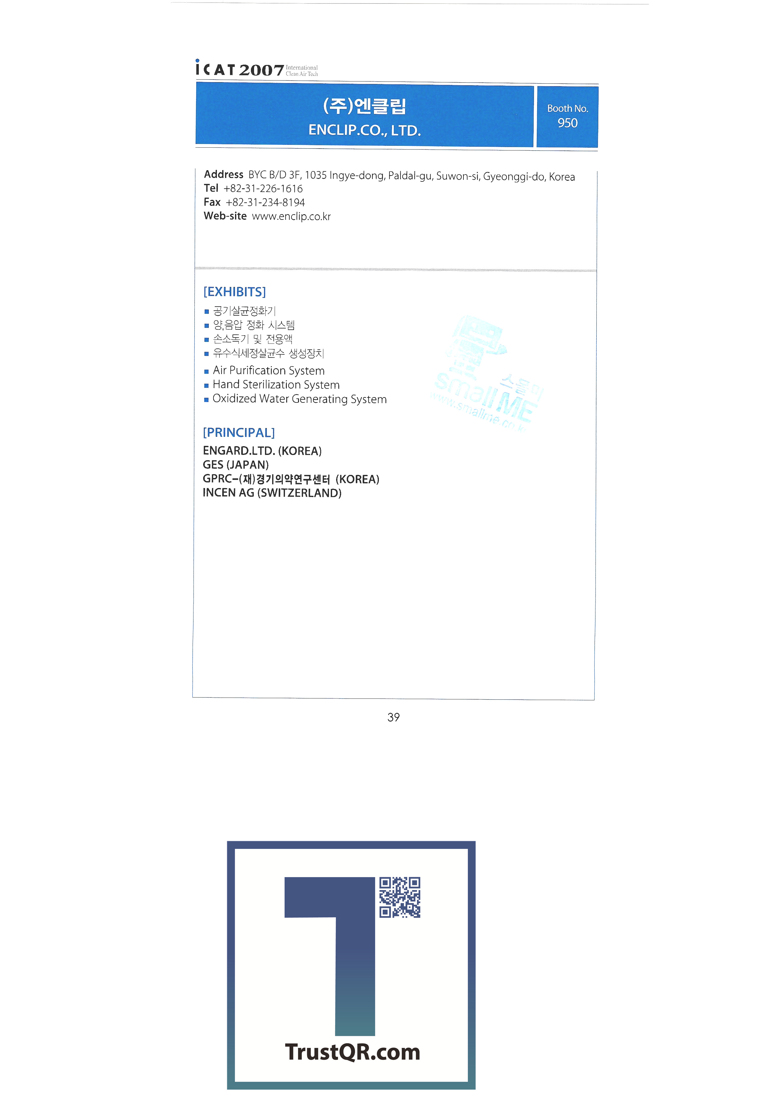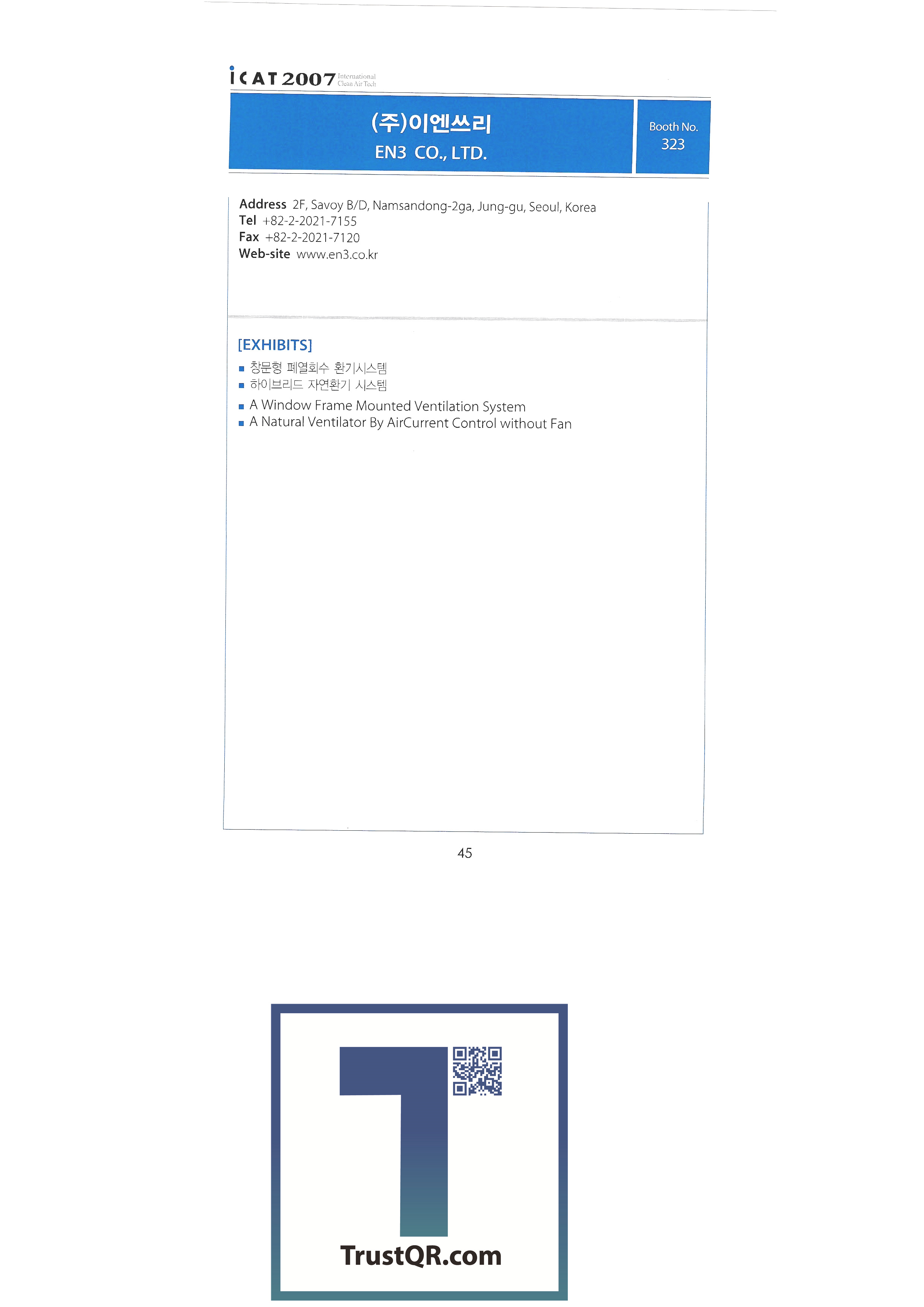 S&T Science Co., Ltd. A-One APM Engineering Co., Ltd. Enclip Co., Ltd. Wise Control Monthly Semi Display Monthly facility technology U&S Company Innofiltech EN3 ELT IONIS Intris Jangsik Newspaper Co., Ltd. JC International JM Co., Ltd. Joongeo Envitech Jindo Livingtech Co., Ltd. Jin Lab Sensor Co., Ltd. Cheonwoo Engineering Co., Ltd. Cheongmin Trade Clean & Science Total Engineering Hana Engineering Co., Ltd. Hico Hearts Co., Ltd. Korea Ganomax Korea Health Housing Association Korea Construction Materials Testing Institute Korea Air Cleaning Association Korea Photocatalyst Association Korea Institute of Machinery and Materials Korea Refrigeration and Air Conditioning Association Korea Building Consulting Korea Institute of Industrial Technology Korea Facility Technology Association Korea Indoor Environment Measurement Association Korean Institute of Indoor Environment Korea Total Technology Co., Ltd. Korean acquaintance |