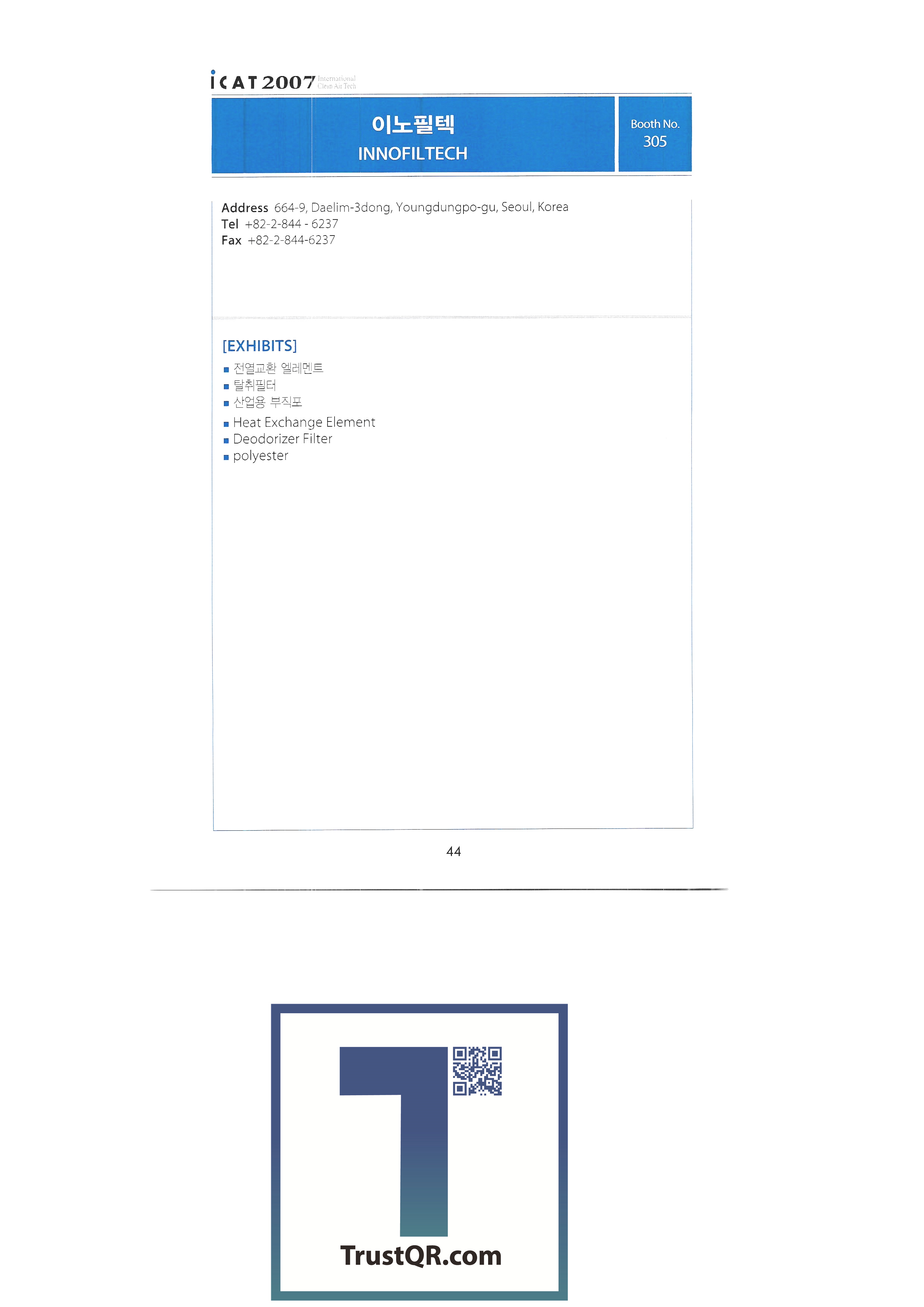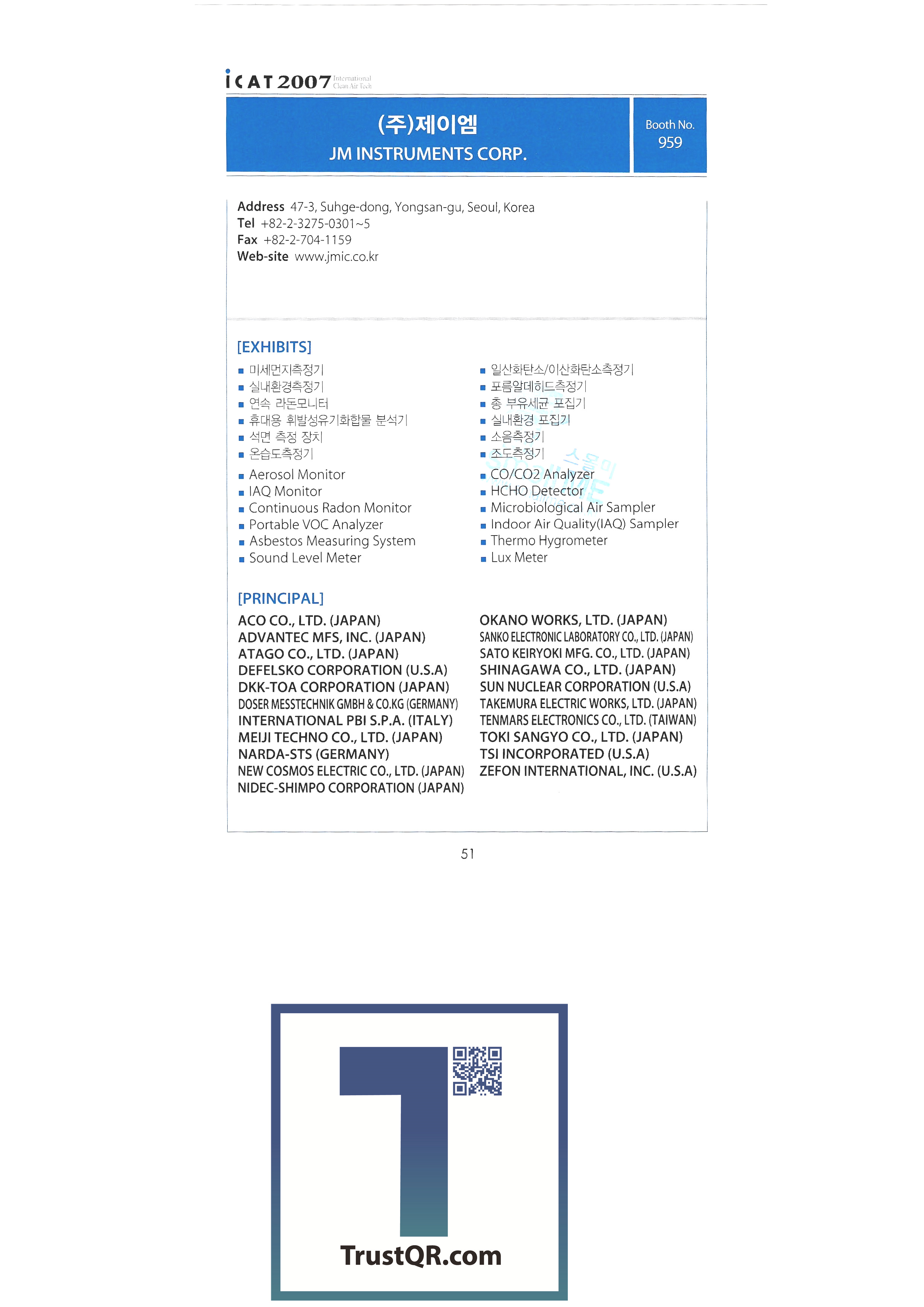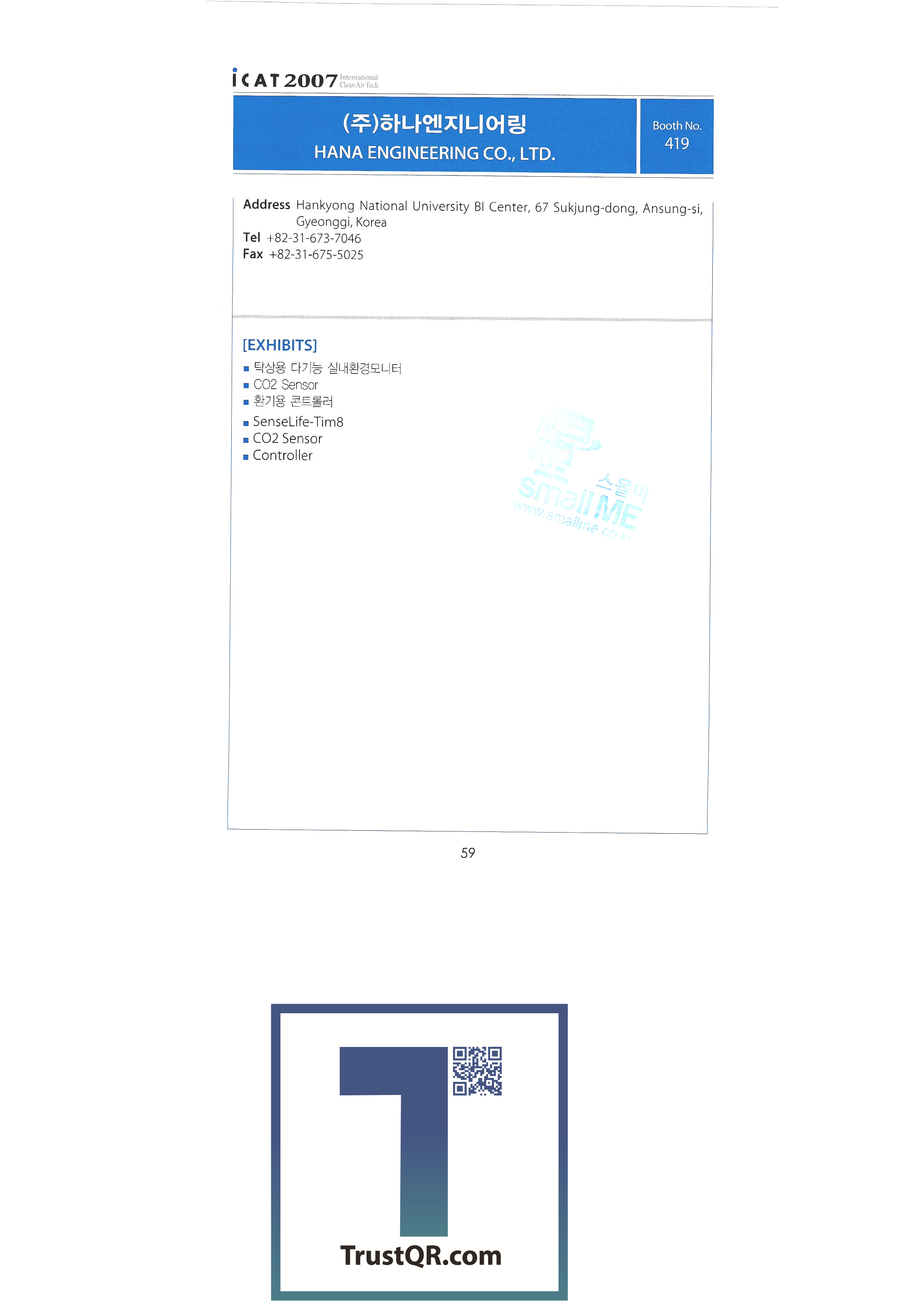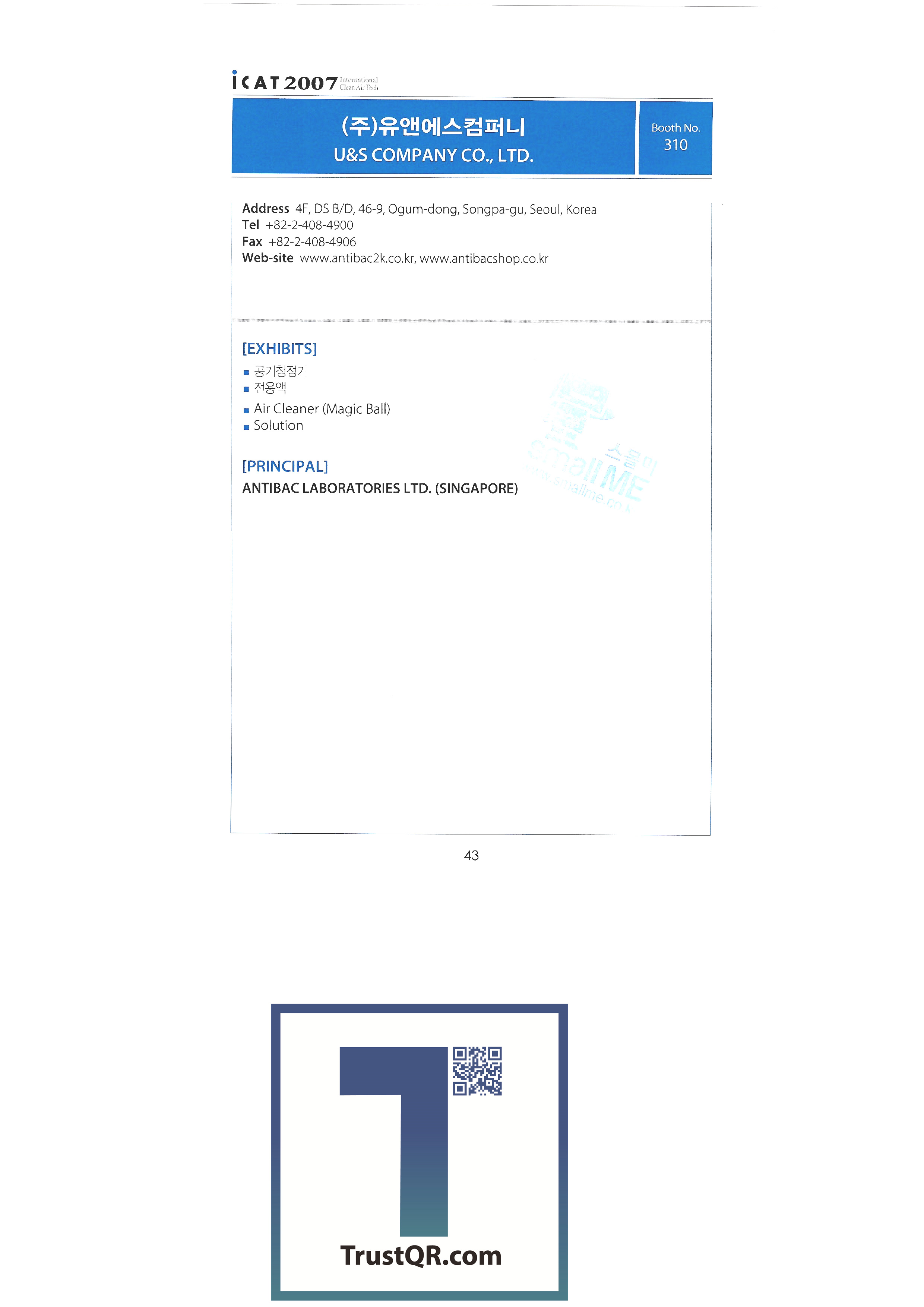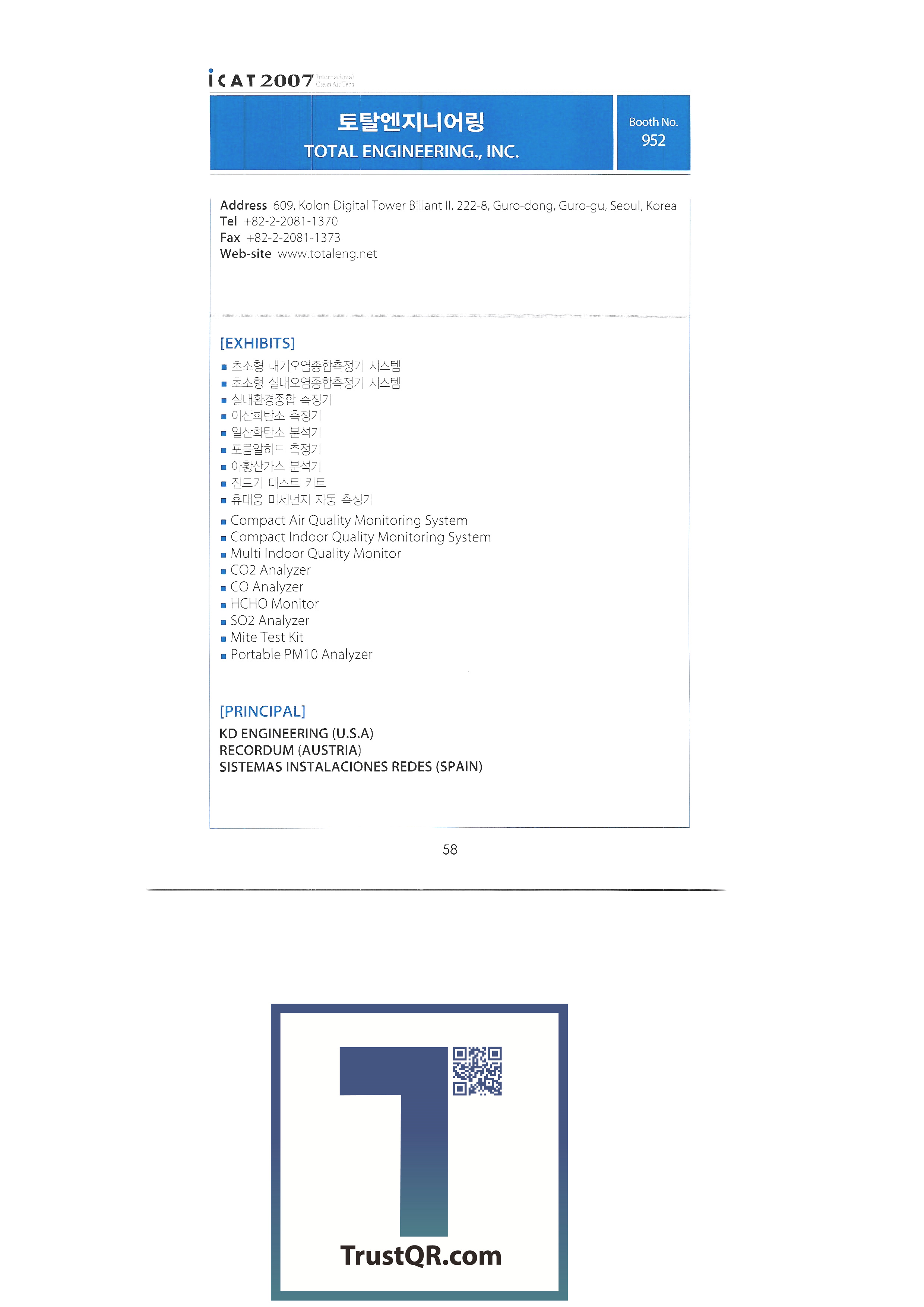 S&T Science Co., Ltd. A-One APM Engineering Co., Ltd. Enclip Co., Ltd. Wise Control Monthly Semi Display Monthly facility technology U&S Company Innofiltech EN3 ELT IONIS Intris Jangsik Newspaper Co., Ltd. JC International JM Co., Ltd. Joongeo Envitech Jindo Livingtech Co., Ltd. Jin Lab Sensor Co., Ltd. Cheonwoo Engineering Co., Ltd. Cheongmin Trade Clean & Science Total Engineering Hana Engineering Co., Ltd. Hico Hearts Co., Ltd. Korea Ganomax Korea Health Housing Association Korea Construction Materials Testing Institute Korea Air Cleaning Association Korea Photocatalyst Association Korea Institute of Machinery and Materials Korea Refrigeration and Air Conditioning Association Korea Building Consulting Korea Institute of Industrial Technology Korea Facility Technology Association Korea Indoor Environment Measurement Association Korean Institute of Indoor Environment Korea Total Technology Co., Ltd. Korean acquaintance |