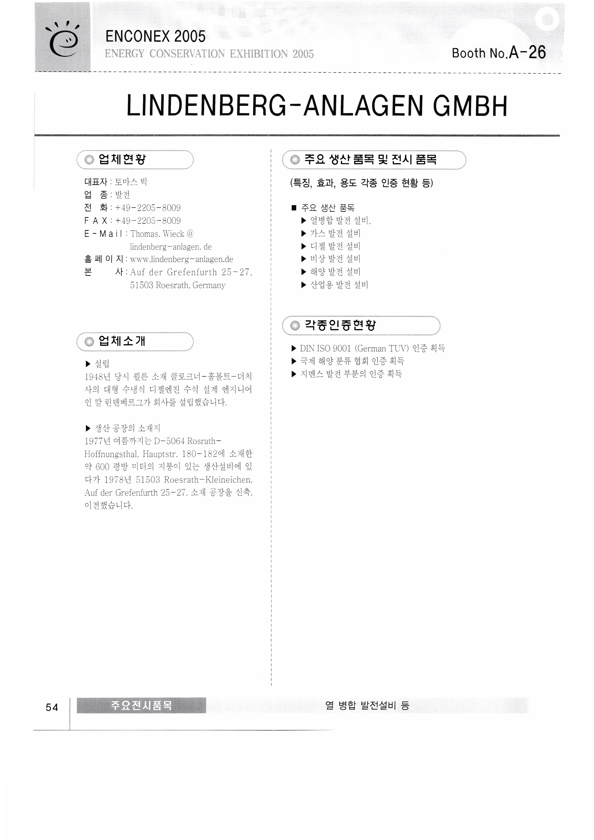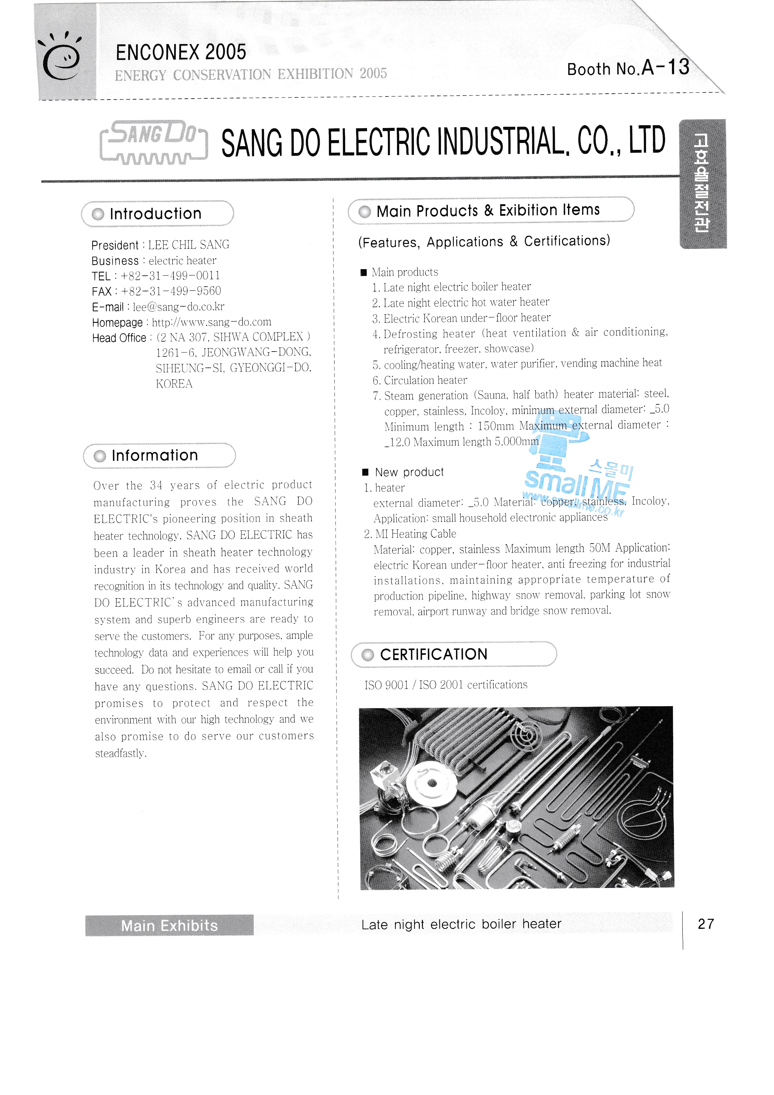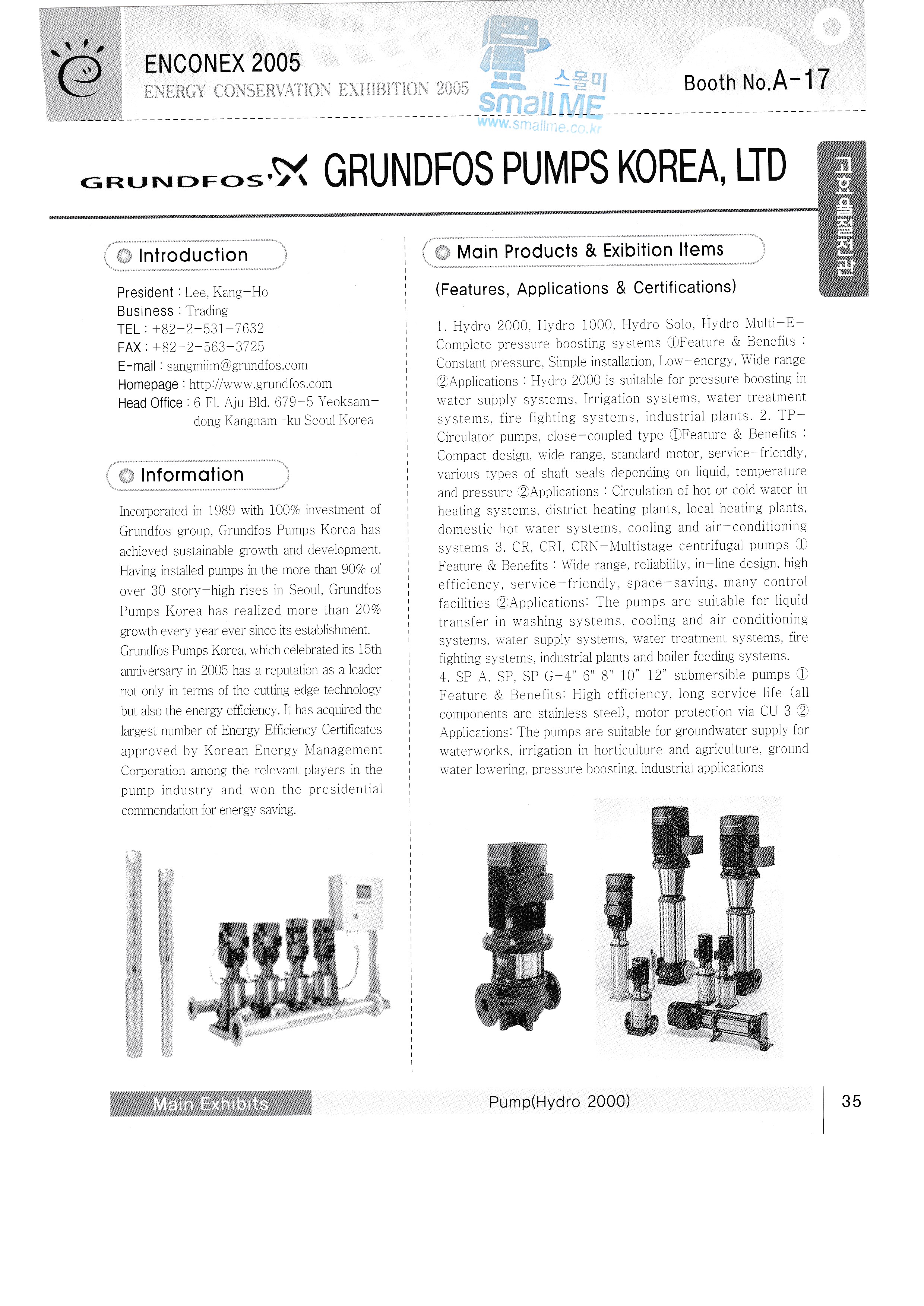 New Green Tech Co., Ltd. Samchully Co., Ltd. Dowon ENG Mansang Trading Co., Ltd. Easy Saver Sangdo Electric Industry Co., Ltd. Happy Global Co., Ltd. Hyundai Heavy Industries Sekwang Enertech Korea Grunforce Pump Co., Ltd. Douk Co., Ltd. Kumho Electric Co., Ltd. Aprus Co., Ltd. Fuel Cell Power Co., Ltd. Miim International Co., Ltd. Cochip Co., Ltd. MIT Enterprise Co., Ltd. MDE Degentrale Energy System Co., Ltd./Hana International (Sales and Technical Support Center) Kenertech LINDENBRG-ANLAGEN GMBH |