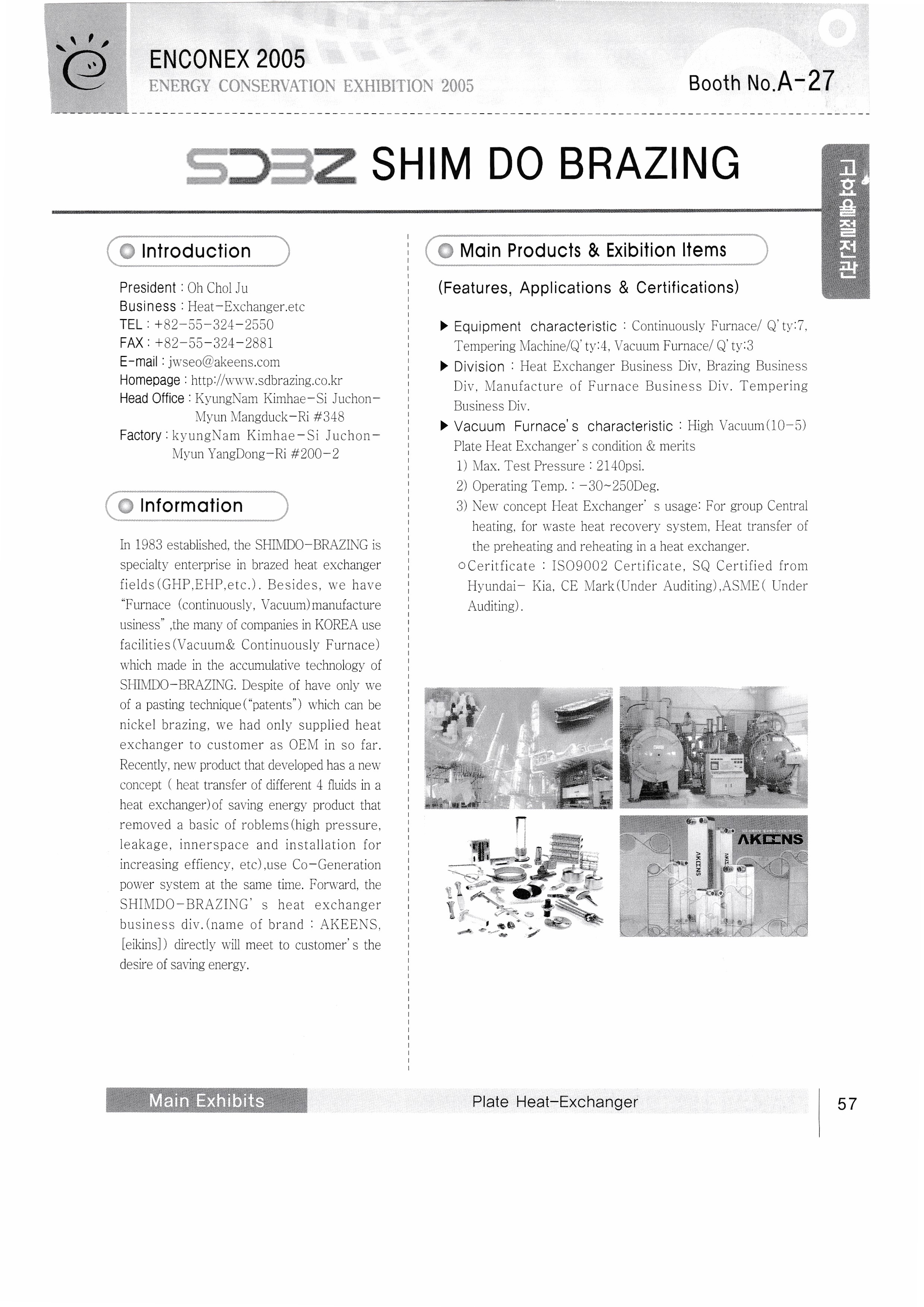 Depth Brazing Taeyang Electronics Etech Co., Ltd. Daeryun Industry Co., Ltd. VS E&G Om Industry Co., Ltd. Seoul Data System Co., Ltd. Exergy Tech Energy Solutions, Inc. Korea BASF Konic System Co., Ltd. E&E System Co., Ltd. Daeyeol Plant Water Love Techwin Co., Ltd. Sun Global Co., Ltd. Nara Corporation Kyungdong Boiler Lotte Processing Co., Ltd. |