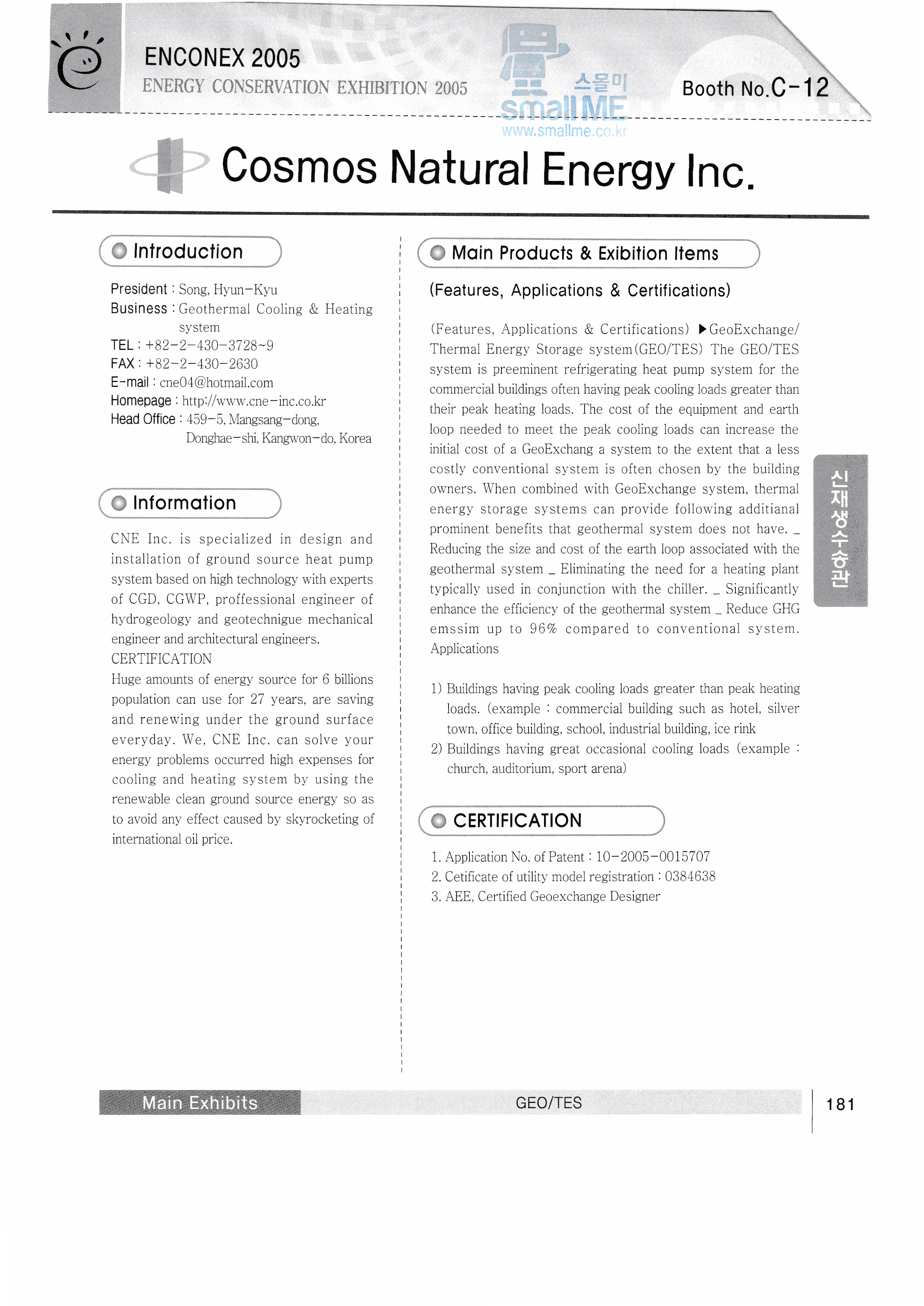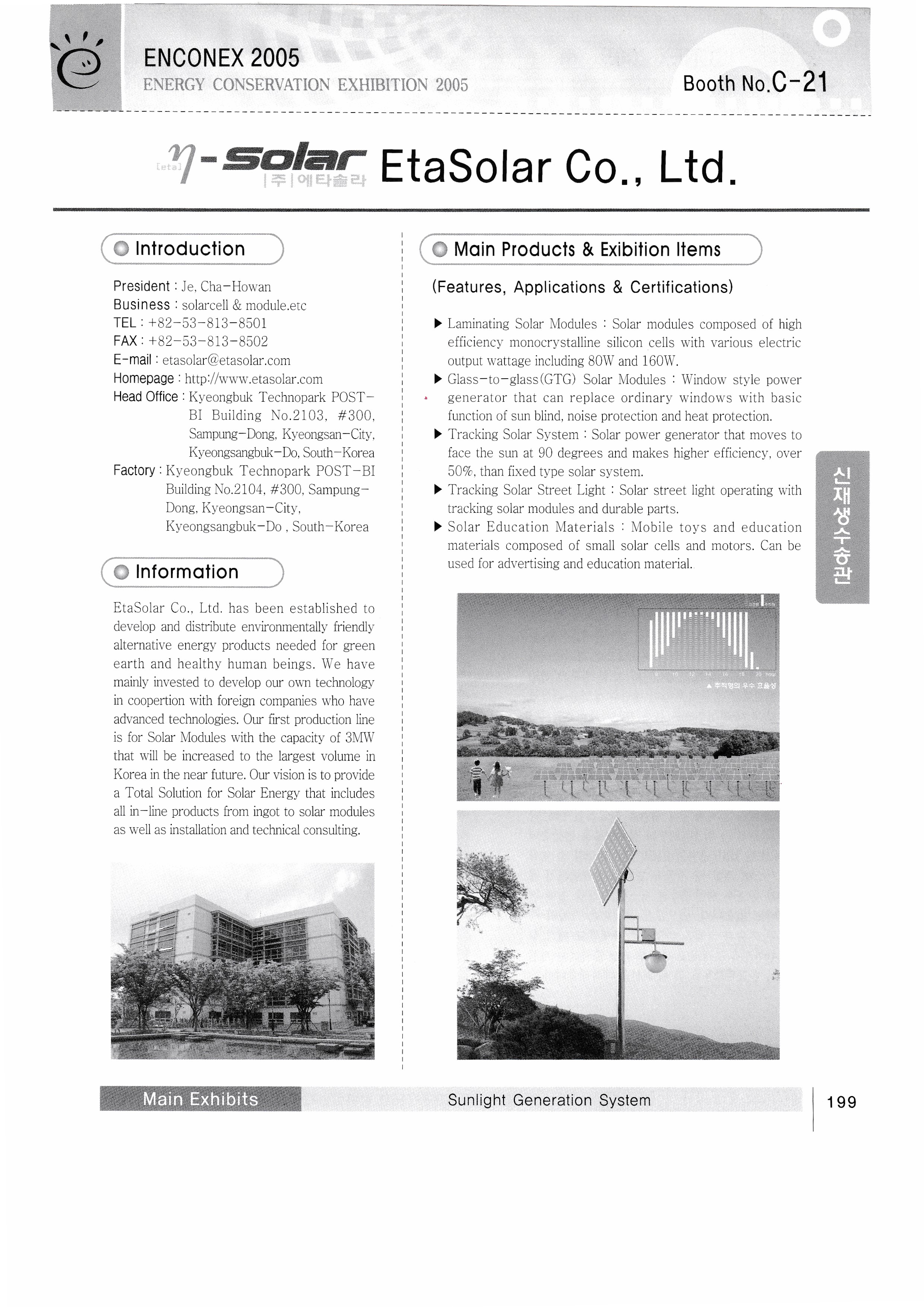 Moin Energy Co., Ltd. Marine Geothermal System CNE Co., Ltd. Apack Co., Ltd. Edison Korea Co., Ltd. Asys Co., Ltd. The Solari NC Geotech Co., Ltd. I Power Co., Ltd. Jane Trading Co., Ltd. Grand Solday Co., Ltd. Eta Solar Co., Ltd. Unison Corporation Hyundai Motor Company GM Daewoo Auto & Technology Co., Ltd. Ilman Co., Ltd. Soko Co., Ltd. Light house First Inn |
