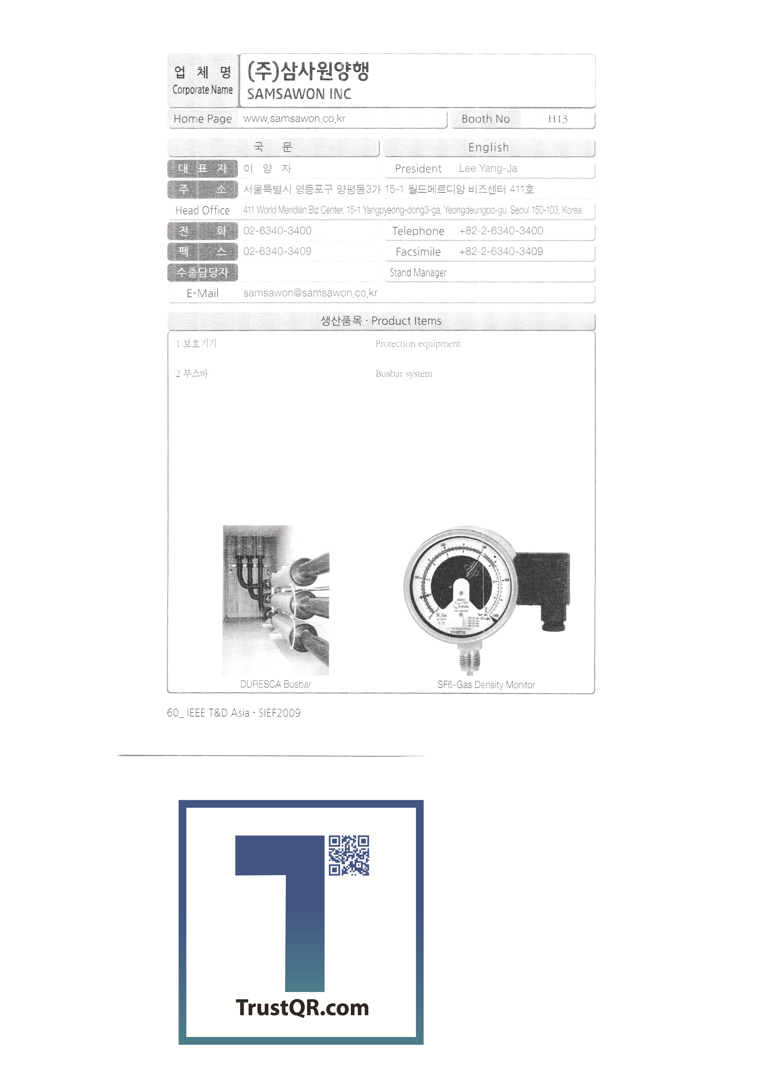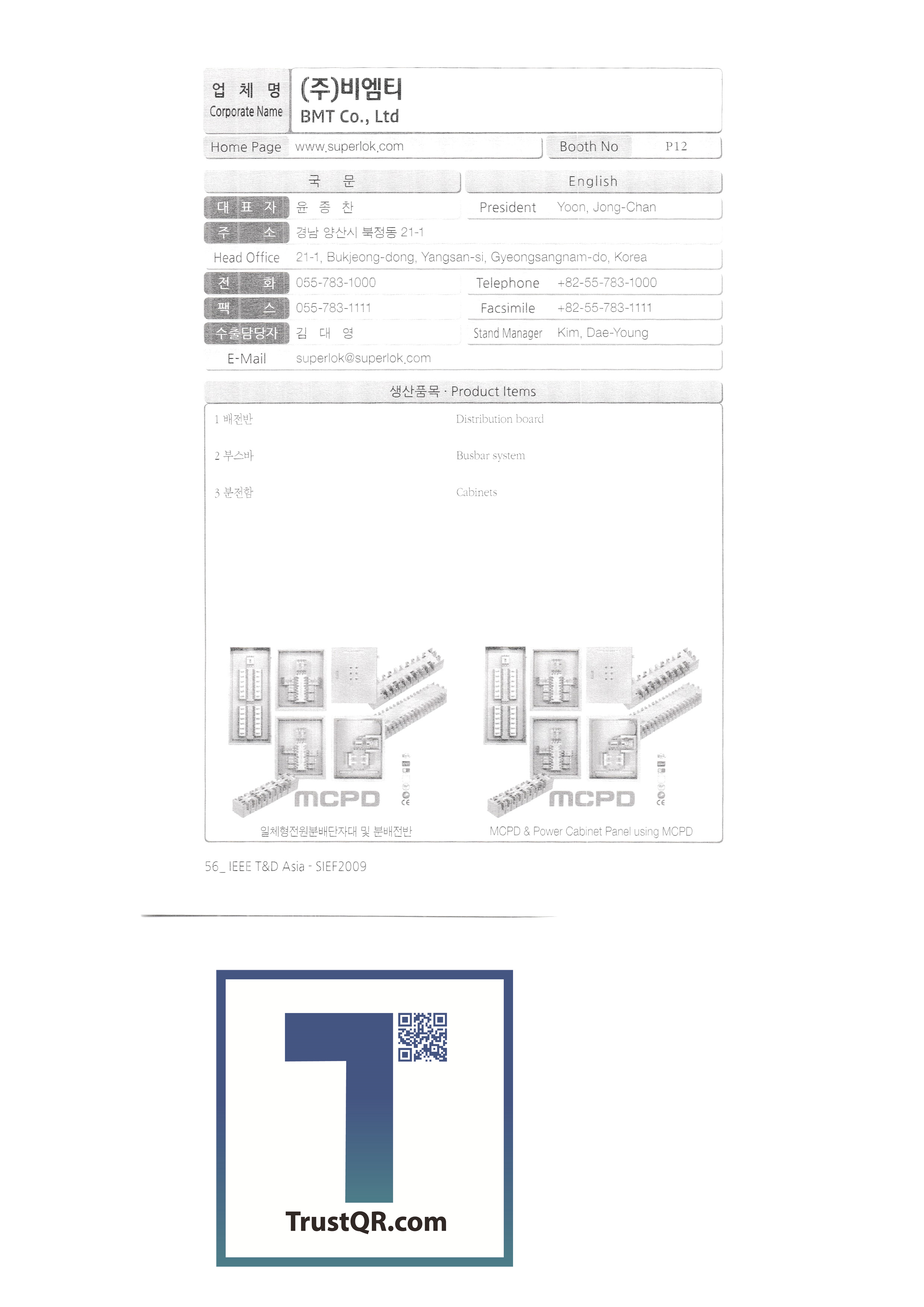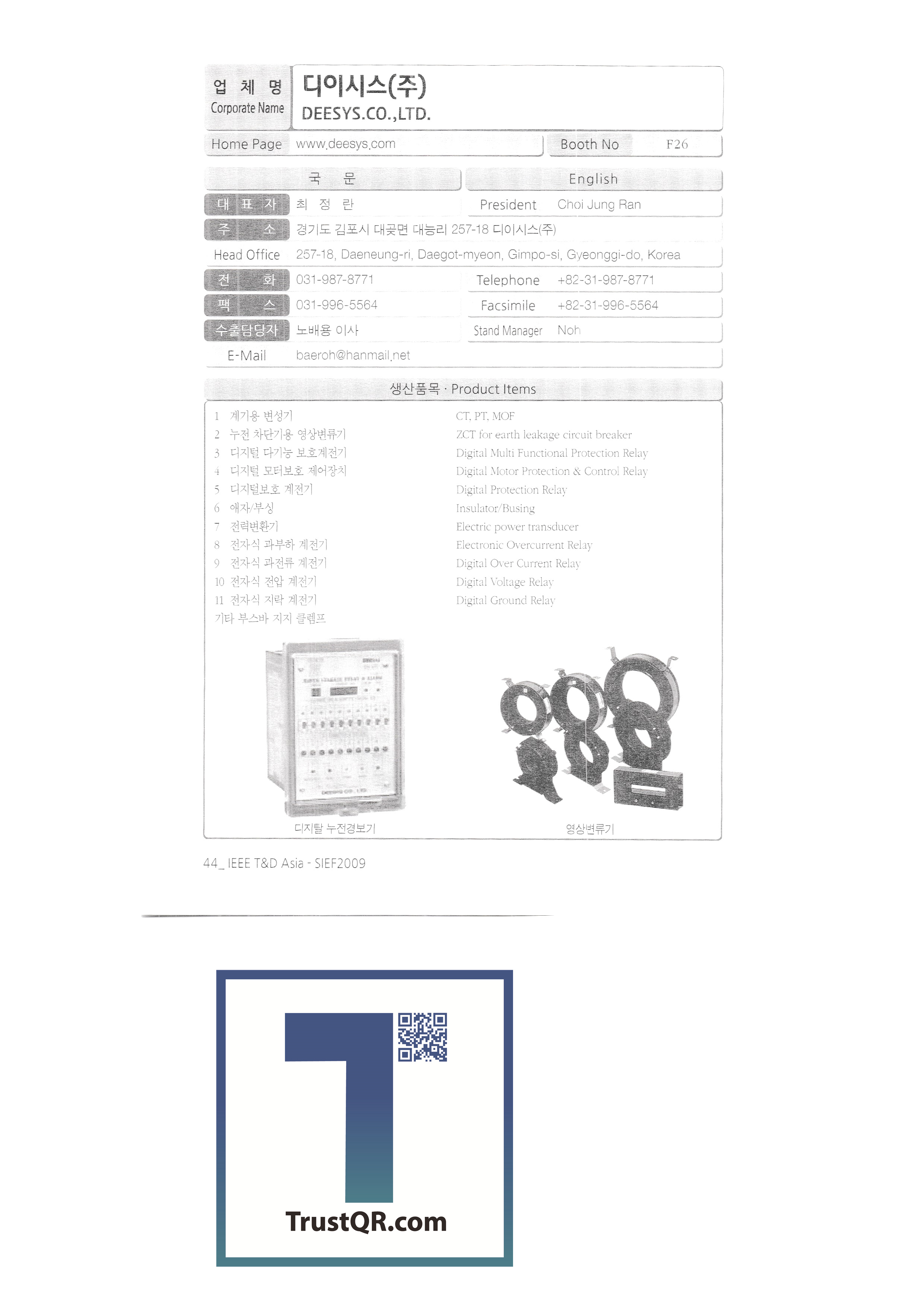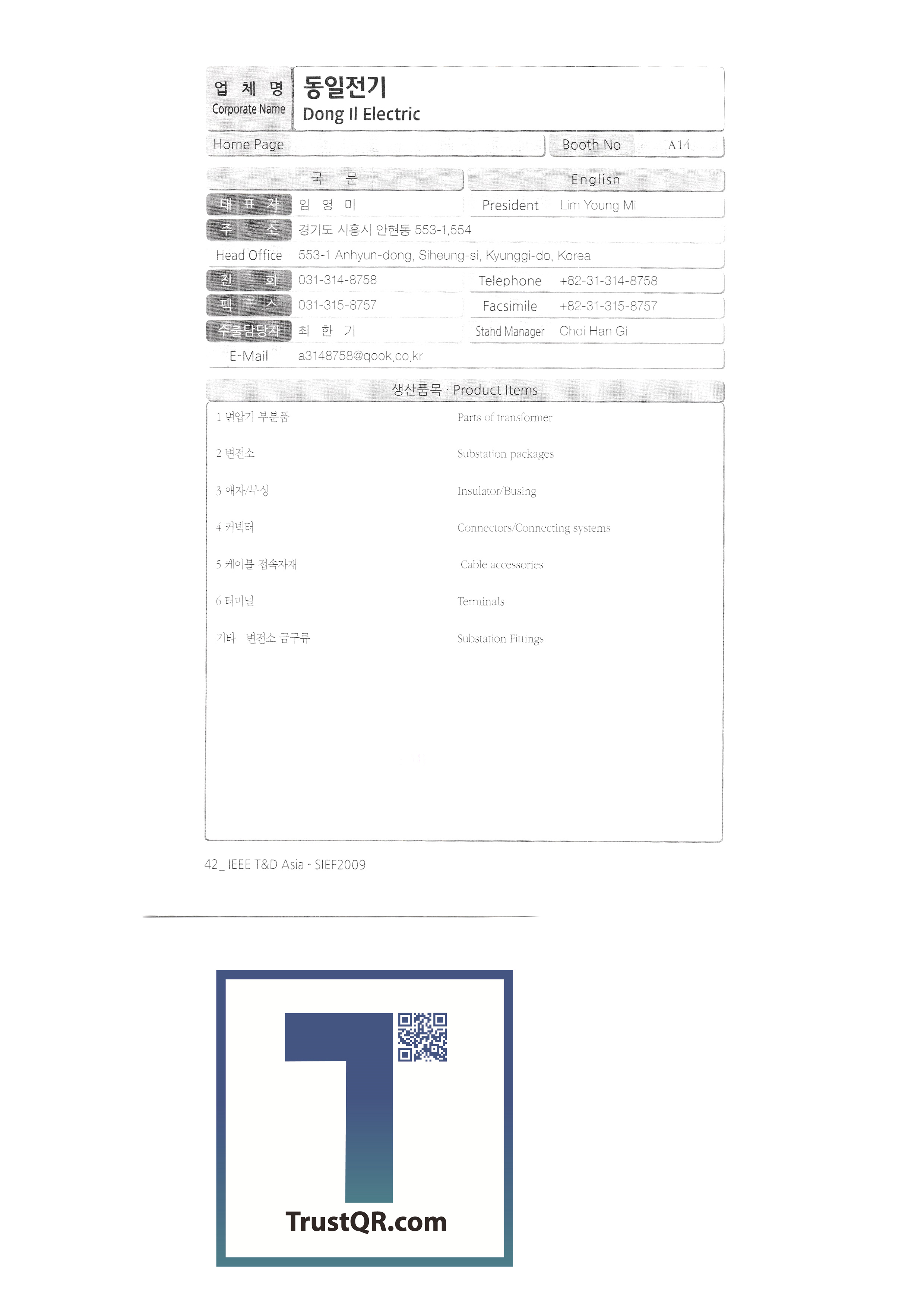 Dongil Electric Doowon Electric Wire Co., Ltd. D.SYS Co., Ltd. Digital Power Co., Ltd. DTR Latch One Co., Ltd. Reform Tech Co., Ltd. Manu Crystal Bando MPS Co., Ltd. Bando Hoist Crane Bogang Hitech Co., Ltd. Bokuk Electric Industry Co., Ltd. Busan Furniture Co., Ltd. Buksung Bestec BMT Vitzro Tech Sanil Electric Co., Ltd. Samdong Co., Ltd. Samsawon Corporation Samil Transformer Co., Ltd. Samil PJ Samho KIT Samhwa Industry Samsol Information Technology Co., Ltd. Samtra International Sogang ENC Seoyoung Tech Seoul Data System Co., Ltd. Seoul Industrial Systems Co., Ltd. Seoul Power System Seoil Electronics Sunglim Electric Power Co., Ltd. Sungjin Machinery Sungjin Electric Co., Ltd. Sungho Control Equipment Co., Ltd. Segi Biz Senion Co., Ltd. Sejin Instrument Co., Ltd. Showa Electric Cable System Co., Ltd. Swaco Co., Ltd. |