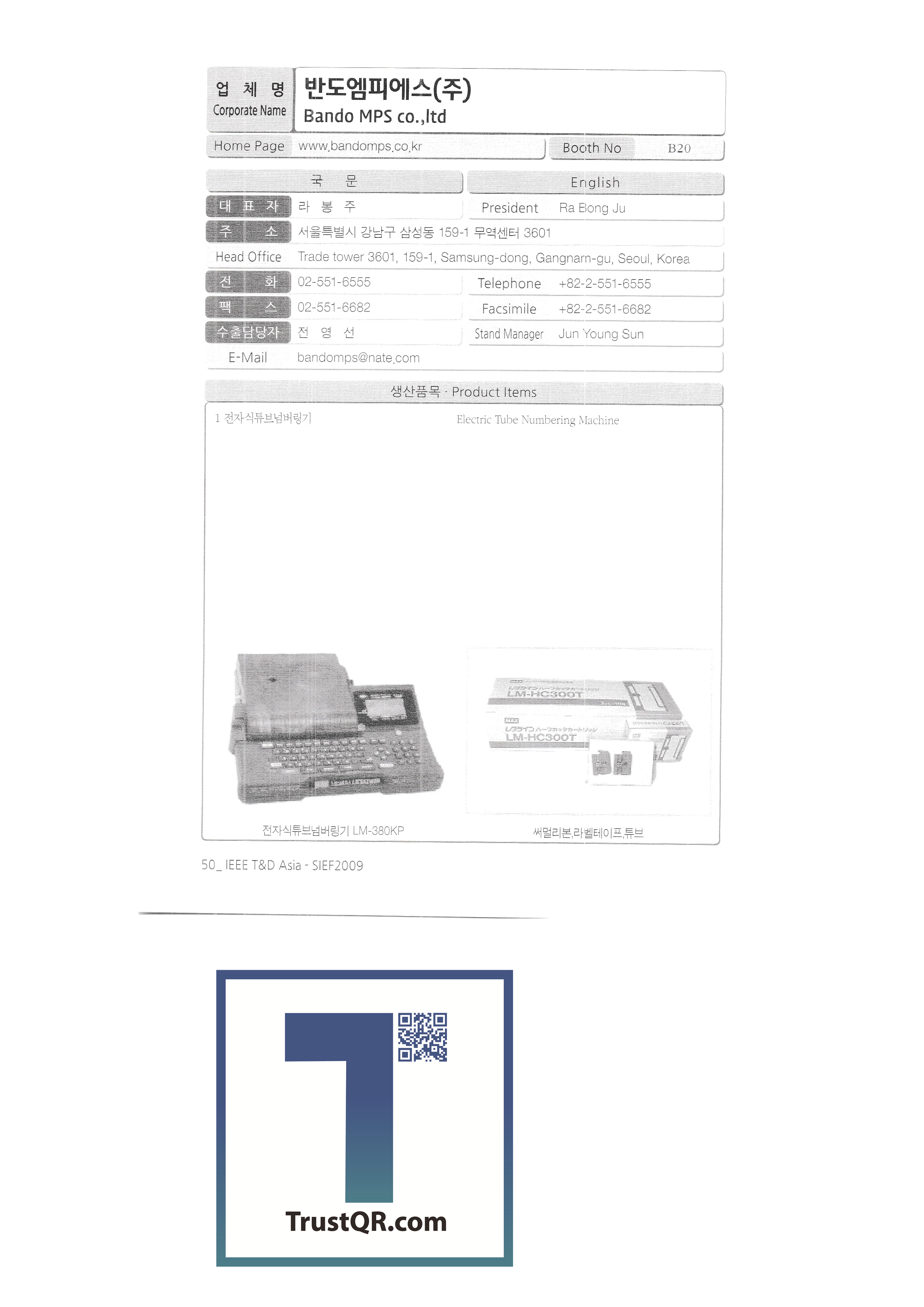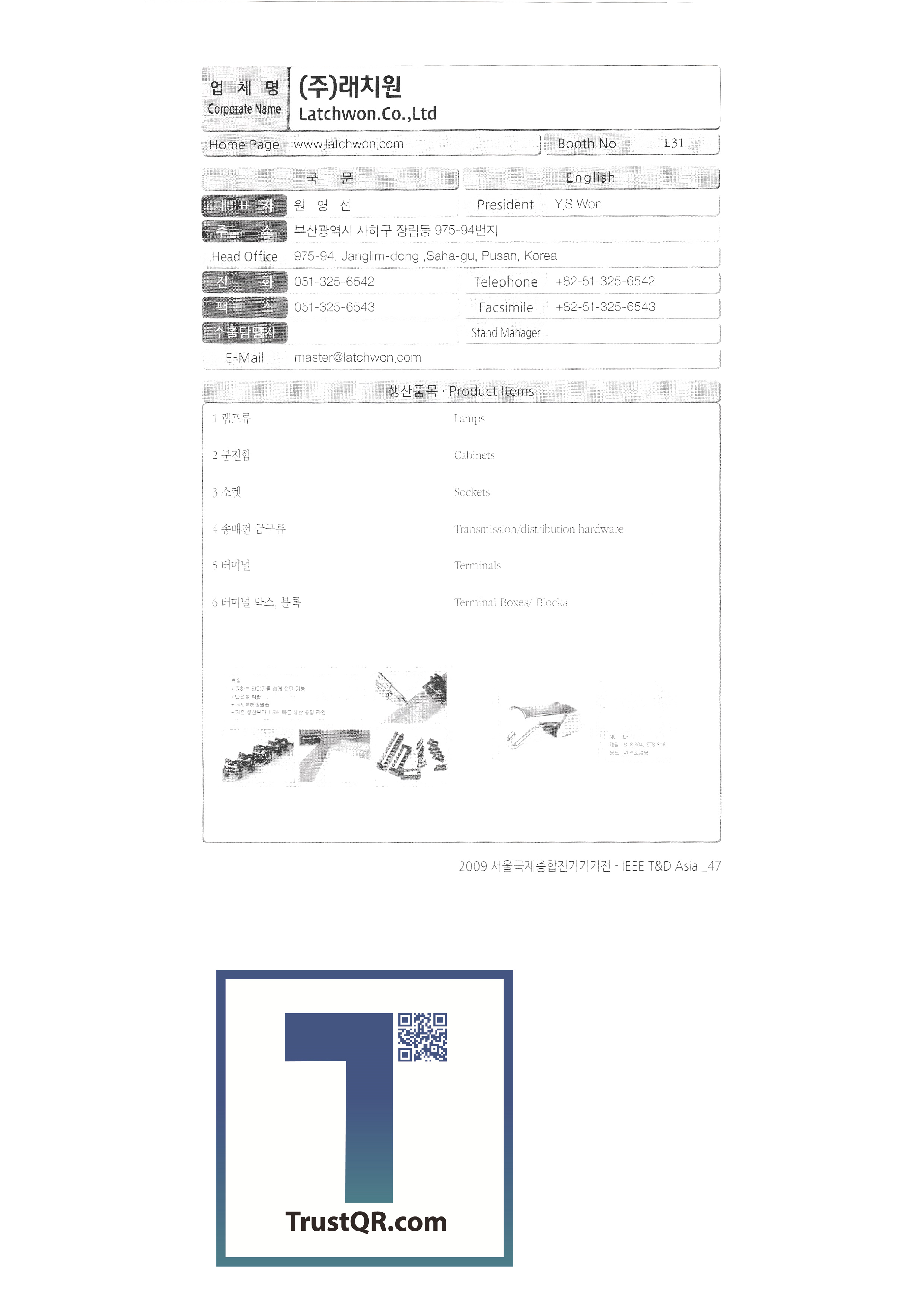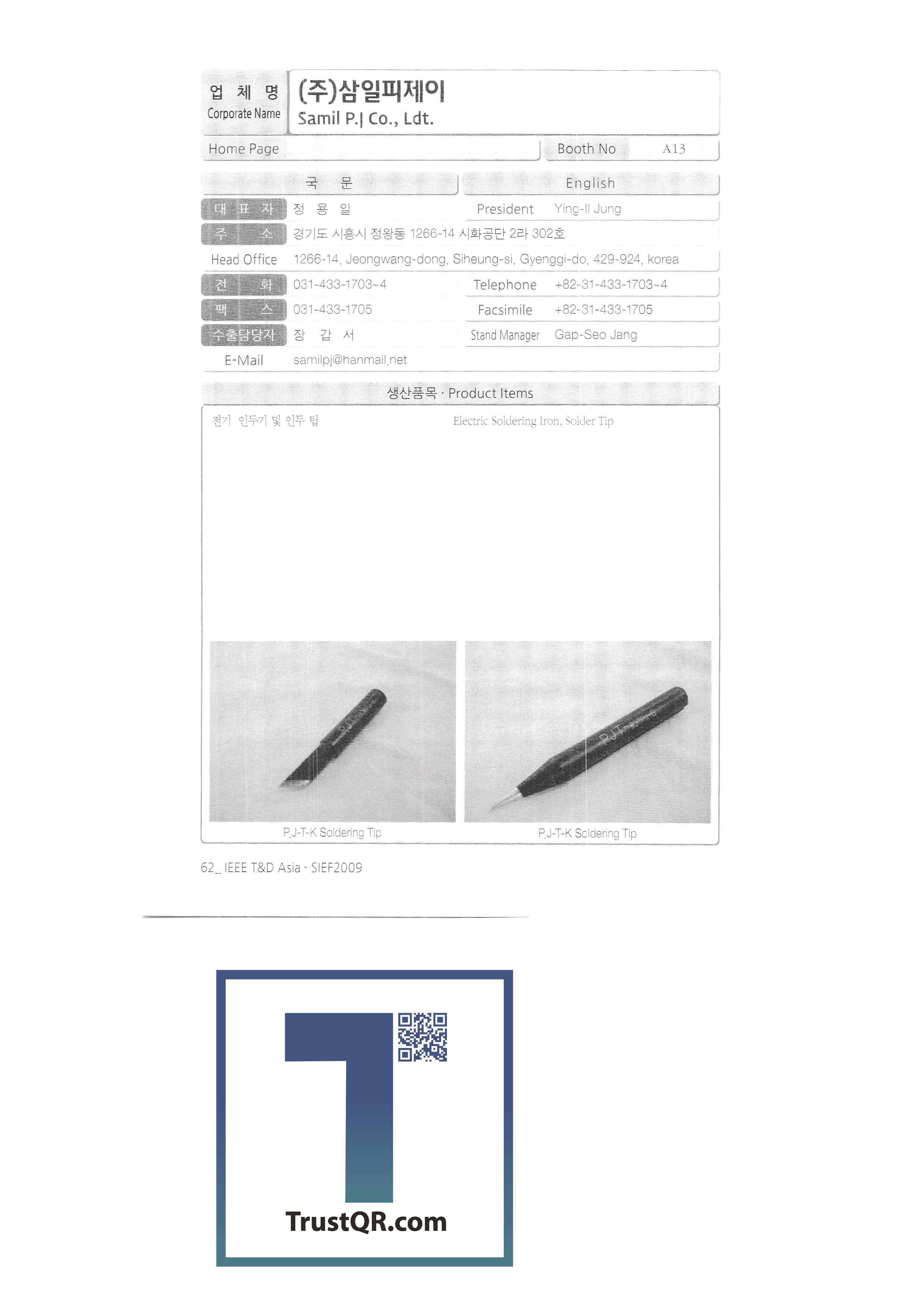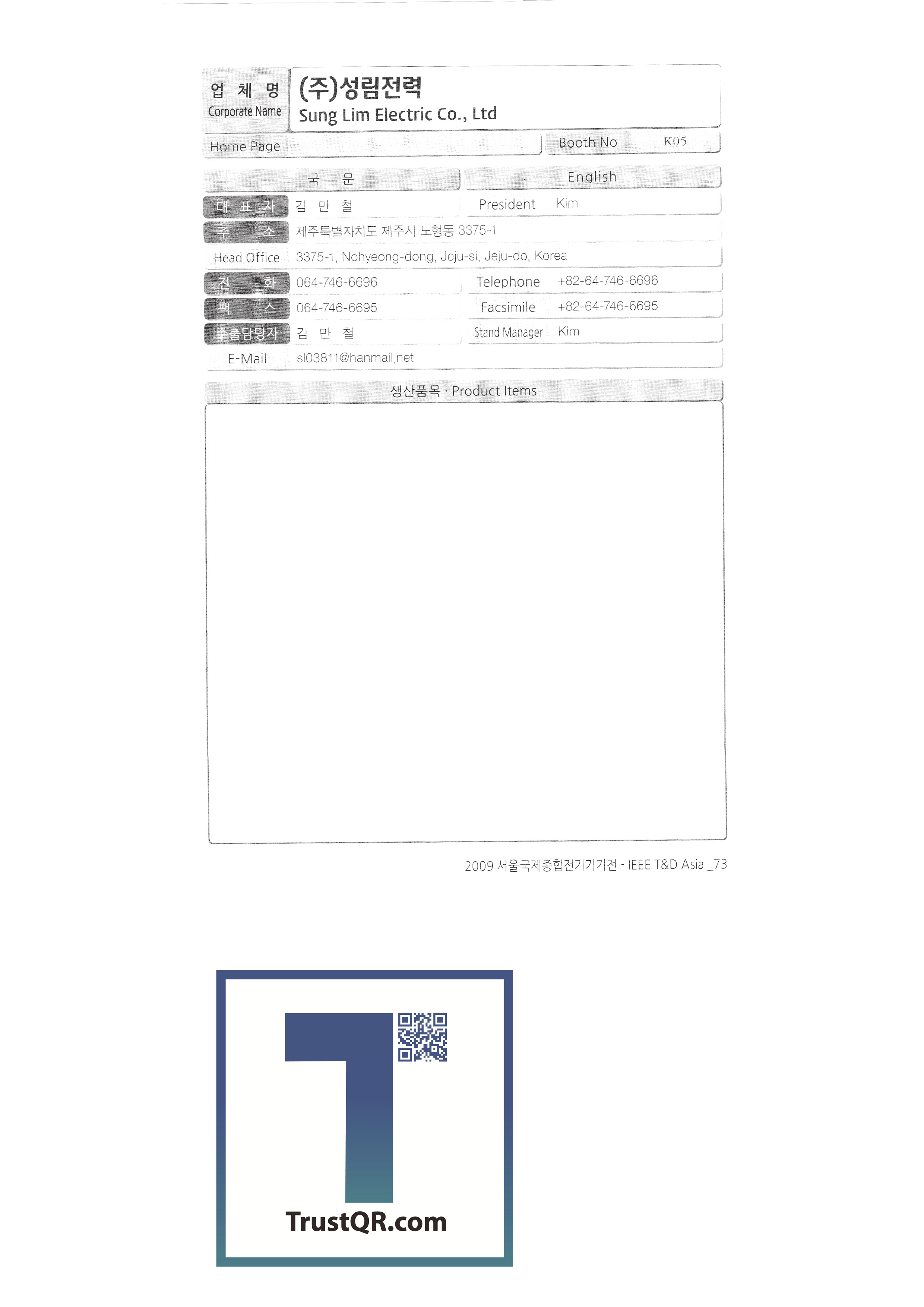 Dongil Electric Doowon Electric Wire Co., Ltd. D.SYS Co., Ltd. Digital Power Co., Ltd. DTR Latch One Co., Ltd. Reform Tech Co., Ltd. Manu Crystal Bando MPS Co., Ltd. Bando Hoist Crane Bogang Hitech Co., Ltd. Bokuk Electric Industry Co., Ltd. Busan Furniture Co., Ltd. Buksung Bestec BMT Vitzro Tech Sanil Electric Co., Ltd. Samdong Co., Ltd. Samsawon Corporation Samil Transformer Co., Ltd. Samil PJ Samho KIT Samhwa Industry Samsol Information Technology Co., Ltd. Samtra International Sogang ENC Seoyoung Tech Seoul Data System Co., Ltd. Seoul Industrial Systems Co., Ltd. Seoul Power System Seoil Electronics Sunglim Electric Power Co., Ltd. Sungjin Machinery Sungjin Electric Co., Ltd. Sungho Control Equipment Co., Ltd. Segi Biz Senion Co., Ltd. Sejin Instrument Co., Ltd. Showa Electric Cable System Co., Ltd. Swaco Co., Ltd. |