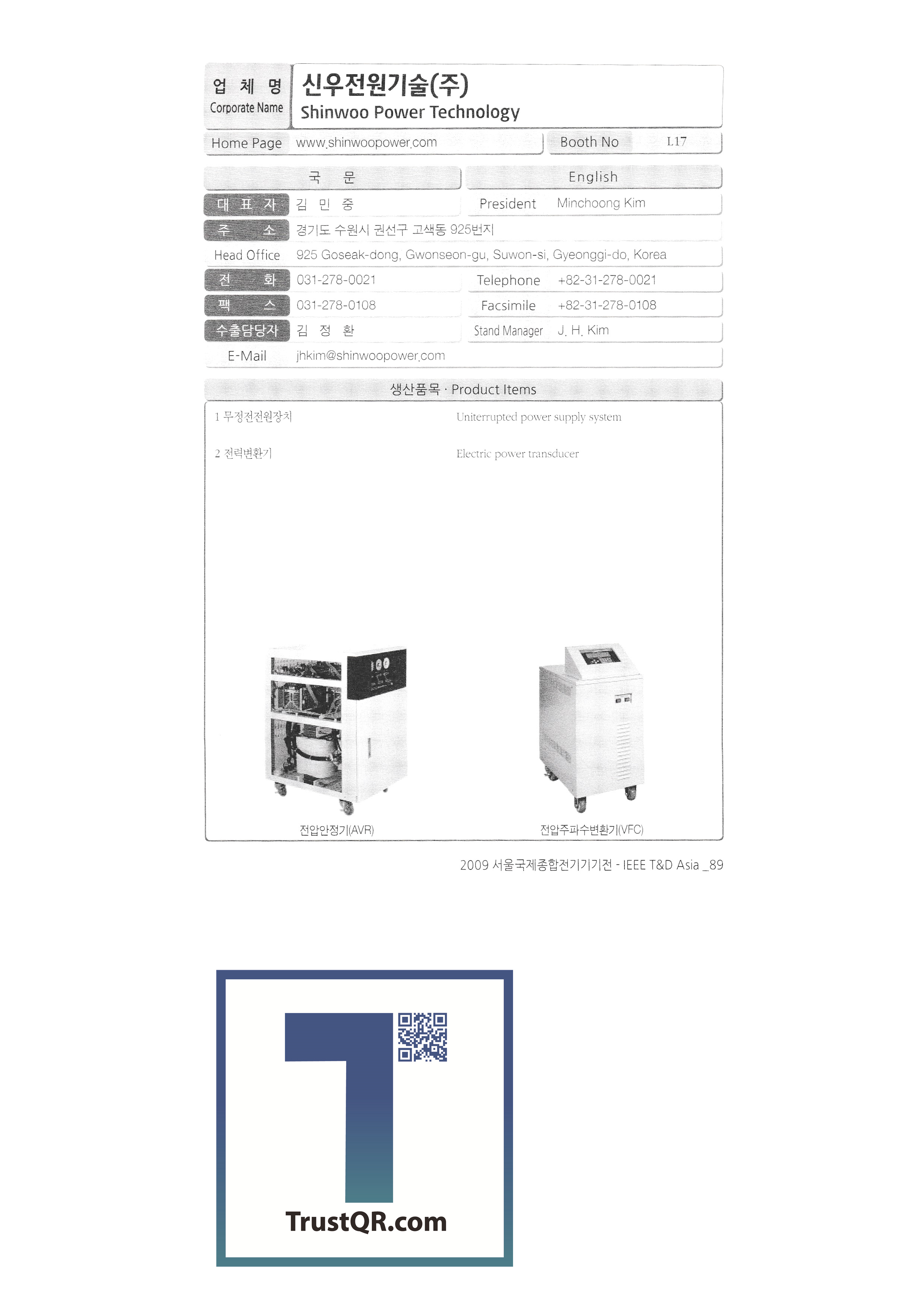 | 스타이십일 스타메딕 ㈜시니어컴 시스템디엔디㈜ 시엔에이전기㈜ 시티이텍 신영중전기주식회사 신우전원기술㈜ 신정우산업㈜ ㈜신호시스템 ㈜신호전력 실리캠 ㈜씨에스티씨 ㈜씨이씨코리아 ㈜에니게이트 ㈜에스 아이 이 에스아이㈜ ㈜에스에스테크널러지 ㈜ABB 코리아 ㈜엔바이오니아 ㈜엔컴 LS산전㈜ ㈜영진 영창실리콘㈜ 영화산업전기㈜ ㈜오로라테크놀로지 오성기전㈜ 용성전기㈜ ㈜우강산업전기 ㈜우진정공 ㈜운영 원리솔루션㈜ 월간계장기술 ㈜위드솔루션 유림티에스㈜ ㈜유성계전 ㈜이송이엠씨 ㈜이온 ㈜이즈미상사 이지테크 |