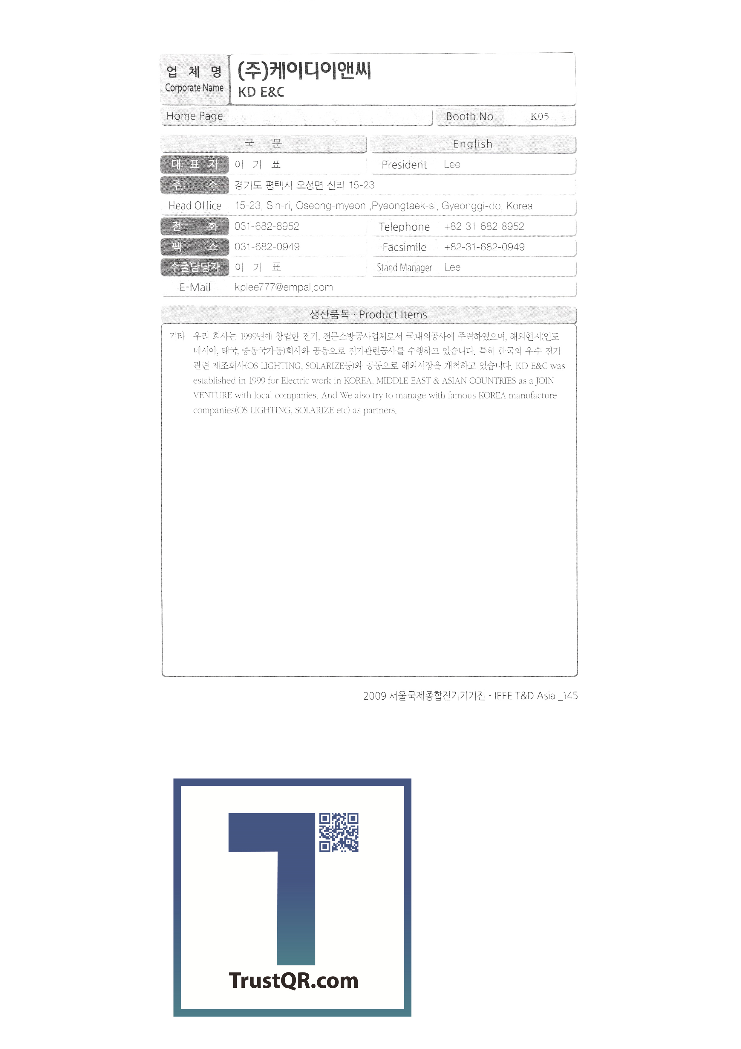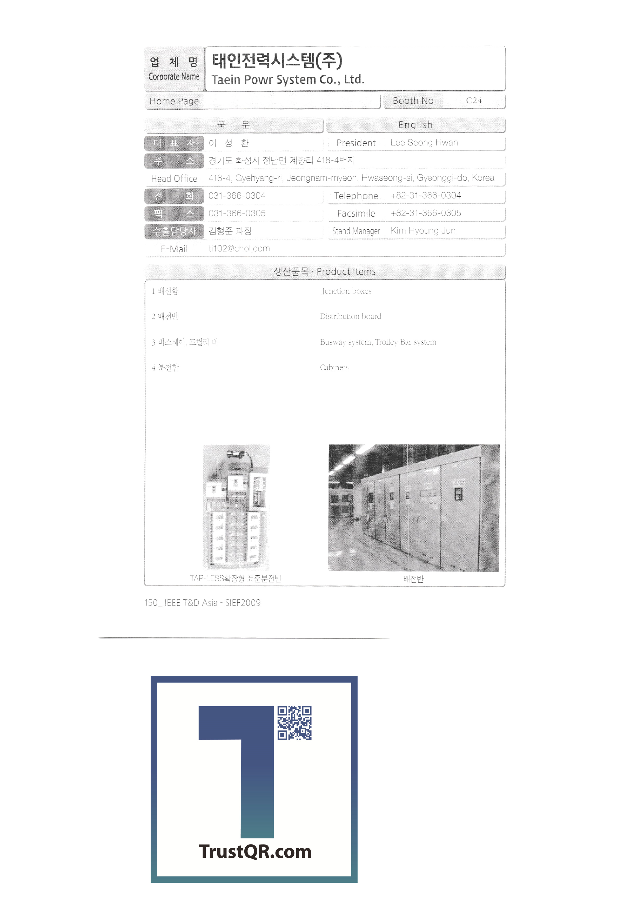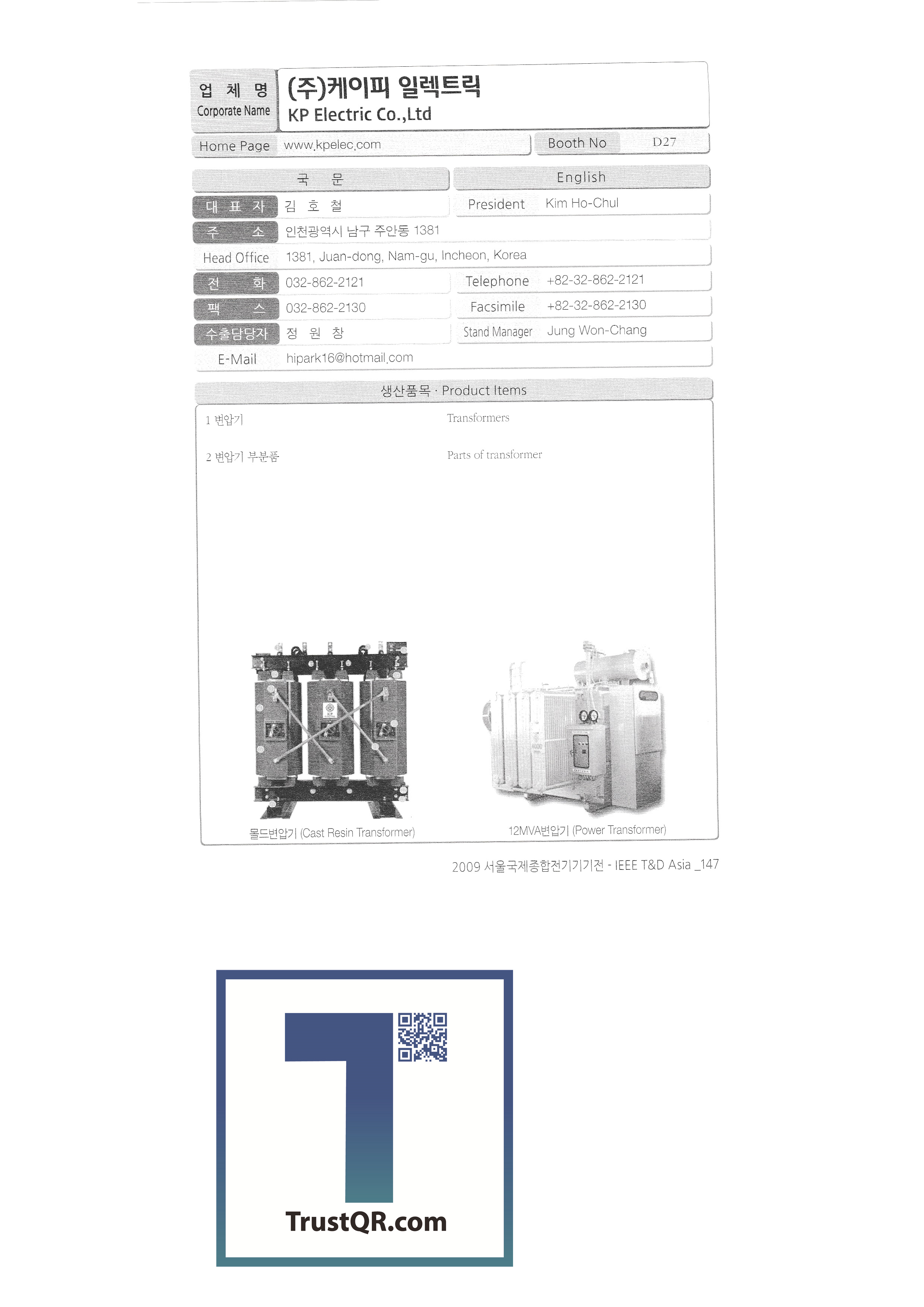 Icheon Engineering Co., Ltd. Interpairs Inc. Intech FA Electric Korea Iljin Electric Co., Ltd. Financial Information Co., Ltd. National Machinery Federation Electricity News Electric Information Plaza Power Quality Technology Co., Ltd. Jeonoh Electric Jeonwoo Cultural History Information industry Zenithtech Co., Ltd. Jeryong Industry Co., Ltd. J&D Electronics Co., Ltd. Juwon Co., Ltd. Juha Co., Ltd. Joongwon Electric Co., Ltd. GPTI Corporation Hi-tech Co., Ltd. Keystone Enterprise Co., Ltd. KESCO C&T KD E&C KT Precision Co., Ltd. KP Electric Taekyung Electric Industry Co., Ltd. Taekwang E&C Taein Electric Power System Co., Ltd. Taehwa ENG Tactico Co., Ltd. TW Tech Power Max Co., Ltd. Weekday Prime Solution Procom System Co., Ltd. Planet I&T Phoenix Technics PNC Tech Co., Ltd. PNS |