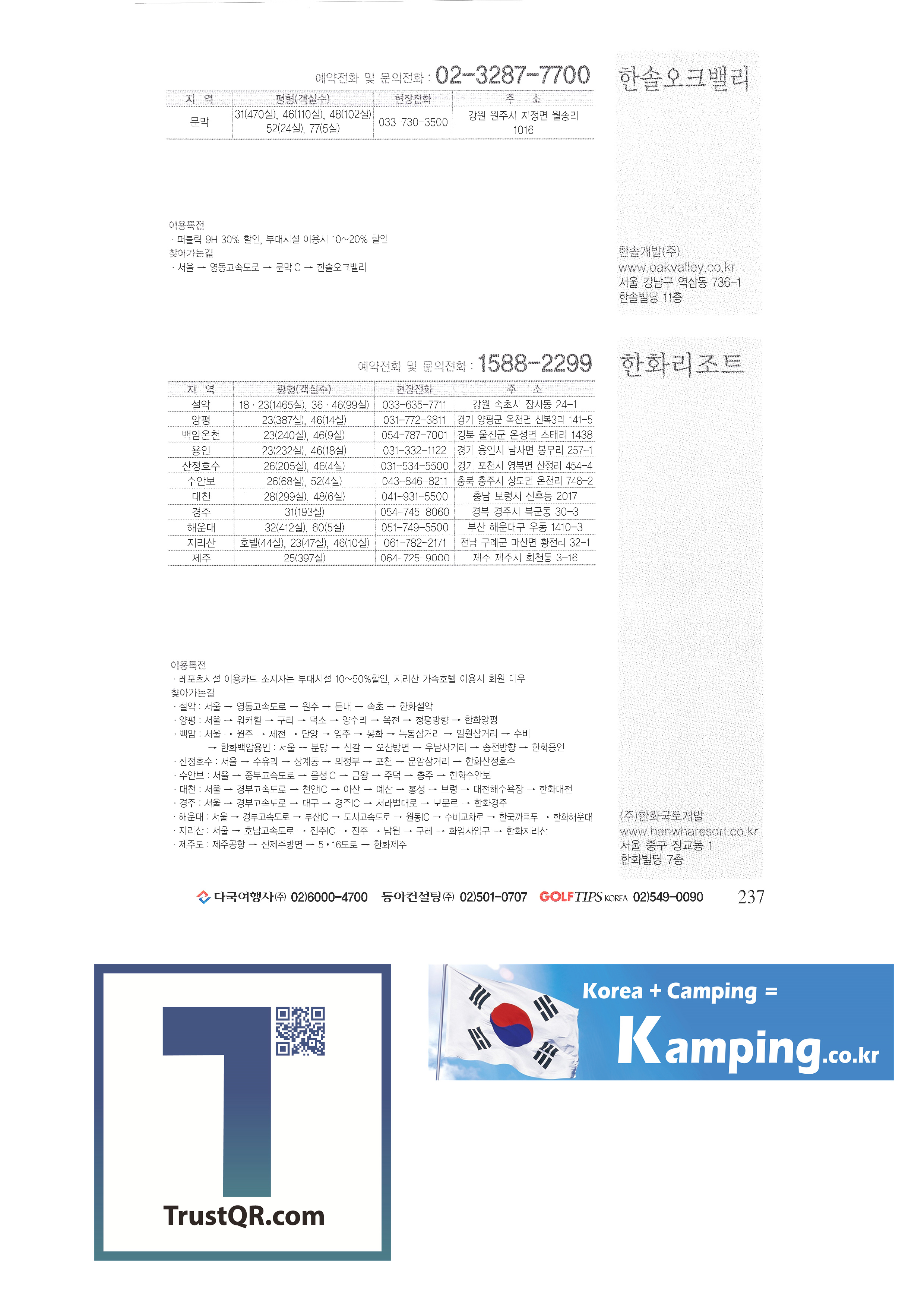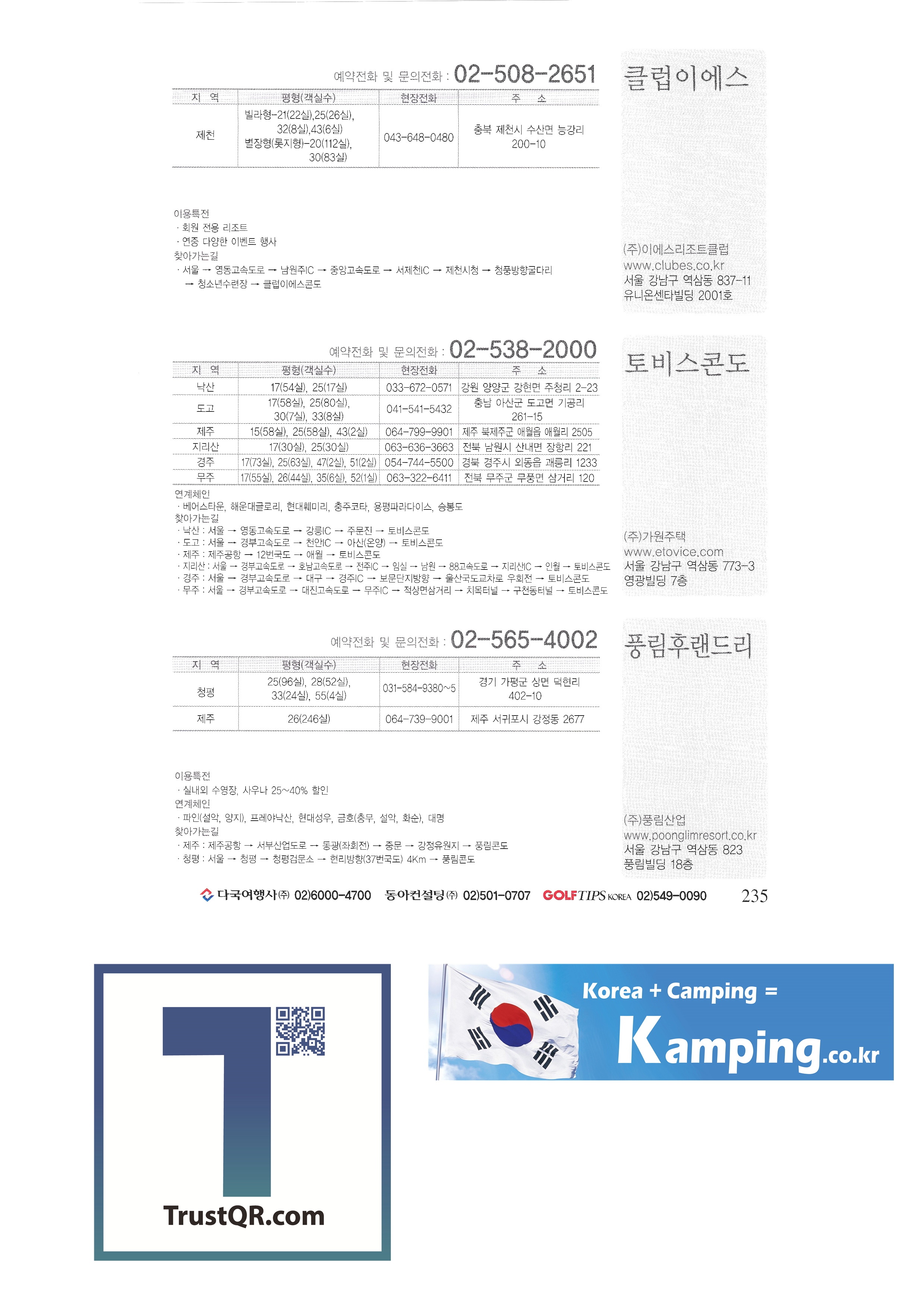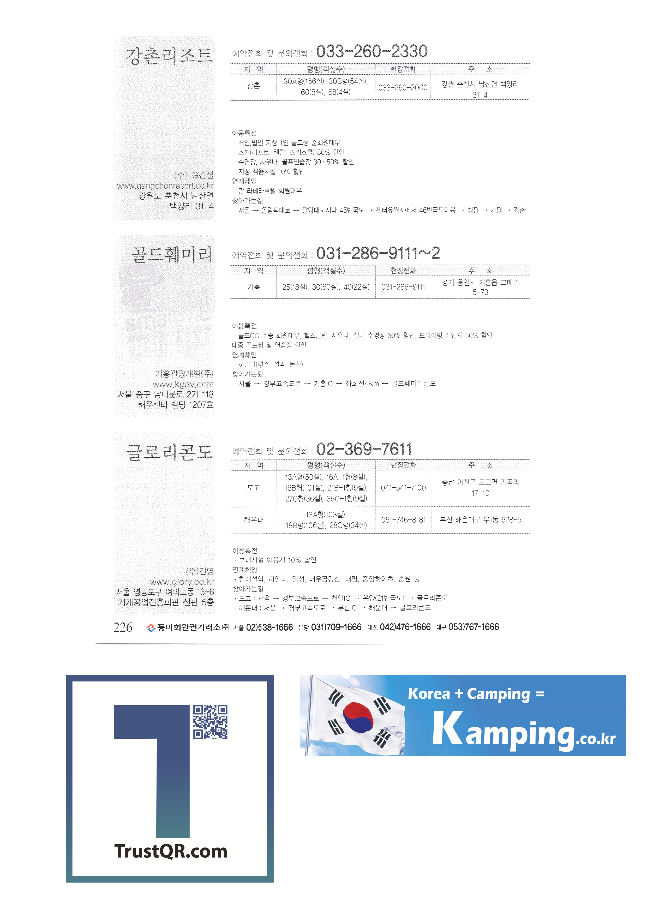 | 강촌리조트 대명비발디파크 무주리조트 베어스타운 사조리조트 서울리조트 스타일리조트 알프스리조트 양지파인 용평리조트 지산포레스트 현대성우 휘닉스파크 강촌리조트 골드훼미리 글로리콘도 금강산콘도 금호리조트 네츄럴콘도 대명콘도 동양콘도 두산리조트 무주리조트 베어스타운리조트 사조리조트 송원리조트 스위스콘도 신세계리조트 알프스리조트 양지파인리조트 연호 영랑호리조트 오션캐슬리조트 용평리조트 웰컴콘도 일성콘도 지산 포레스트리조트 코레스코 코타 클럽이에스 토비스콘도 풍림후랜드리 프레야낙산리조텔 하일라콘도 한국콘도 한솔오크밸리 한화리조트 해배치리조트 현대설악 현대성우리조트 현대훼미리타운 효산콘도 휘닉스파크 |