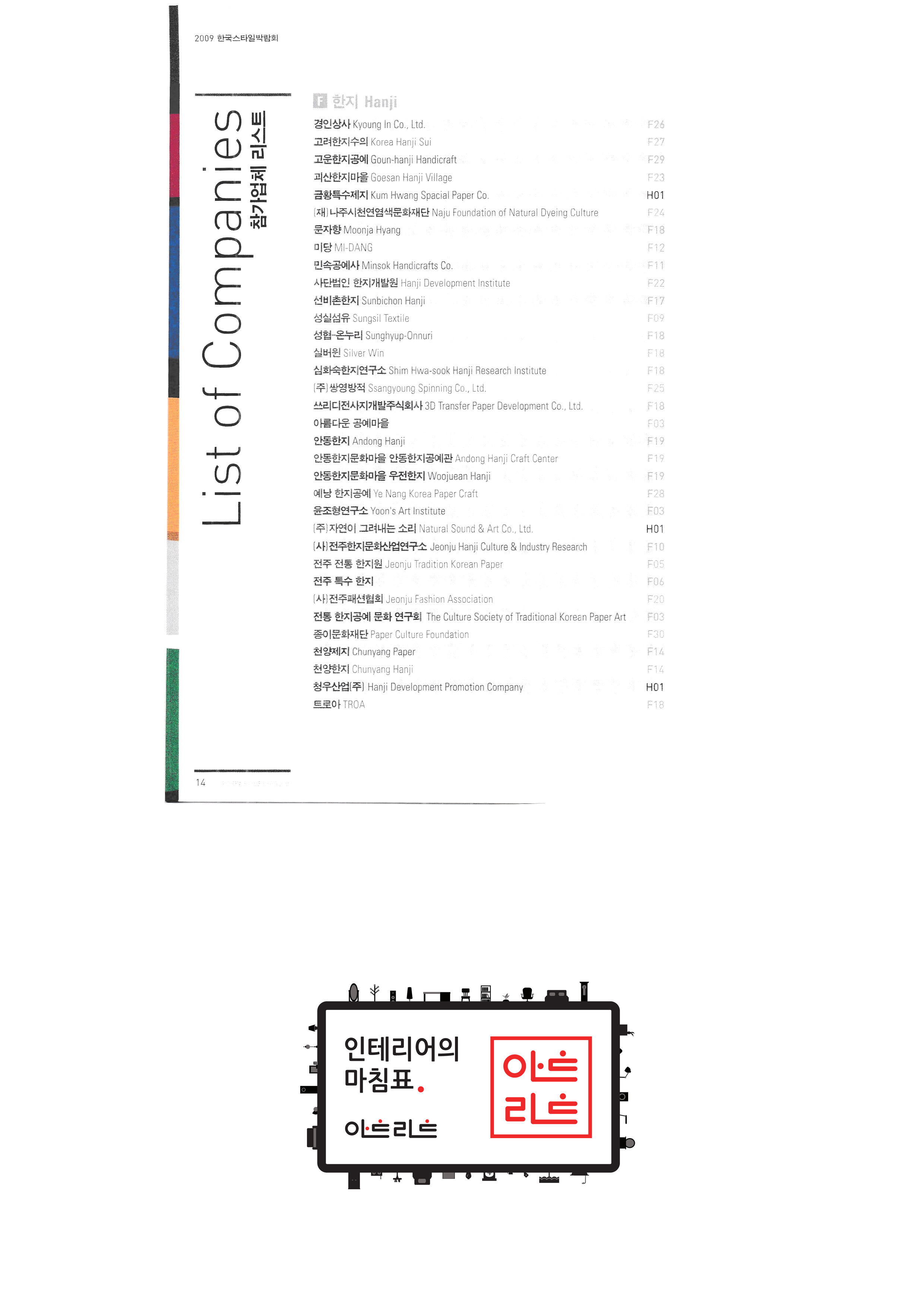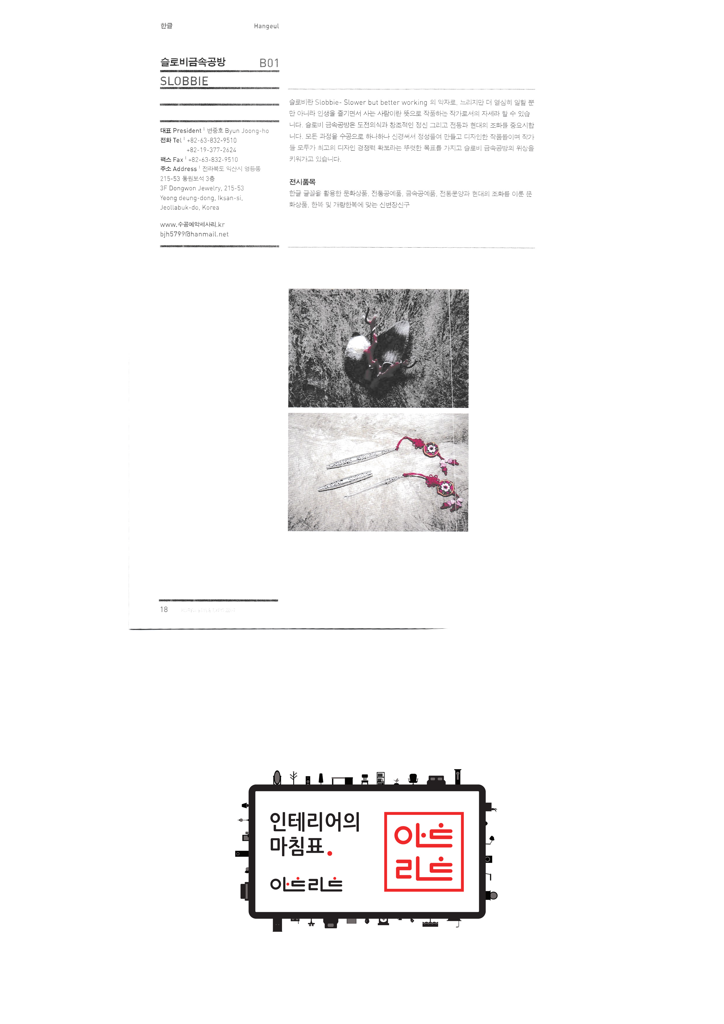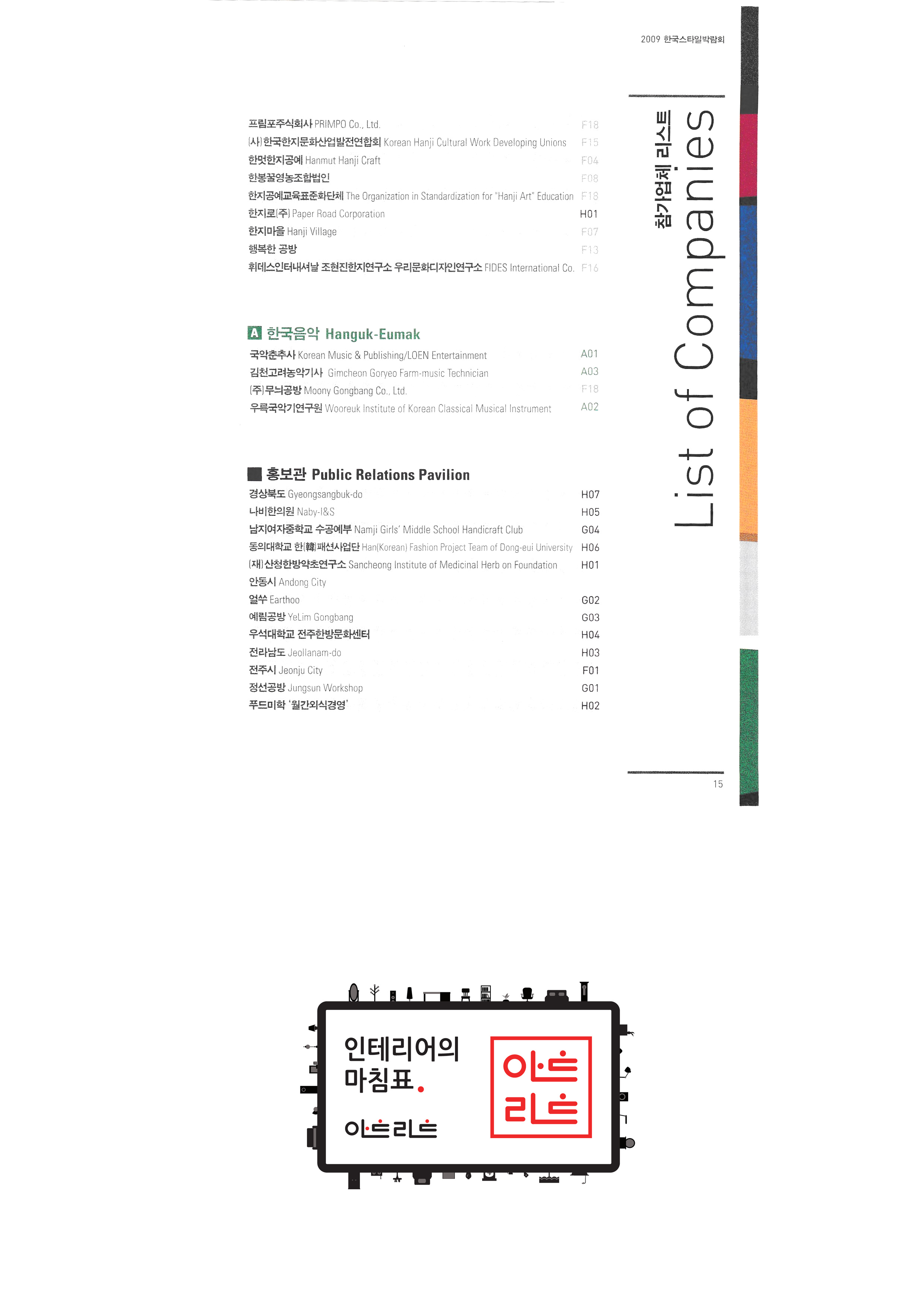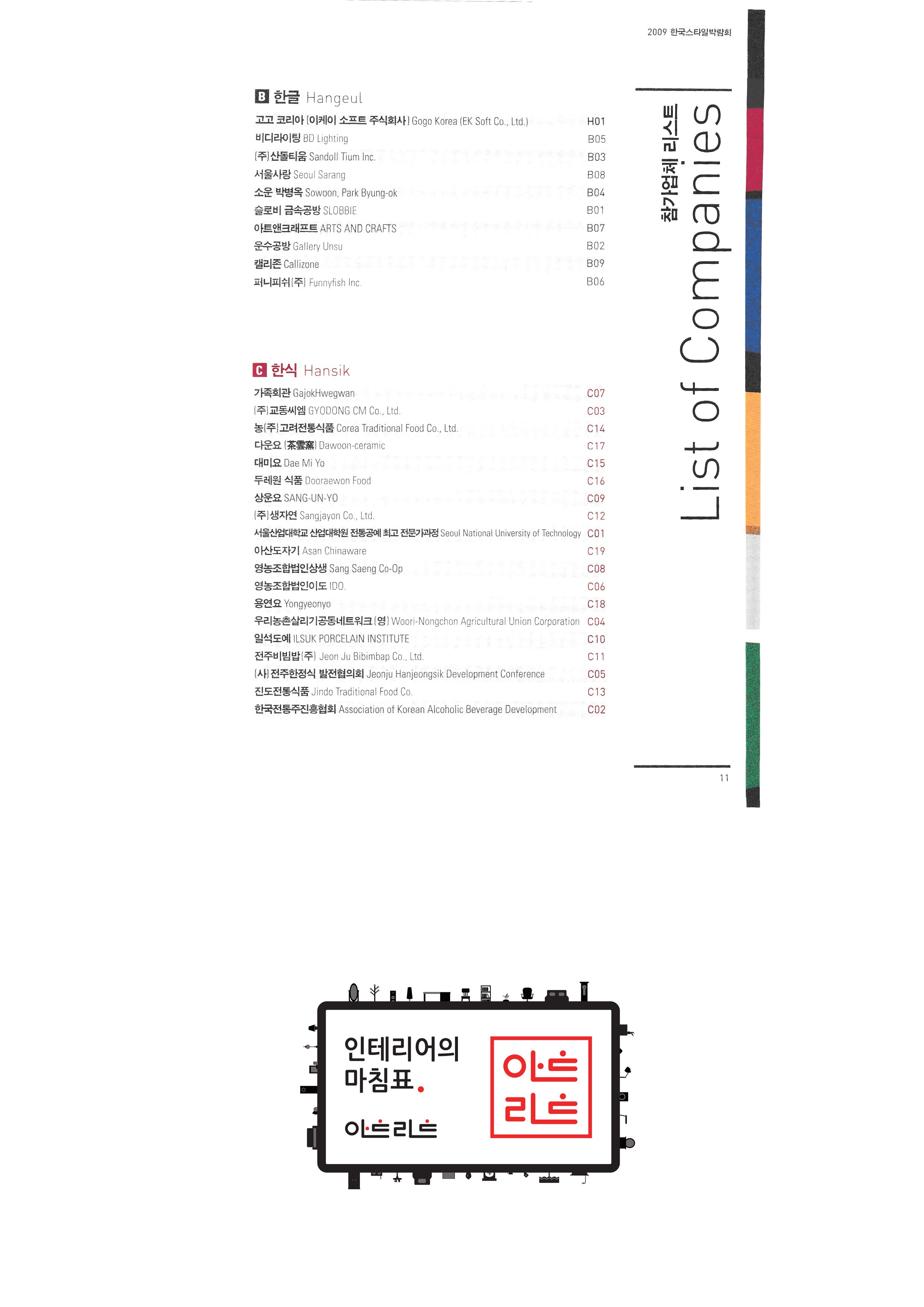| 슬로비금속공방 운수공방 ㈜산돌티움 소운 박병옥 비디라이팅 퍼니피쉬㈜ 아트앤크래프트 서울사랑 캘리존 "고고코리아 (이케이 소프트 주식회사)" 서울산업대학교 산업대학원 한국전통주진흥협회 ㈜교동씨엠 "우리농촌살리기 공동네트워크(영)" (사)전주한정식 발전협의회 영농조합법인이도 가족회관 영농조합법인상생 상운요 일석도예 |