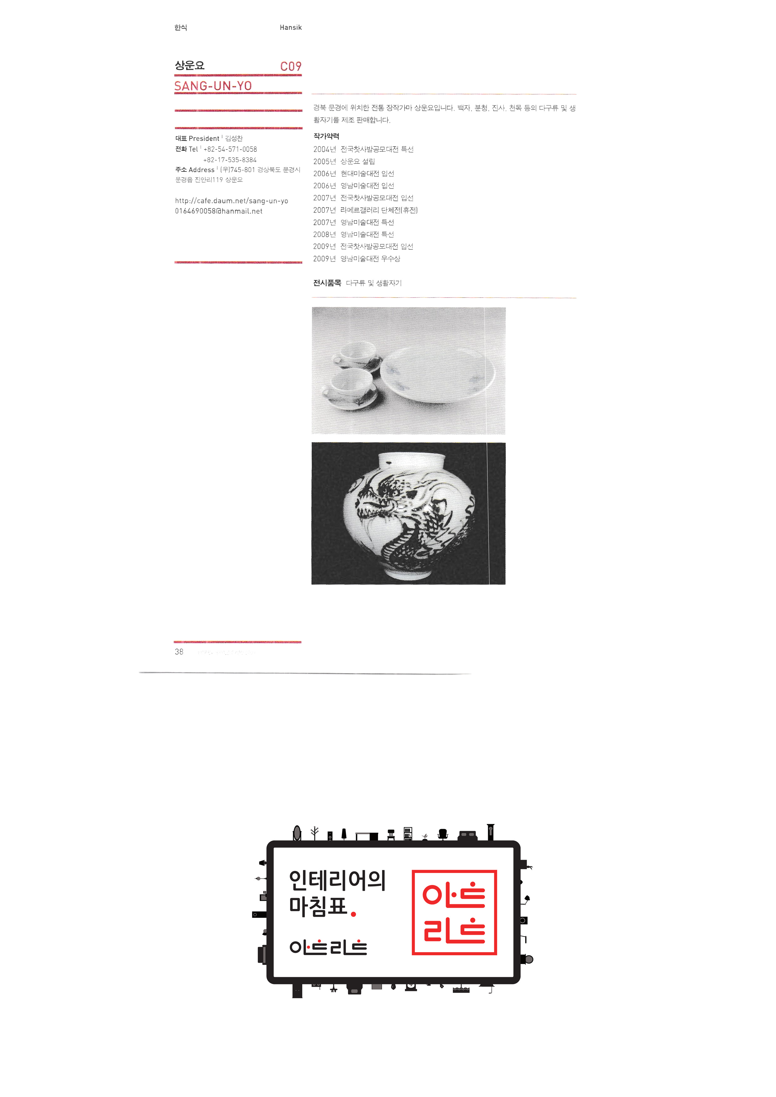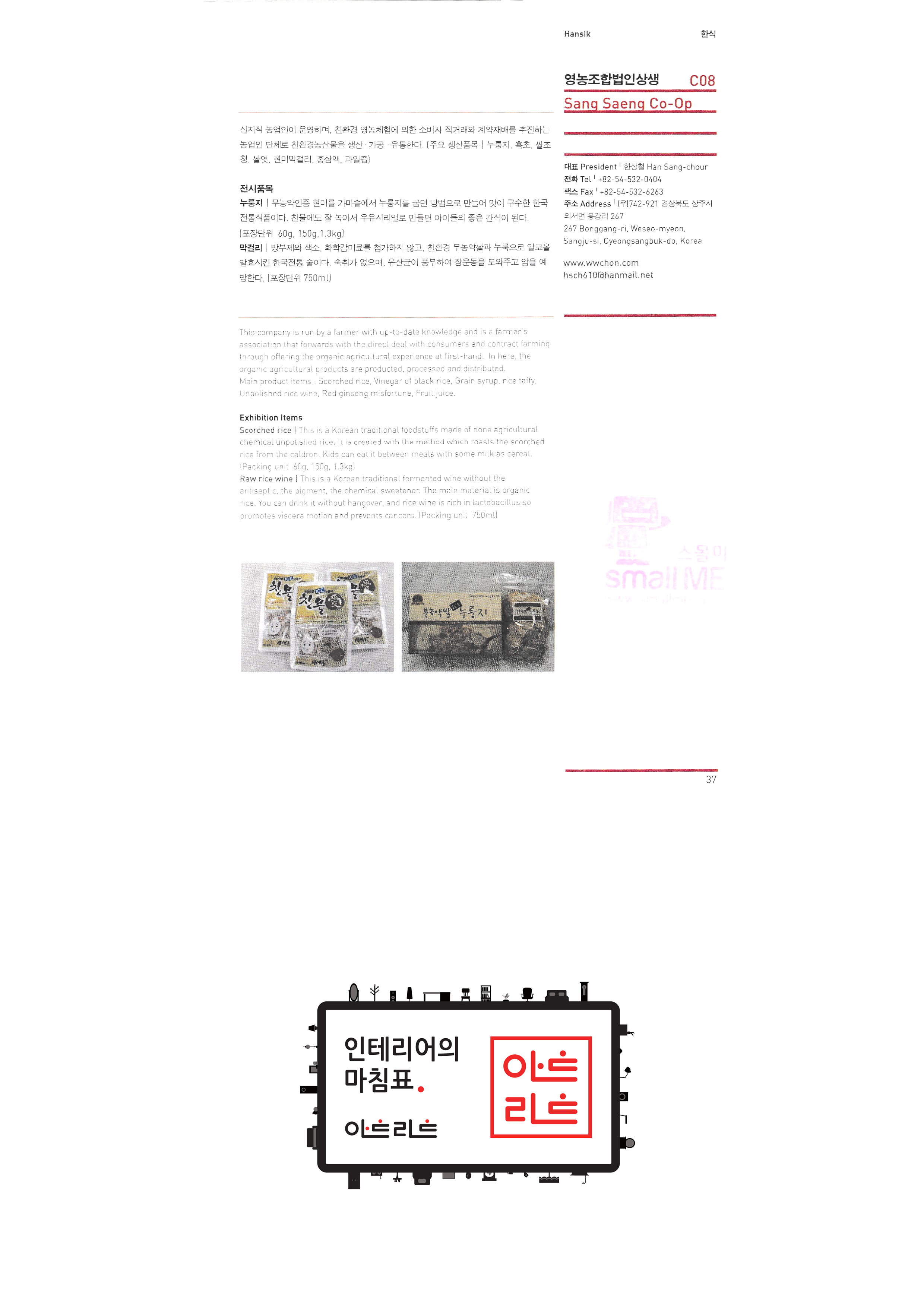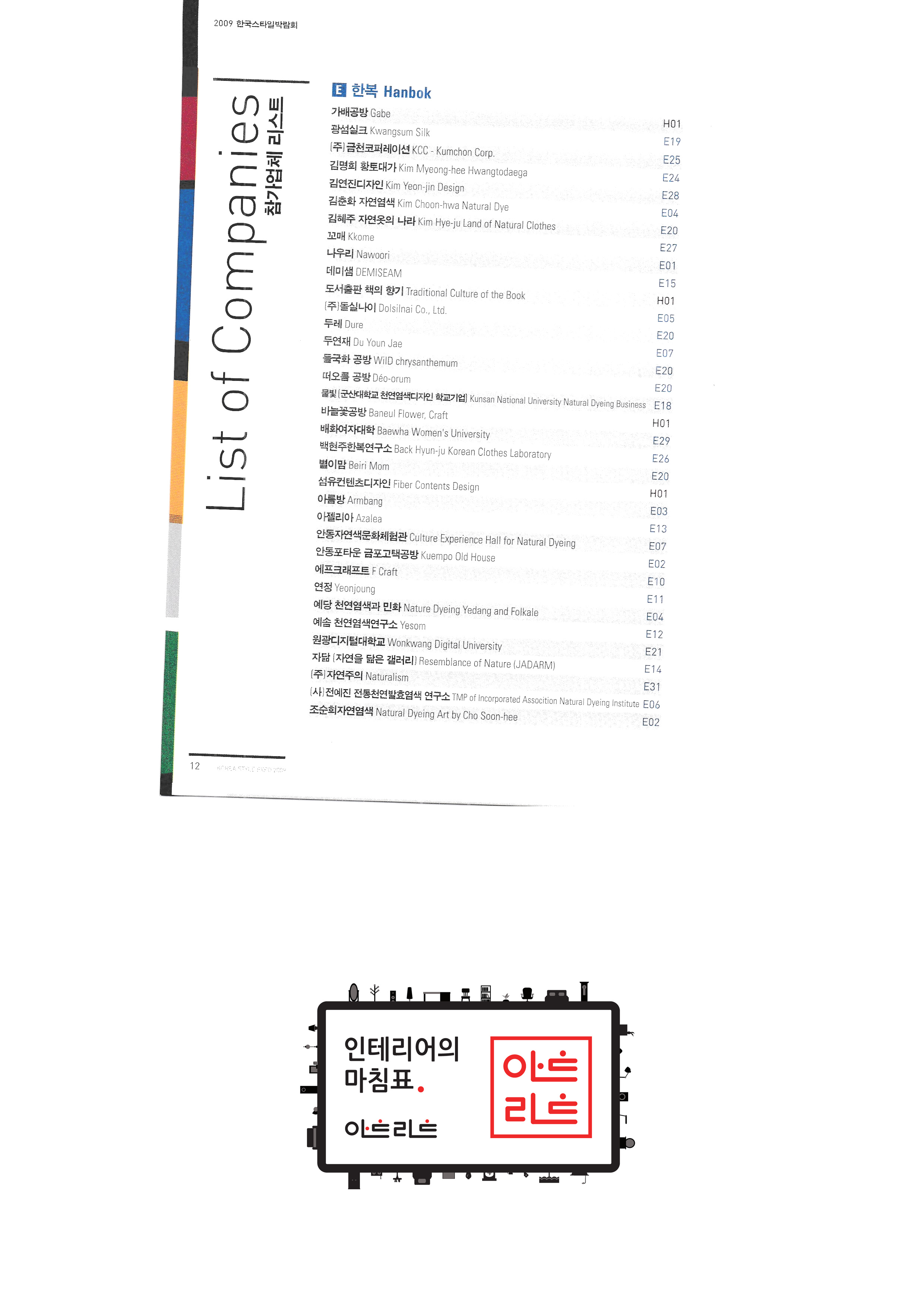 | 슬로비금속공방 운수공방 ㈜산돌티움 소운 박병옥 비디라이팅 퍼니피쉬㈜ 아트앤크래프트 서울사랑 캘리존 "고고코리아 (이케이 소프트 주식회사)" 서울산업대학교 산업대학원 한국전통주진흥협회 ㈜교동씨엠 "우리농촌살리기 공동네트워크(영)" (사)전주한정식 발전협의회 영농조합법인이도 가족회관 영농조합법인상생 상운요 일석도예 |