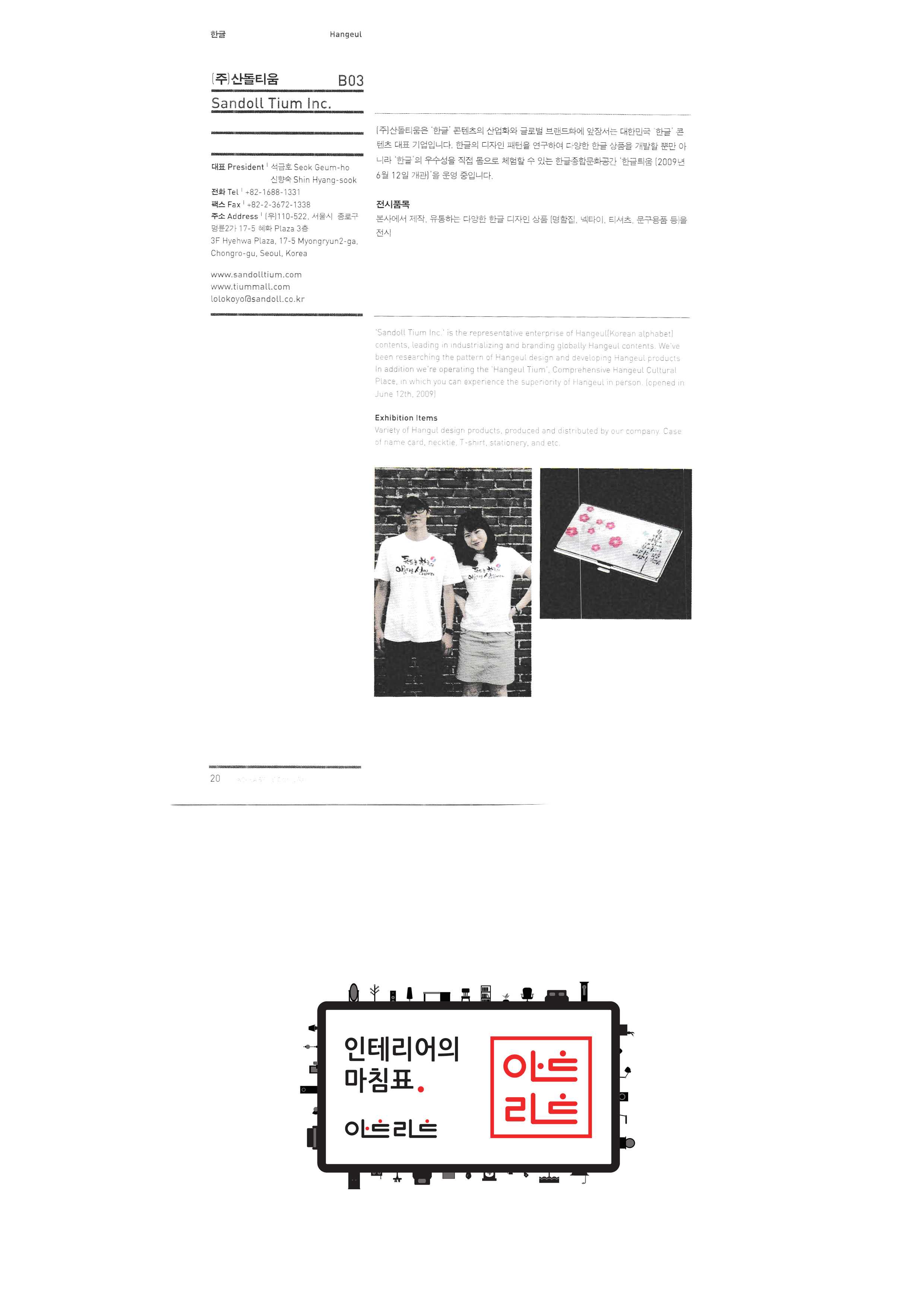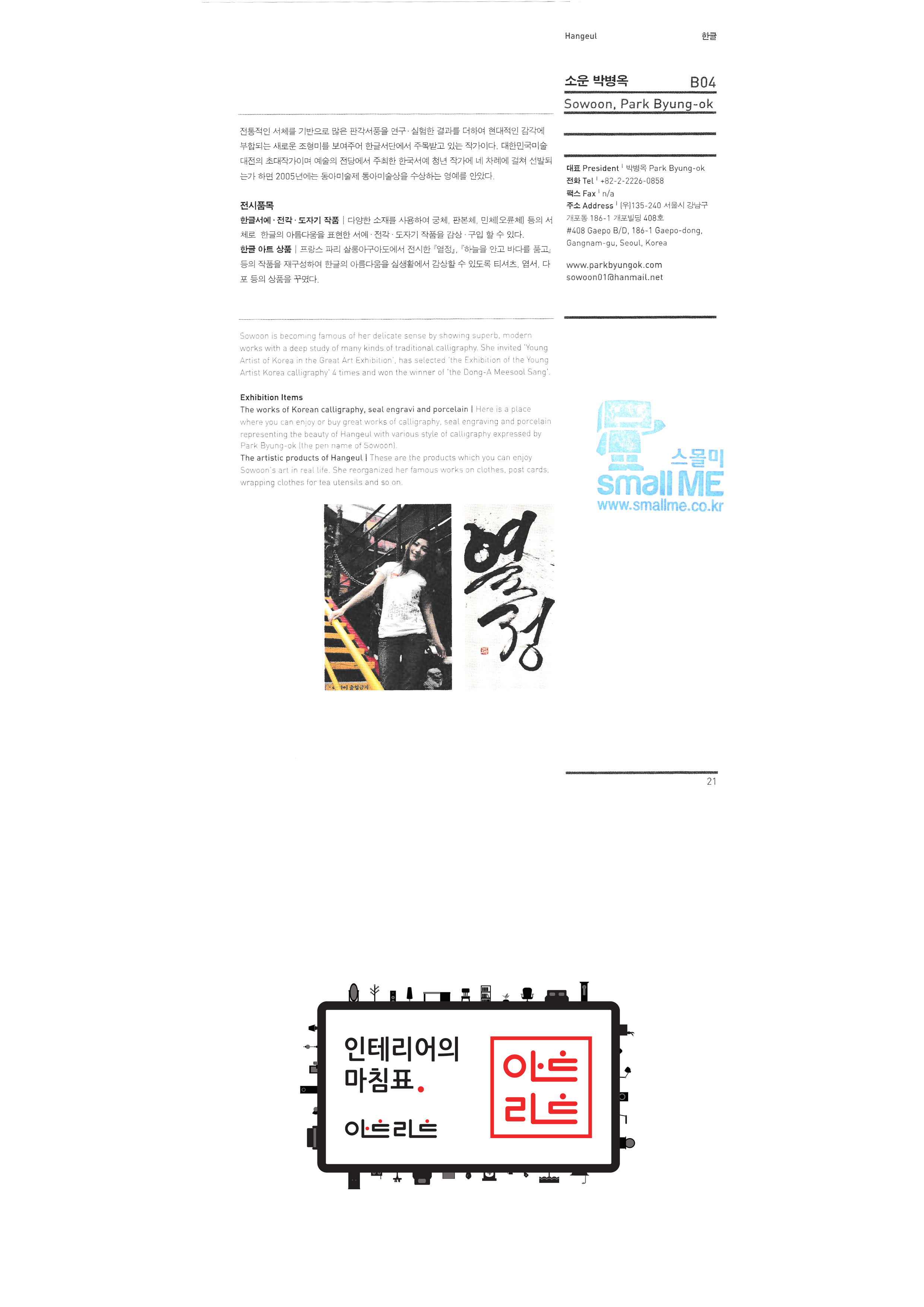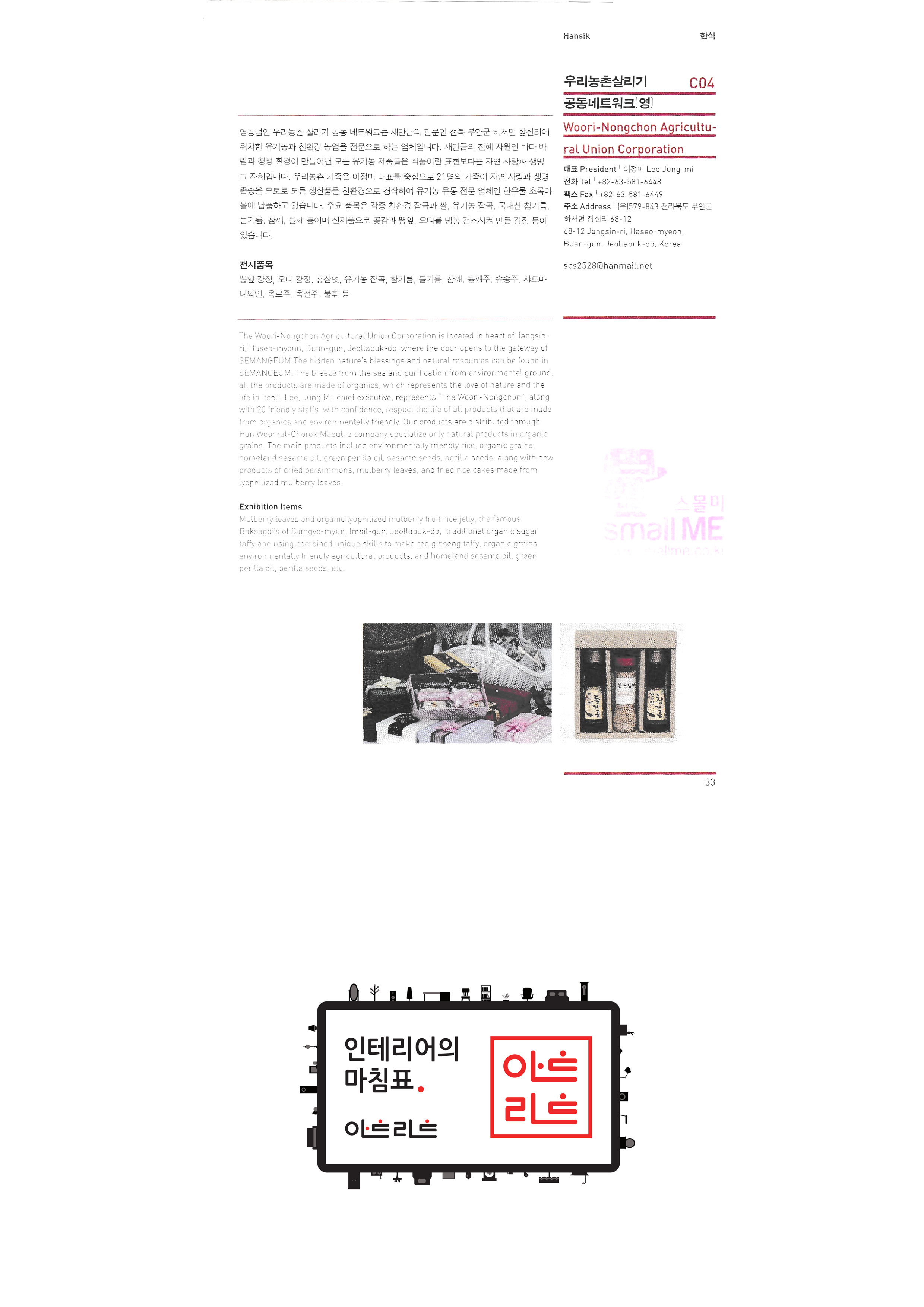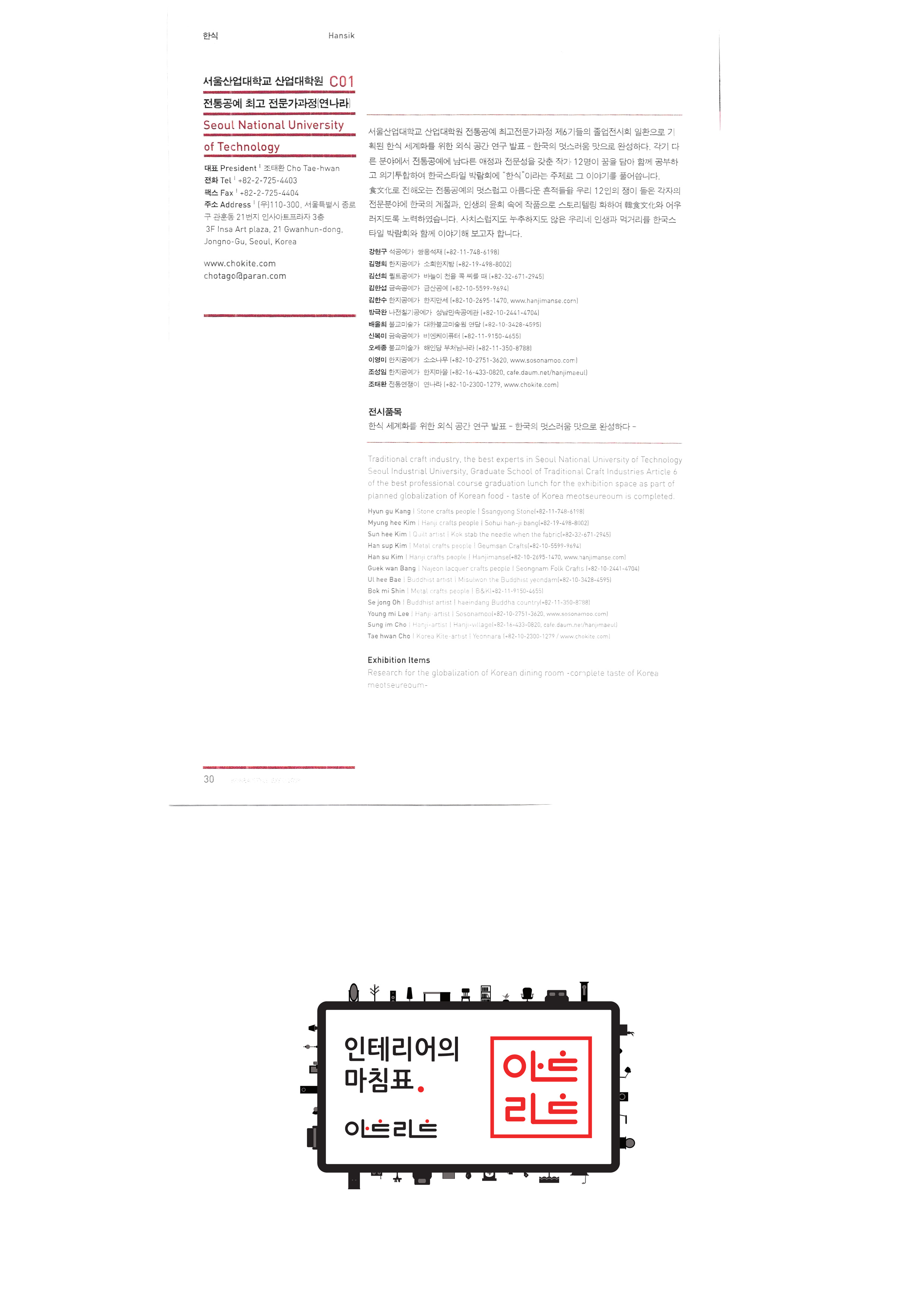 | 슬로비금속공방 운수공방 ㈜산돌티움 소운 박병옥 비디라이팅 퍼니피쉬㈜ 아트앤크래프트 서울사랑 캘리존 "고고코리아 (이케이 소프트 주식회사)" 서울산업대학교 산업대학원 한국전통주진흥협회 ㈜교동씨엠 "우리농촌살리기 공동네트워크(영)" (사)전주한정식 발전협의회 영농조합법인이도 가족회관 영농조합법인상생 상운요 일석도예 |