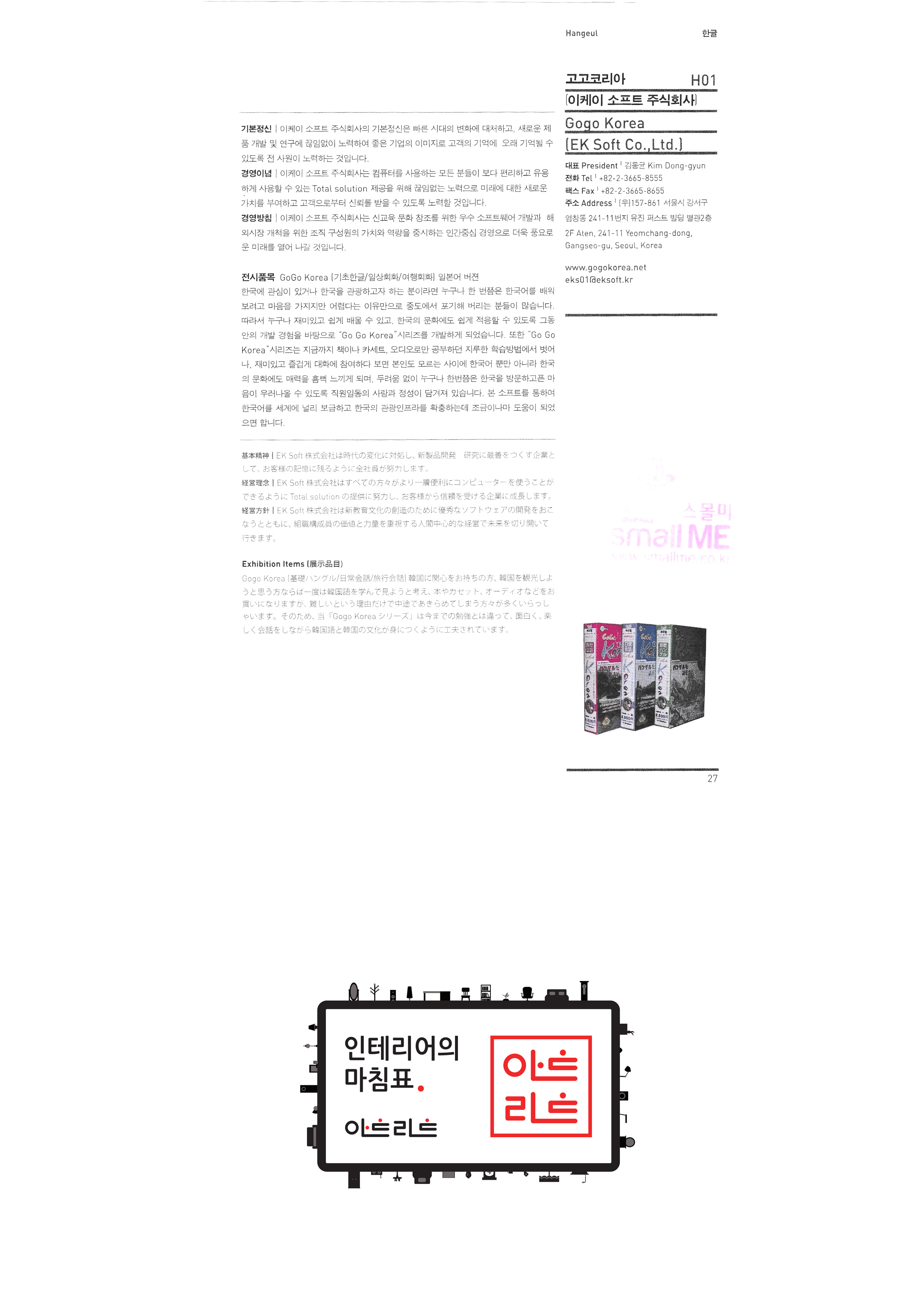 | Slobi Metal Workshop การประชุมเชิงปฏิบัติการการขนส่ง บจก. แซนดอลเทียม Soun Park Byung-ok แสงวิดีโอ ตลกฟิช จำกัด ศิลปะและงานฝีมือ โซลรัก คาลิซอน "โกโกเกาหลี (บจก. เคซอฟท์) " บัณฑิตวิทยาลัยอุตสาหกรรมเทคโนโลยีแห่งชาติโซล สมาคมส่งเสริมสุราดั้งเดิมของเกาหลี Gyodong ซม “ กอบกู้หมู่บ้านในชนบทของเรา เครือข่ายร่วม (ภาษาอังกฤษ) " สภาพัฒนาอาหารเกาหลีชอนจู Farming Association Corporation Ido ห้องโถงครอบครัว Win-Win Growth กับ Farming Association Sangwoonyo เครื่องปั้นดินเผาหิน |