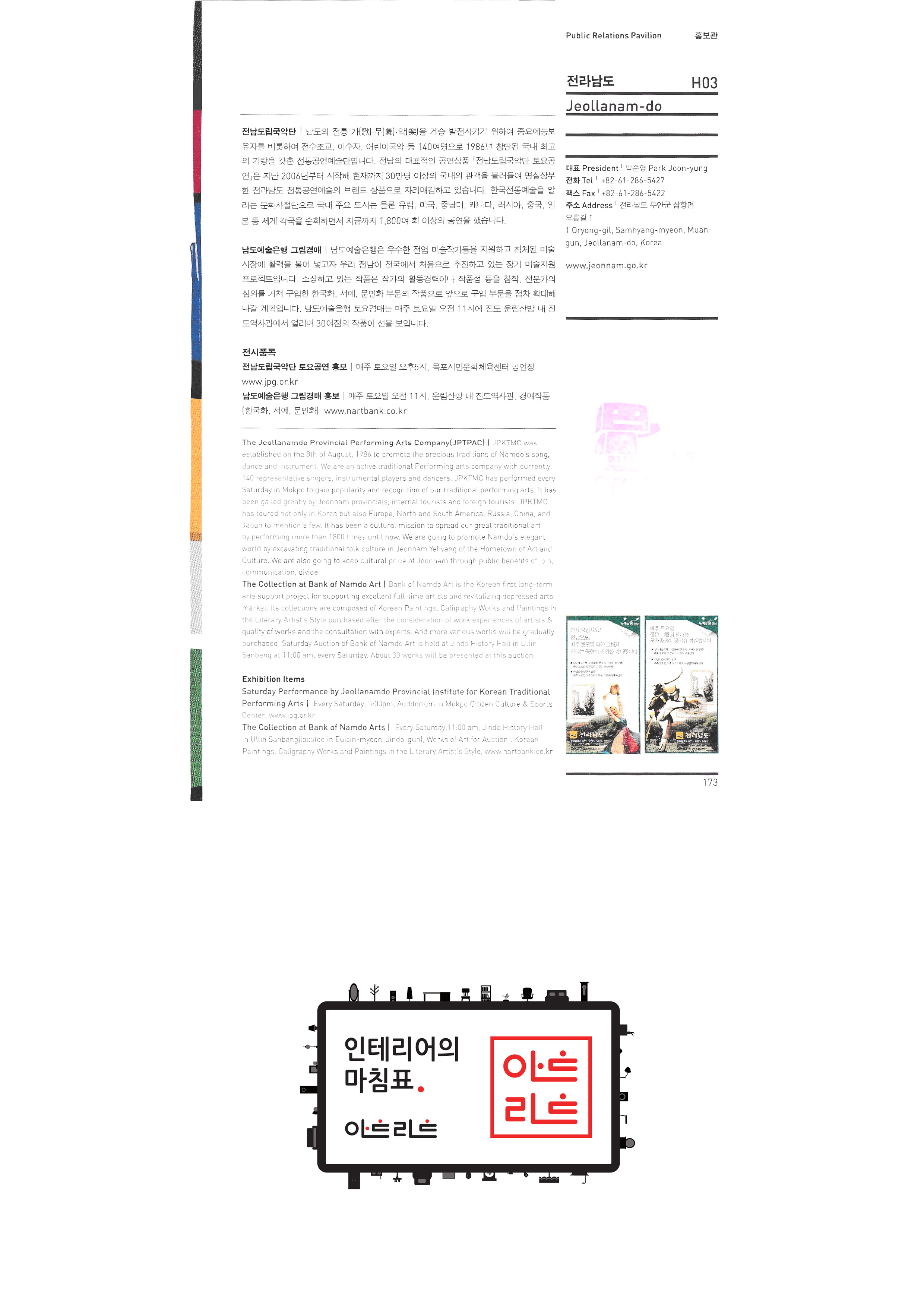 ดนตรีพื้นเมืองของเกาหลี สถาบันวิจัยเครื่องดนตรีดั้งเดิมอูรุก เครื่องมือการเกษตร Gimcheon Goryeo แพทเทิร์นเวิร์คช็อปบจก. จอนจู Jeongseon Workshop เออซู Yerim Workshop แผนกหัตถกรรมโรงเรียนมัธยมหญิงนัมจิ สถาบันวิจัยสมุนไพร Sancheong Oriental สุนทรียภาพด้านอาหาร 'การจัดการร้านอาหารรายเดือน' Jeollanam-do Woosuk University Jeonju Oriental Medicine Cultural Center นาบีโอเรียนทัลคลินิก "Dongeui University Han (เกาหลี) กองแฟชั่น " Gyeongsangbuk-do เมืองอันดง |
