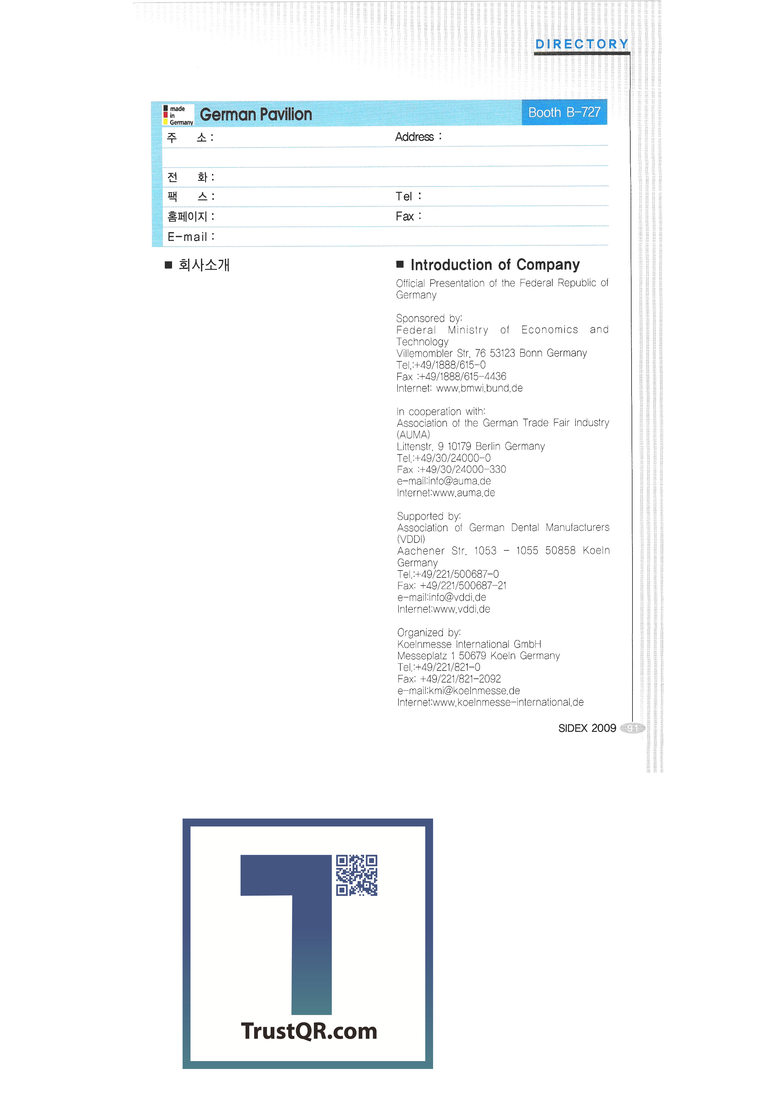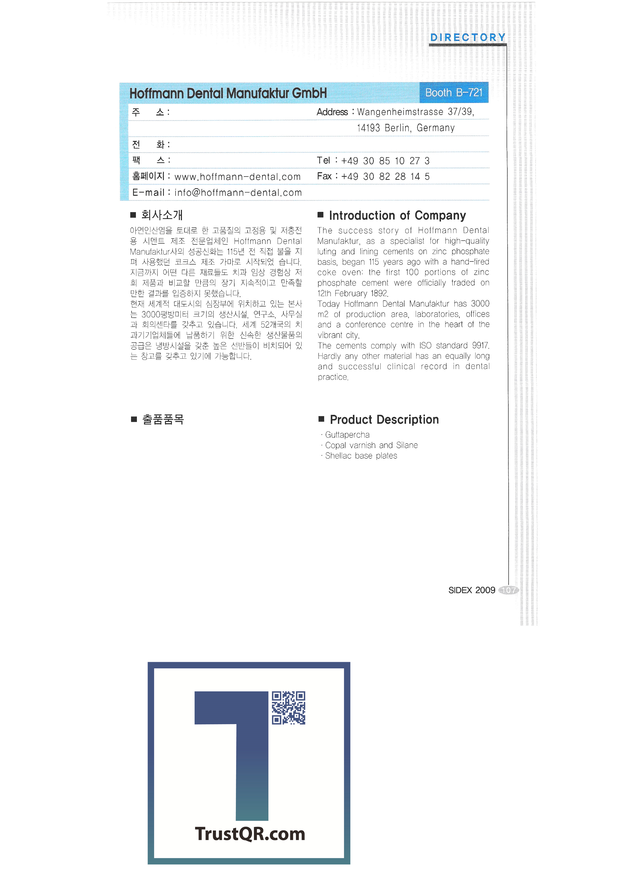 ㈜이엠디 Erkodent Erich Kopp GmbH 이쎈코리아㈜ EXPORDENTAL ITALIA FDI홍보부스 필스메디칼 에프케이지 FOMA BOHEMIA Ltd. 후론티어치과산업 ㈜지죤시스텍 지-씨코리아 ㈜제노레이 German Pavilion ㈜굿닥터스 ㈜하덴스 ㈜한림덴텍 Hager & Werken GmbH&Co.KG 한대케미칼 한미실업 한일치과산업 ㈜한진덴탈 ㈜한진디지엑스 한스바이오메드㈜ 보스워스 Hawo GmbH 희성코퍼레이션 ㈜하이덴탈코리아 Hoffmann Dental Manufaktur GmbH 홍익치재 주식회사에이치티 휴덴㈜ 휴프리디 화성화이자 일청상사 인제 인솔주식회사 인비절라인코리아 이보클라 비바덴트 |