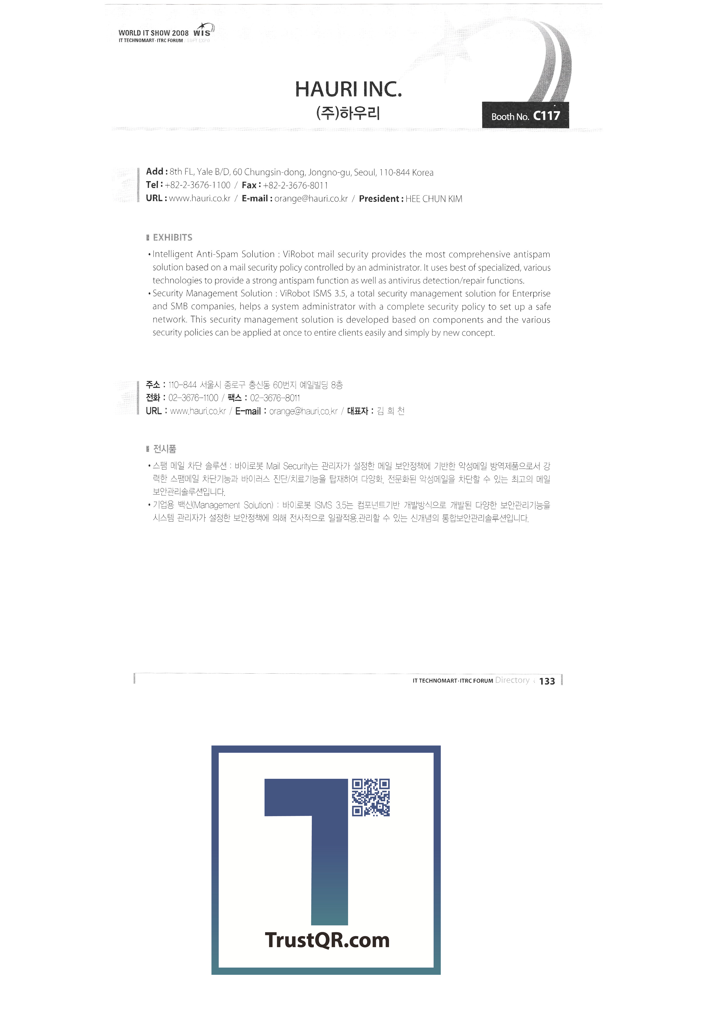 | 유로트레이드 파이어타이드 ㈜프리샛 ㈜필소굿시스템 한국후지쯔 ㈜지엠코퍼레이션 강남구청 강원 임베디드 소프트웨어 연구센터 주식회사 지메인 금성시큐리티㈜ 금천구청 구로구청 (재)광주세계광엑스포 에이치투오시스템테크놀로지㈜ ㈜한백전자 ㈜한국안테나 ㈜한빛터치 한세대학교 학교기업 ㈜하우리 ㈜에이치시티 히트텍 주식회사 한국 휴렛팩커드 유한회사 에이치아이씨소프트㈜ ㈜홈시큐넷 ㈜휴엔택 ㈜휴원 하이버스 주식회사 ㈜벽진시스템 ㈜아이비트 한국아이비엠 아이코드테크놀로지 주식회사 주식회사 아이디웍스시스템 ㈜아이엔소프트 ㈜인포이큐 인포넷그룹㈜ ㈜인포월드 주식회사 아이앤아이맥스 ㈜이노칩테크놀로지 ㈜이노터치테크놀로지 ㈜인사이트랩 |