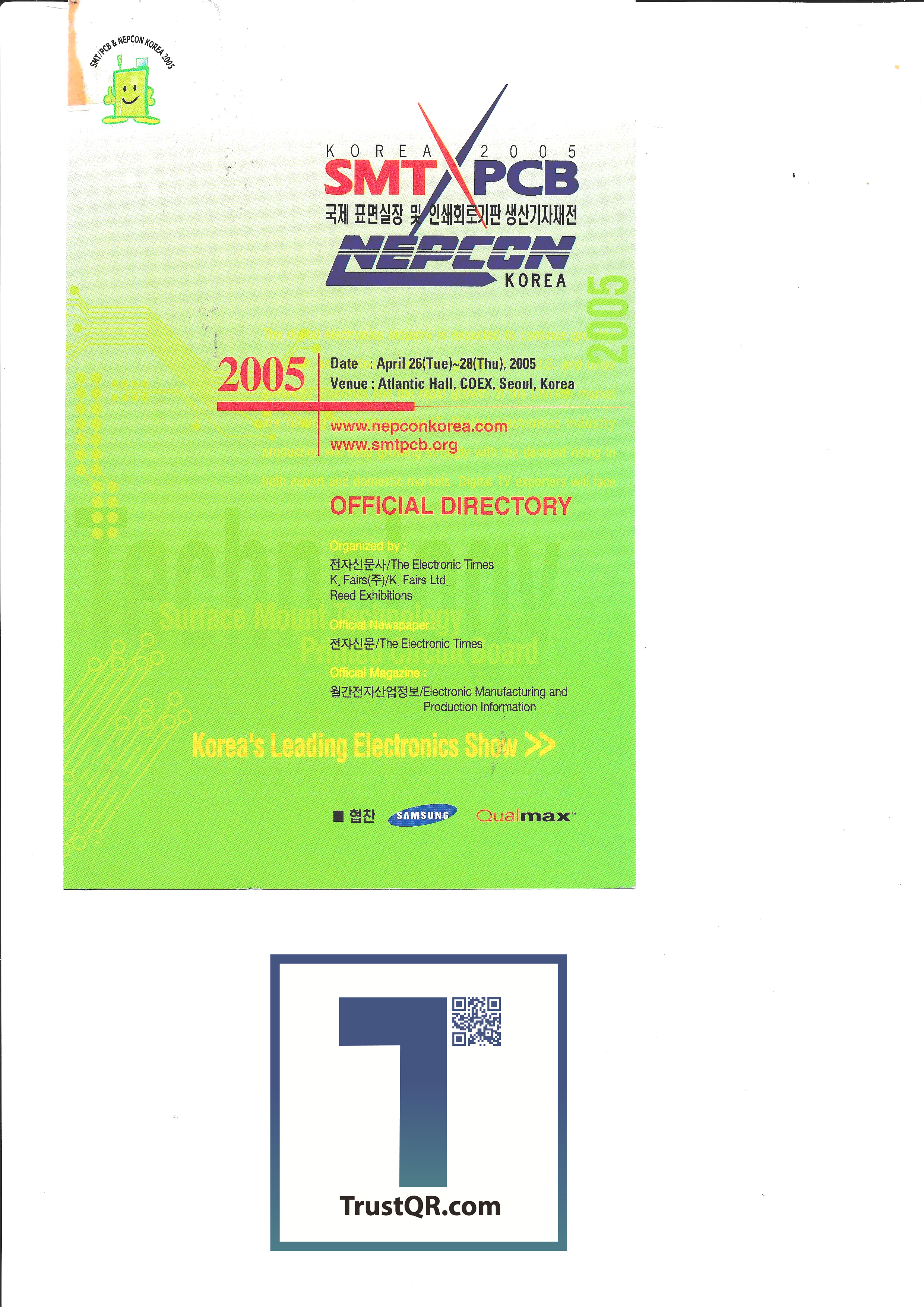| 2005 국제 표면실장 및 인쇄회로기판 생산기자재전 - 2 : SMT & PCB NEPCON KOREA (0) | 2020.09.03 |