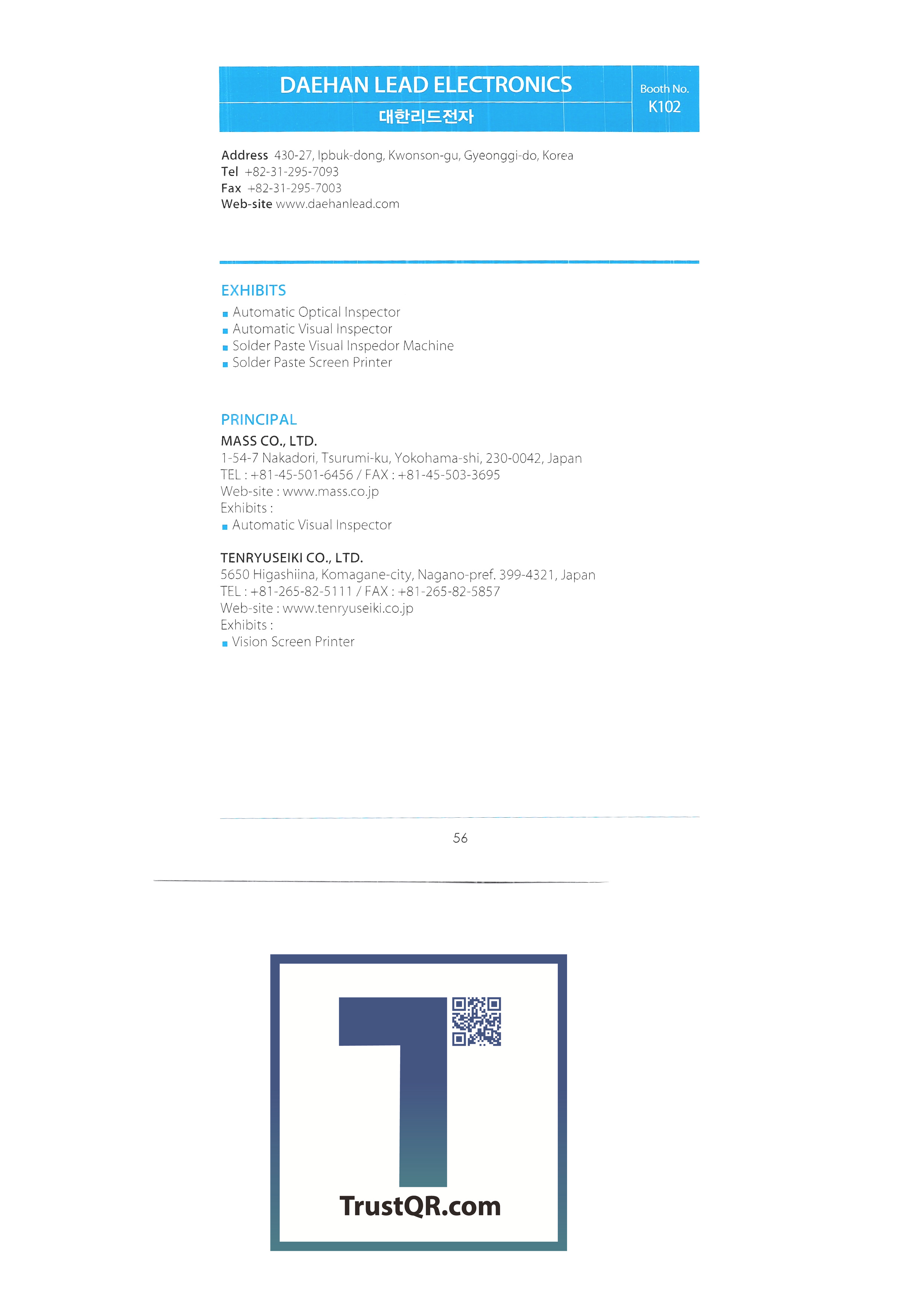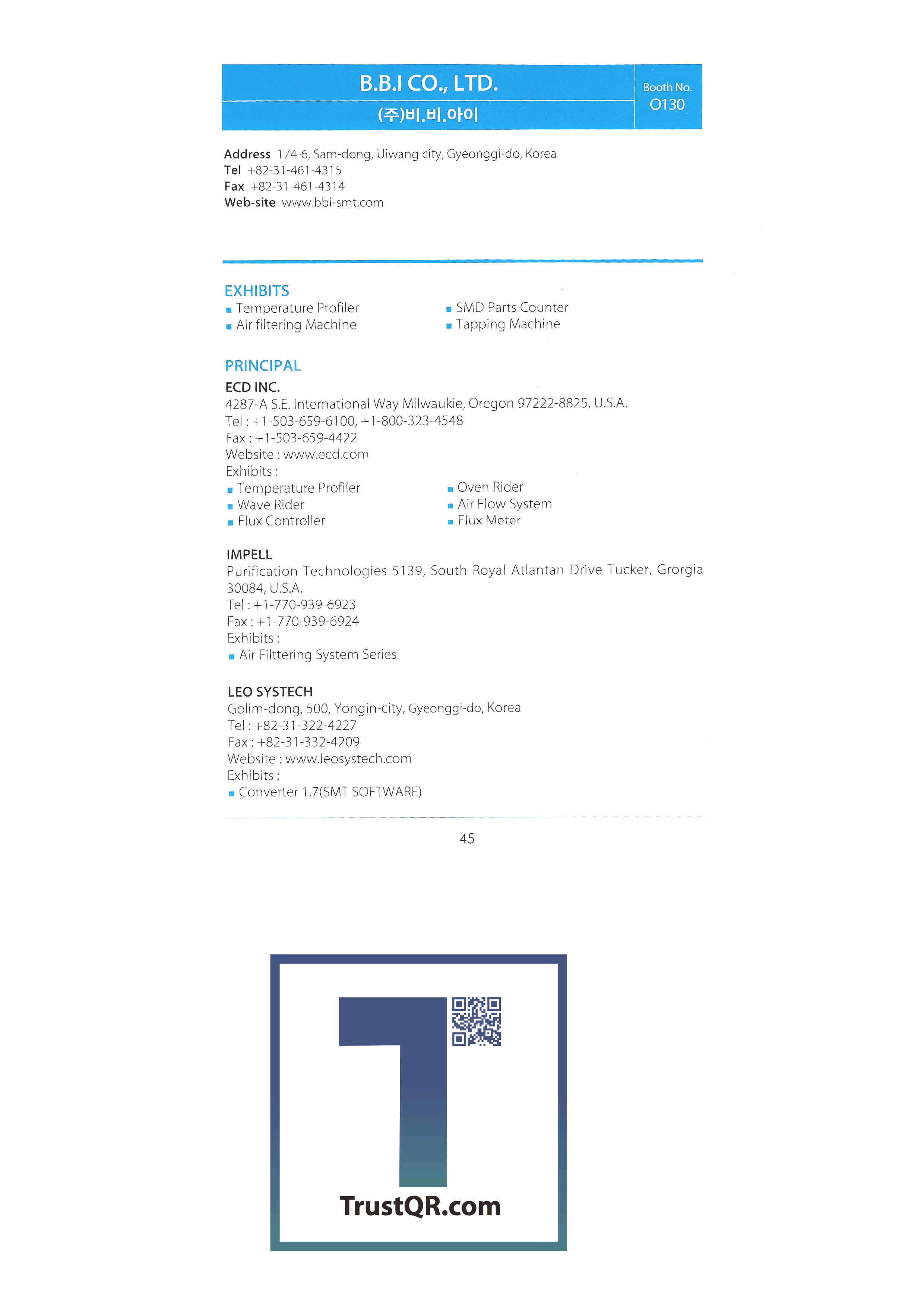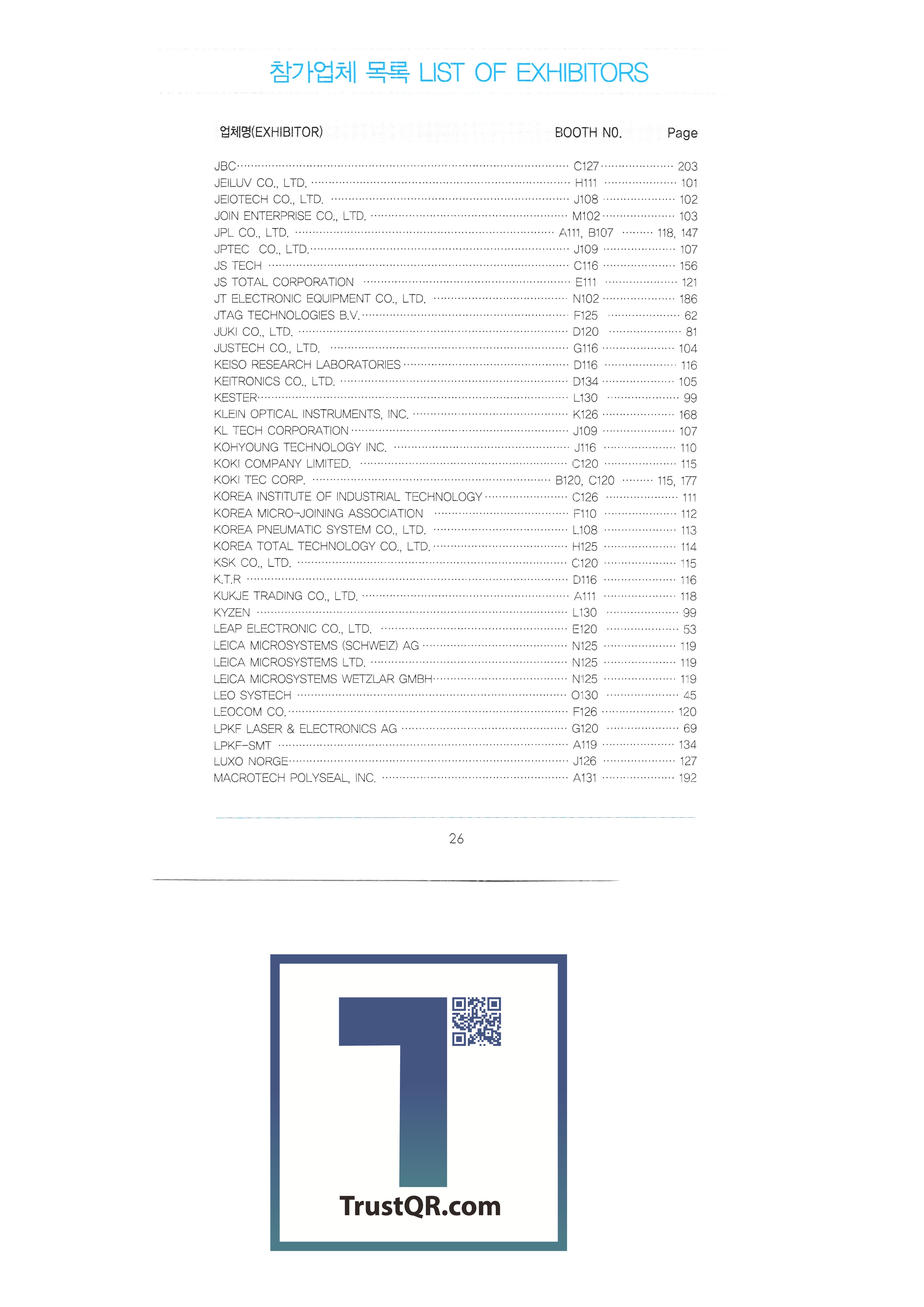 ABC Enterprise Co., Ltd. Able AI Corporation Aju Humicon Corporation Alpha Robotics AMCATRON TECHNOLOGY CO.,LTD A&I Auto CFT Co., Ltd. Baekma Trade Banseok Precision Industry Co., Ltd. B.B.I Biscotti Korea Boncourt Co., Ltd. CAPTAIN INC Hi-tech Co., Ltd. CHYUN YIH Compass System Co., Ltd. Convergence Media Daehan Lead Electronics Daesung Micron Daehwa Tech Danyang Soltech Co., Ltd. Monthly digital technology Daein D Tech Detective Frontier |