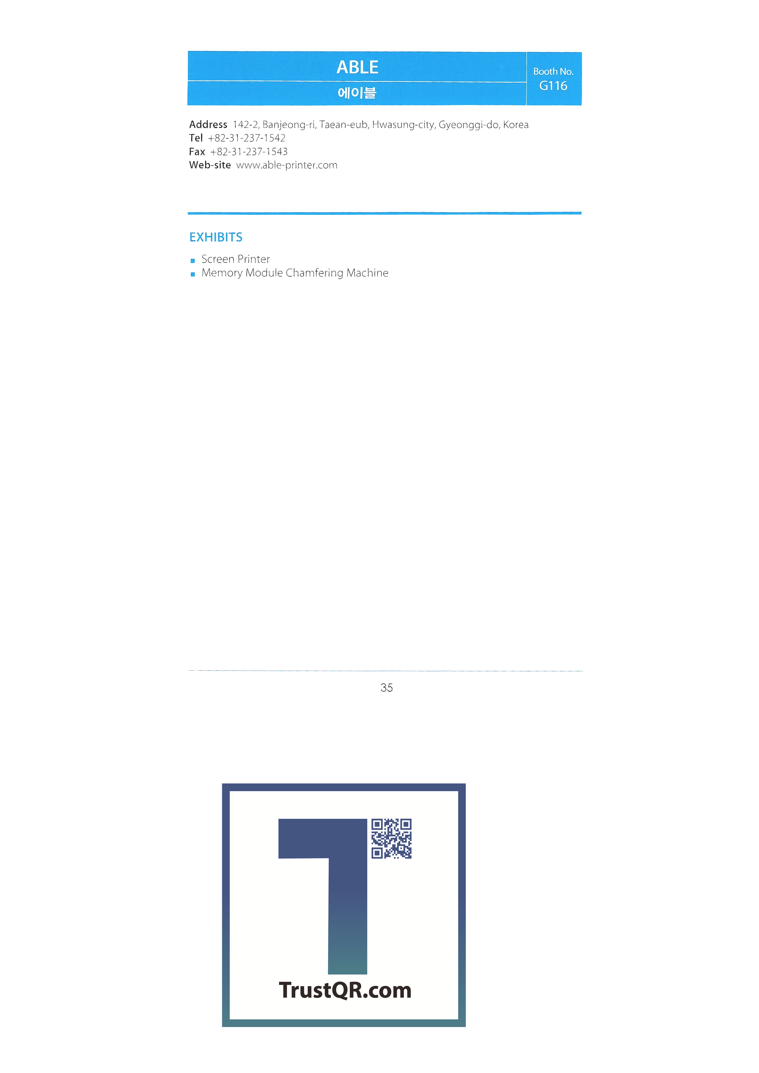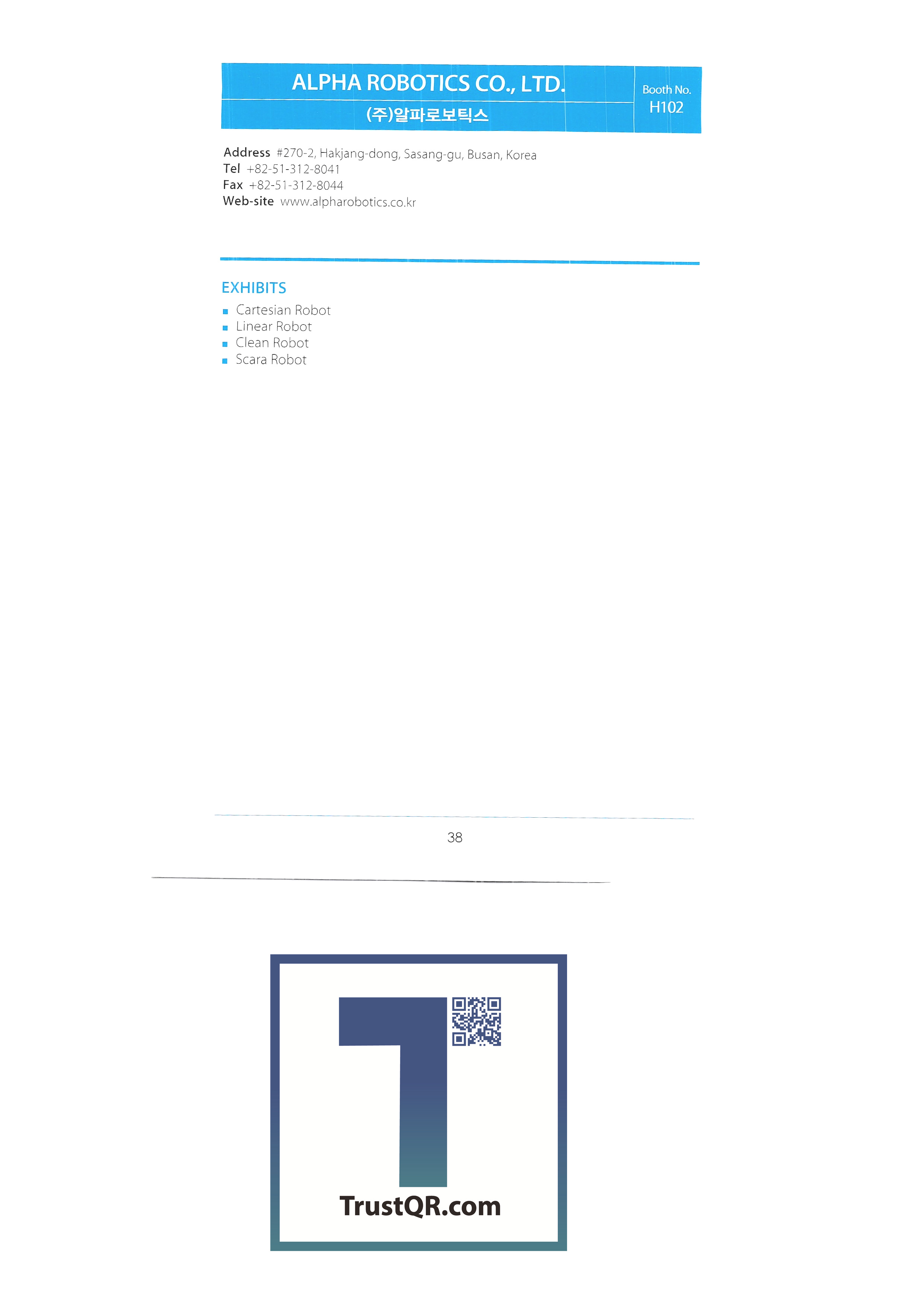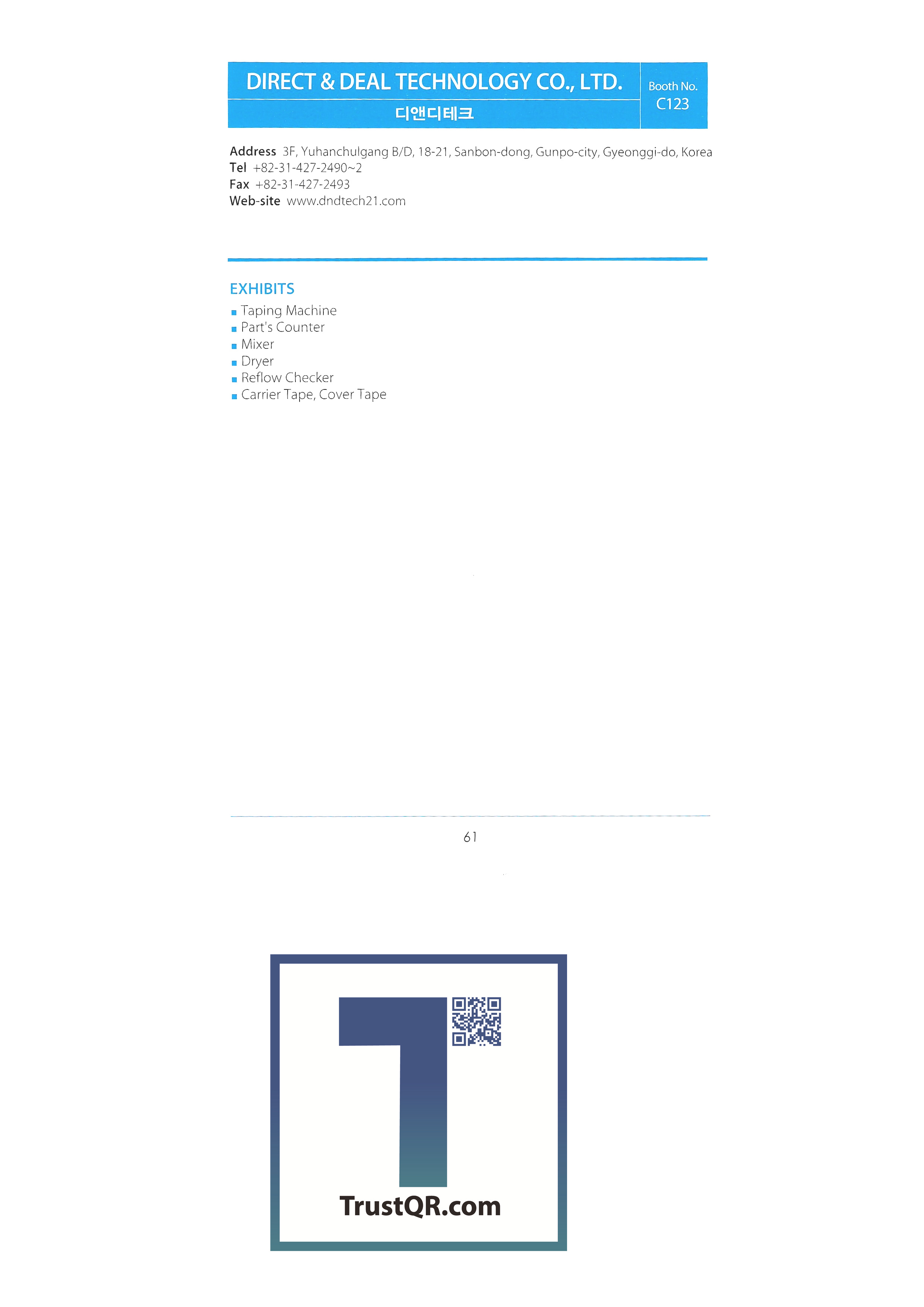 ABC Enterprise Co., Ltd. Able AI Corporation Aju Humicon Corporation Alpha Robotics AMCATRON TECHNOLOGY CO.,LTD A&I Auto CFT Co., Ltd. Baekma Trade Banseok Precision Industry Co., Ltd. B.B.I Biscotti Korea Boncourt Co., Ltd. CAPTAIN INC Hi-tech Co., Ltd. CHYUN YIH Compass System Co., Ltd. Convergence Media Daehan Lead Electronics Daesung Micron Daehwa Tech Danyang Soltech Co., Ltd. Monthly digital technology Daein D Tech Detective Frontier |