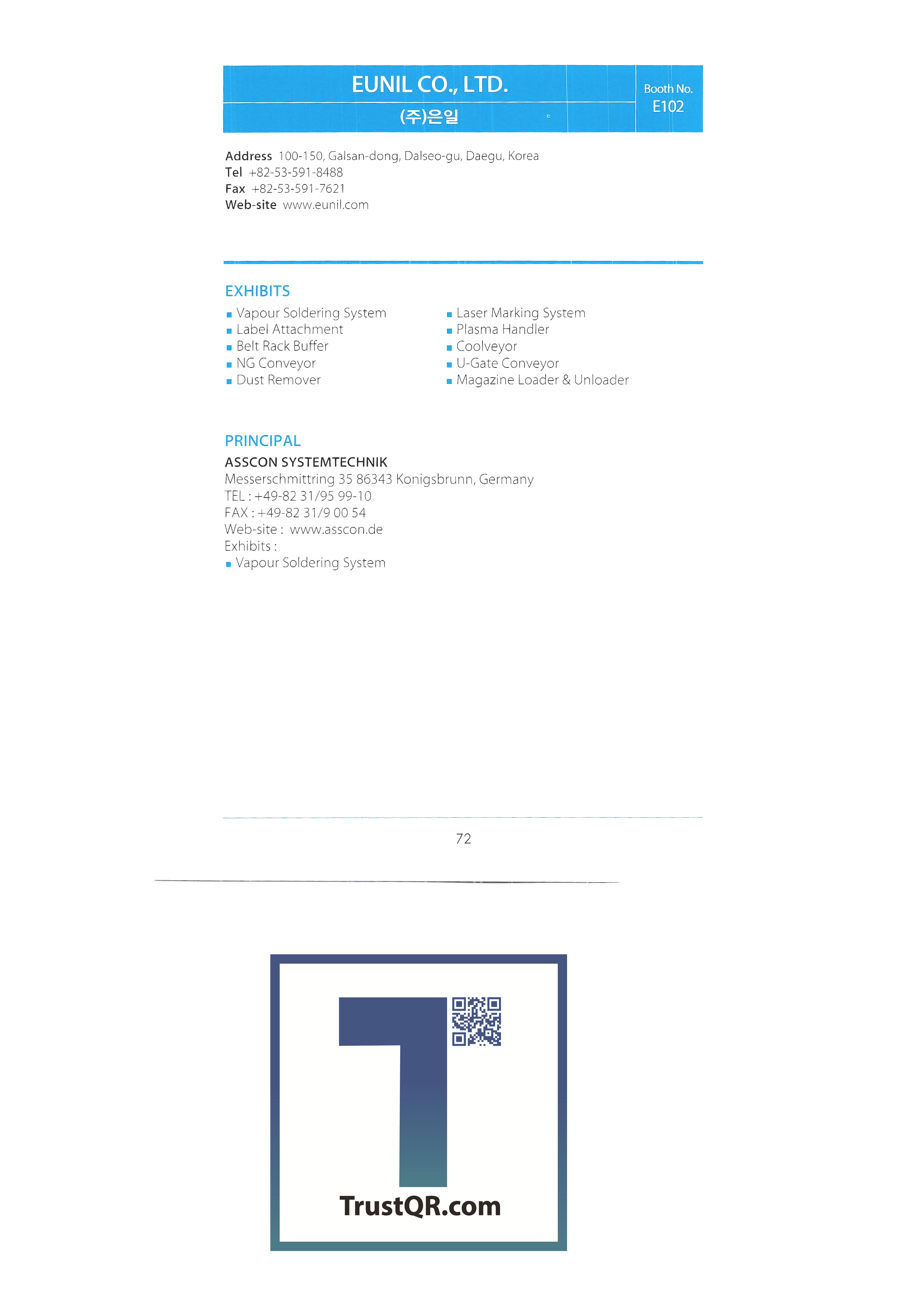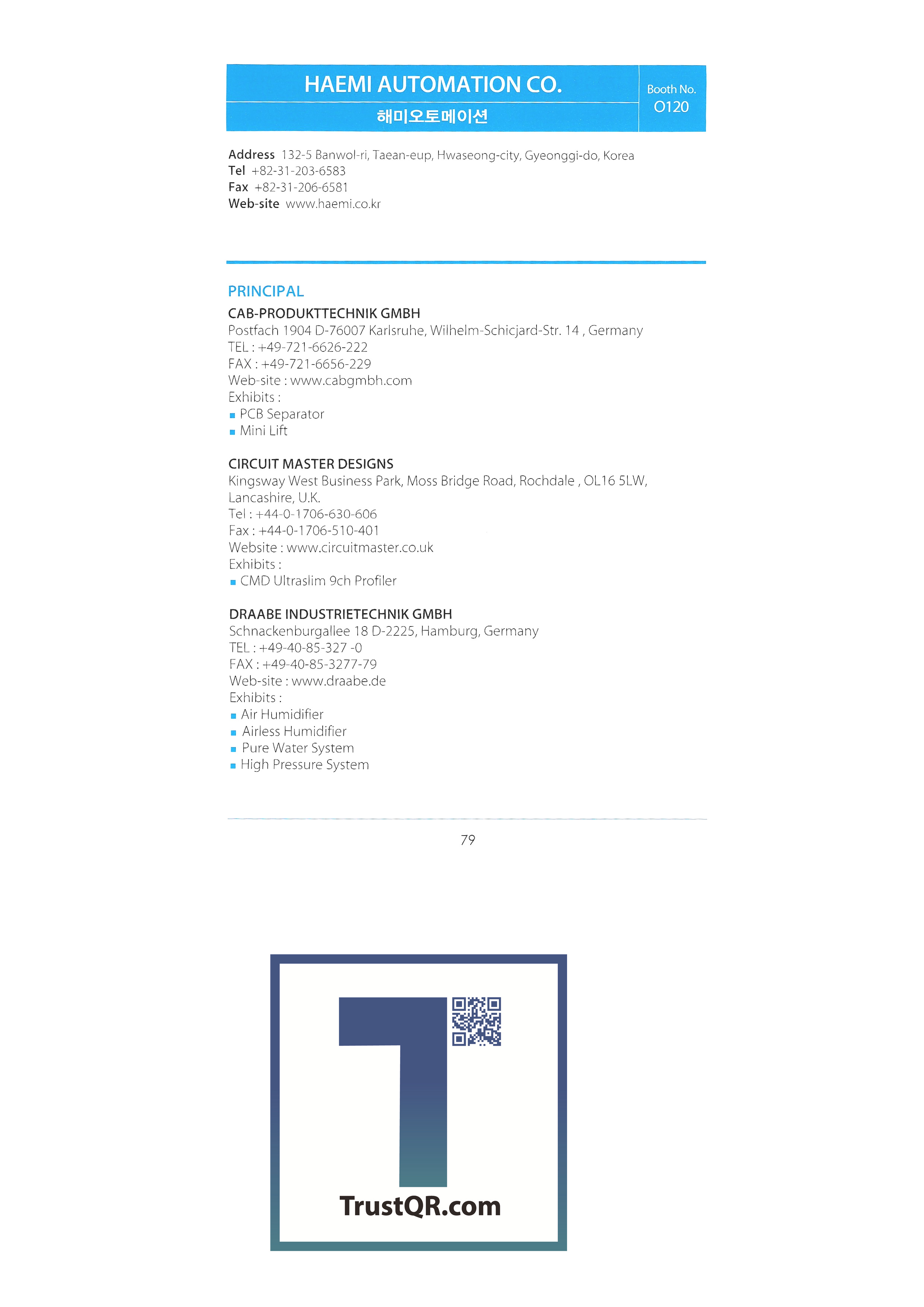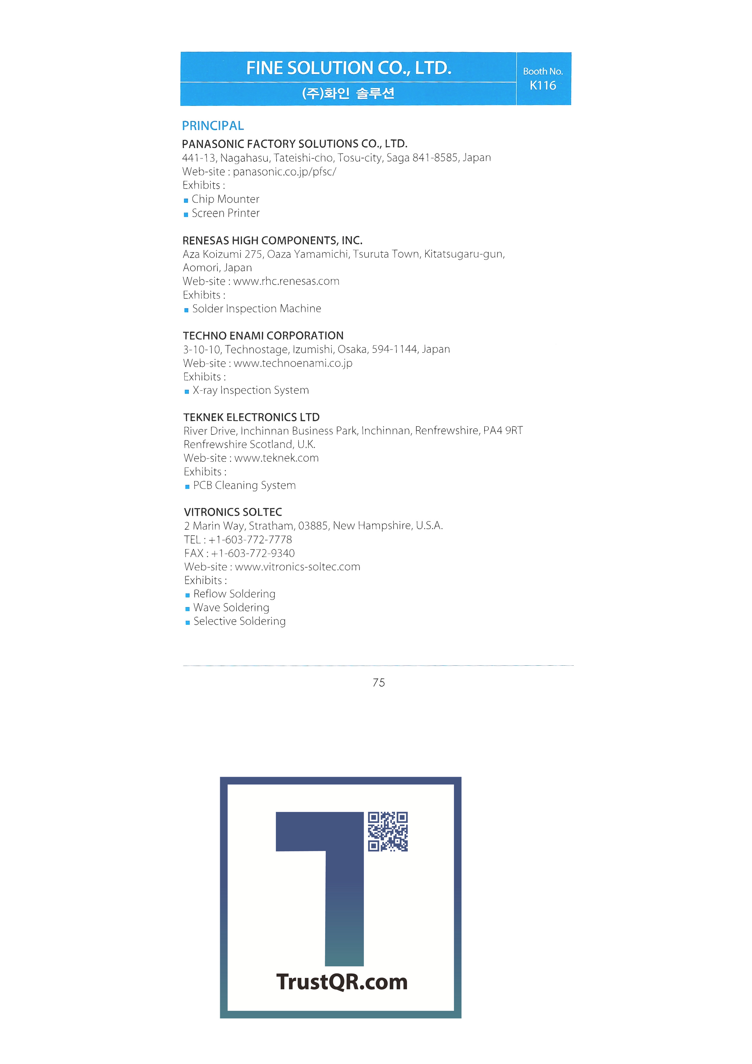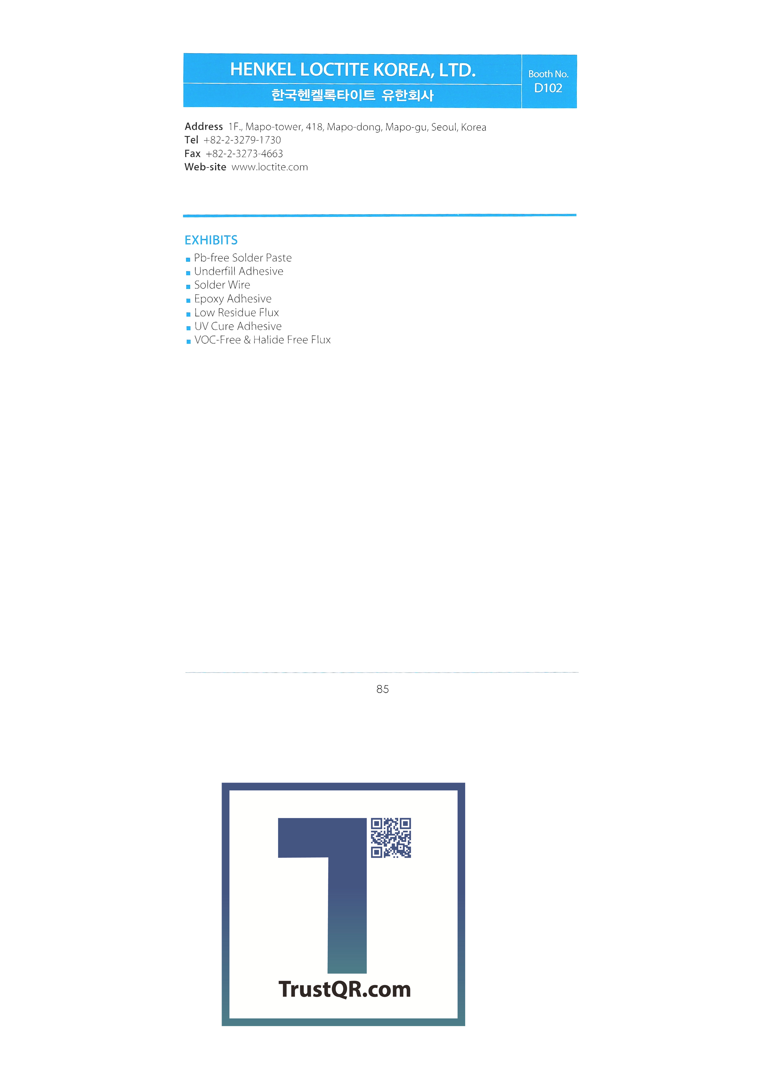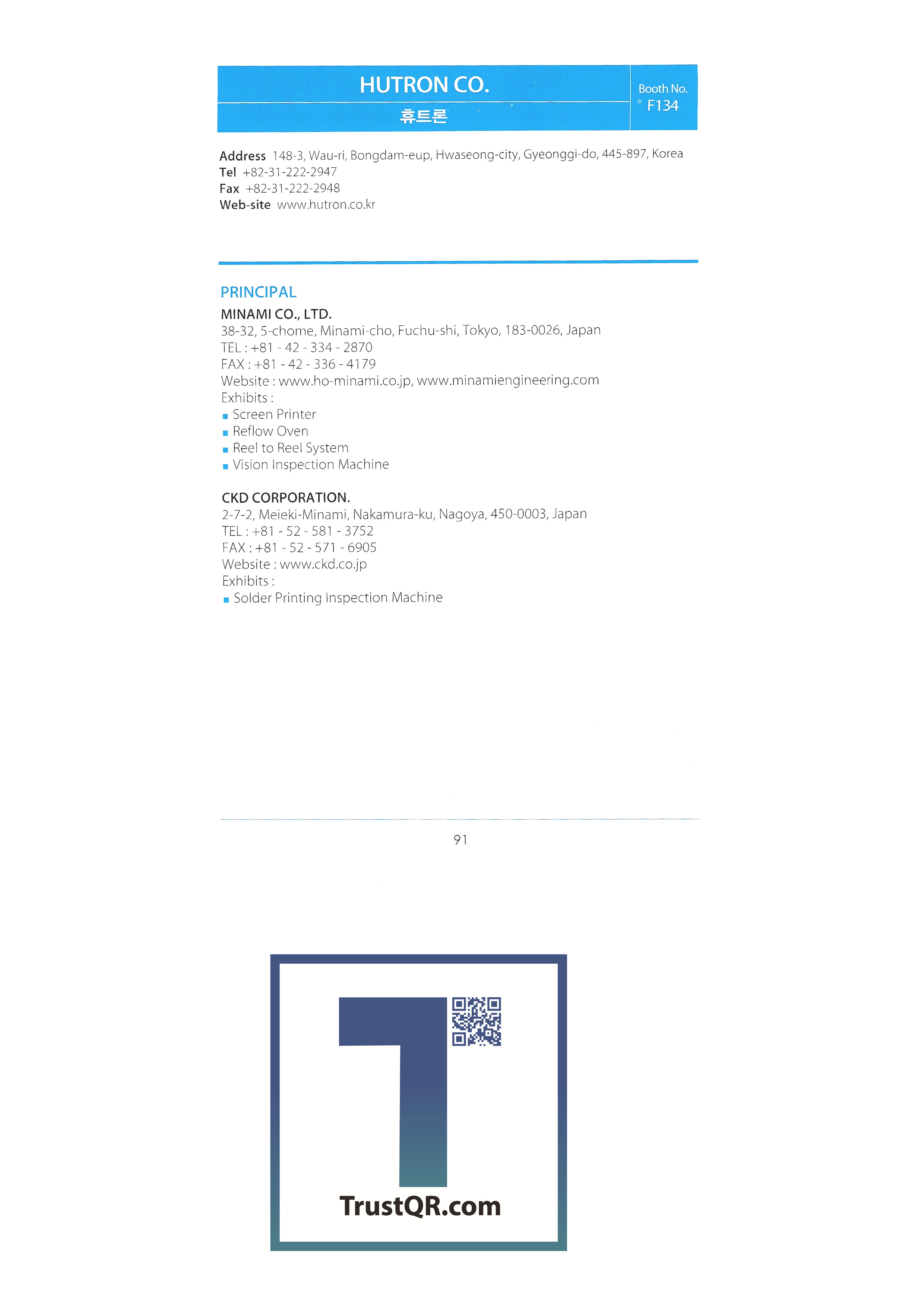 Domino Korea Co., Ltd. Dongseo Hi-Tech Co., Ltd. EcoJoin Co., Ltd. EDN/EM ASIA FD Co., Ltd. Ellexis Co., Ltd. Technical Information ESTECH Eunil Co., Ltd. Farmax Co., Ltd. Fine Solution Co., Ltd. Pound Four Good feeling Kyunglim Engineering Co., Ltd. Haemi Automation Hanju SLC Co., Ltd. Korea Murakami Co., Ltd. Haller Korea Co., Ltd. Henkel Korea Co., Ltd. Henkeloktite Korea Co., Ltd. Hitachi Construction Machinery Fine Tech Co., Ltd. Hitech Korea Co., Ltd. Hitech Trading Co., Ltd. Hojan Tech Co., Ltd. Humantech Hutron Hyundai ENG I&G Plus Imp IMPC Co., Ltd. Infoder Co., Ltd. In-tech supply Interchem Korea IPS System Co., Ltd. Cheil UV Co., Ltd. Jeio Tech |