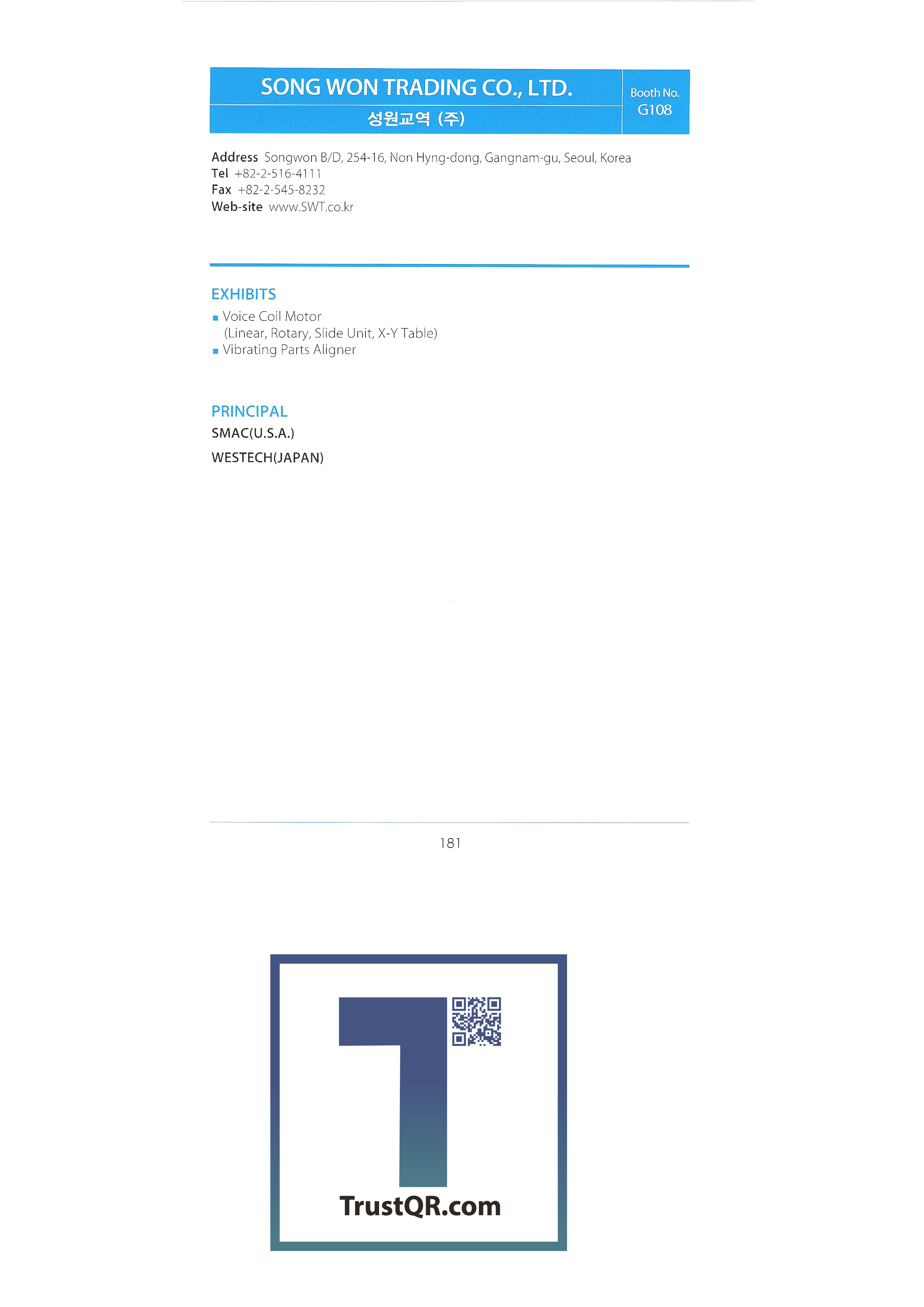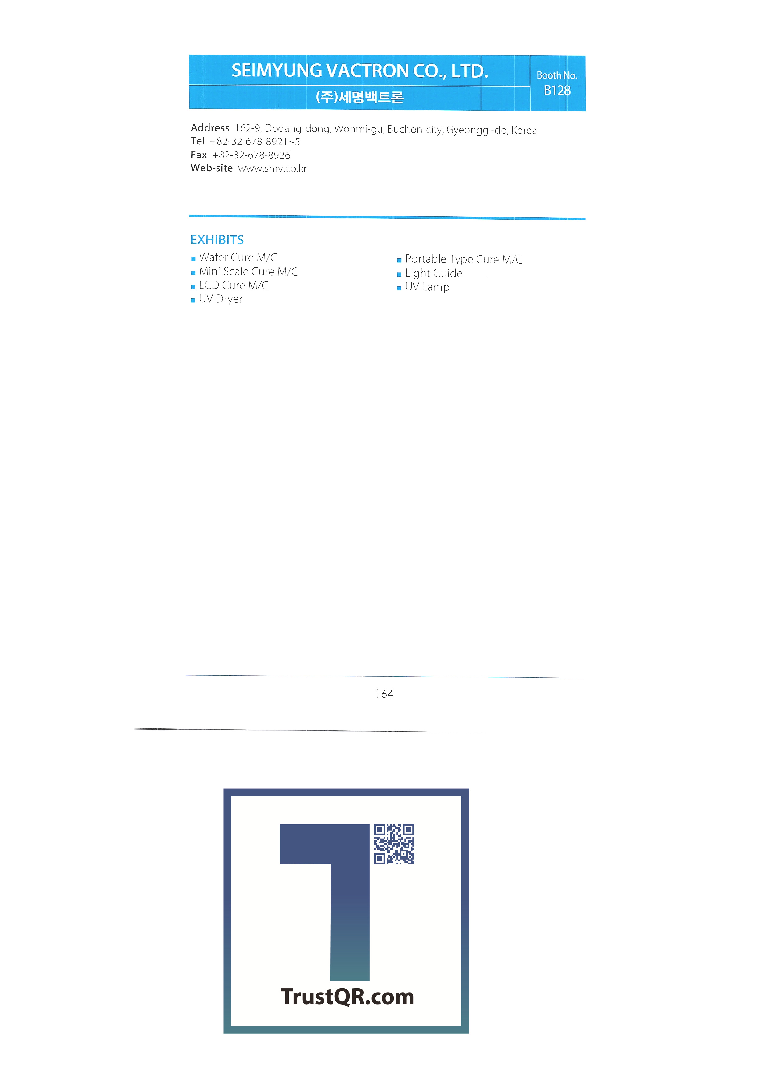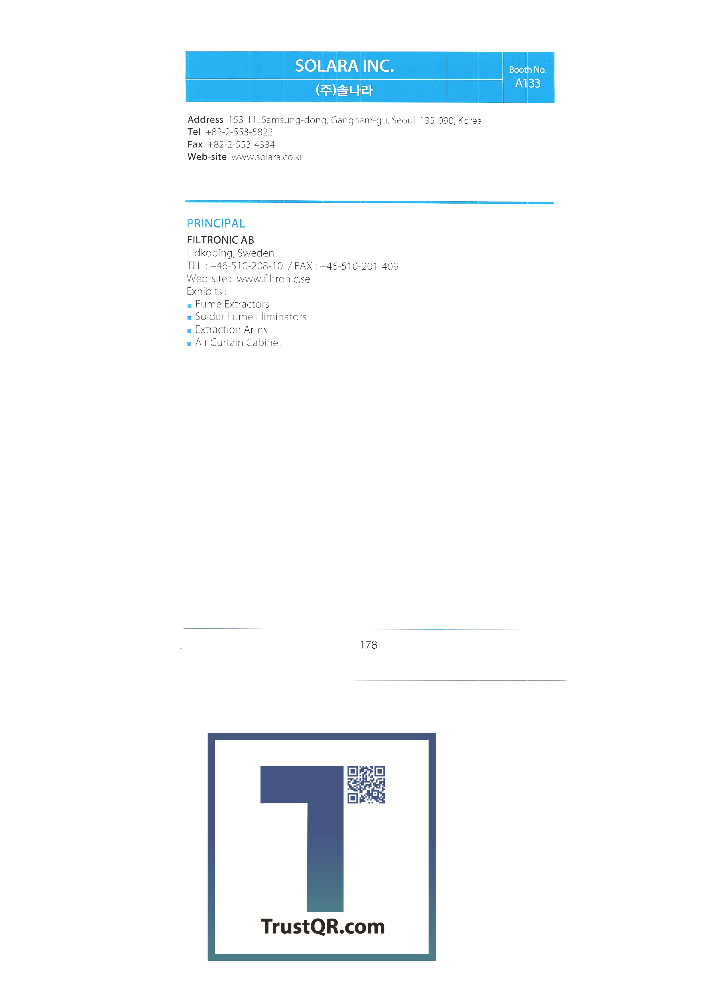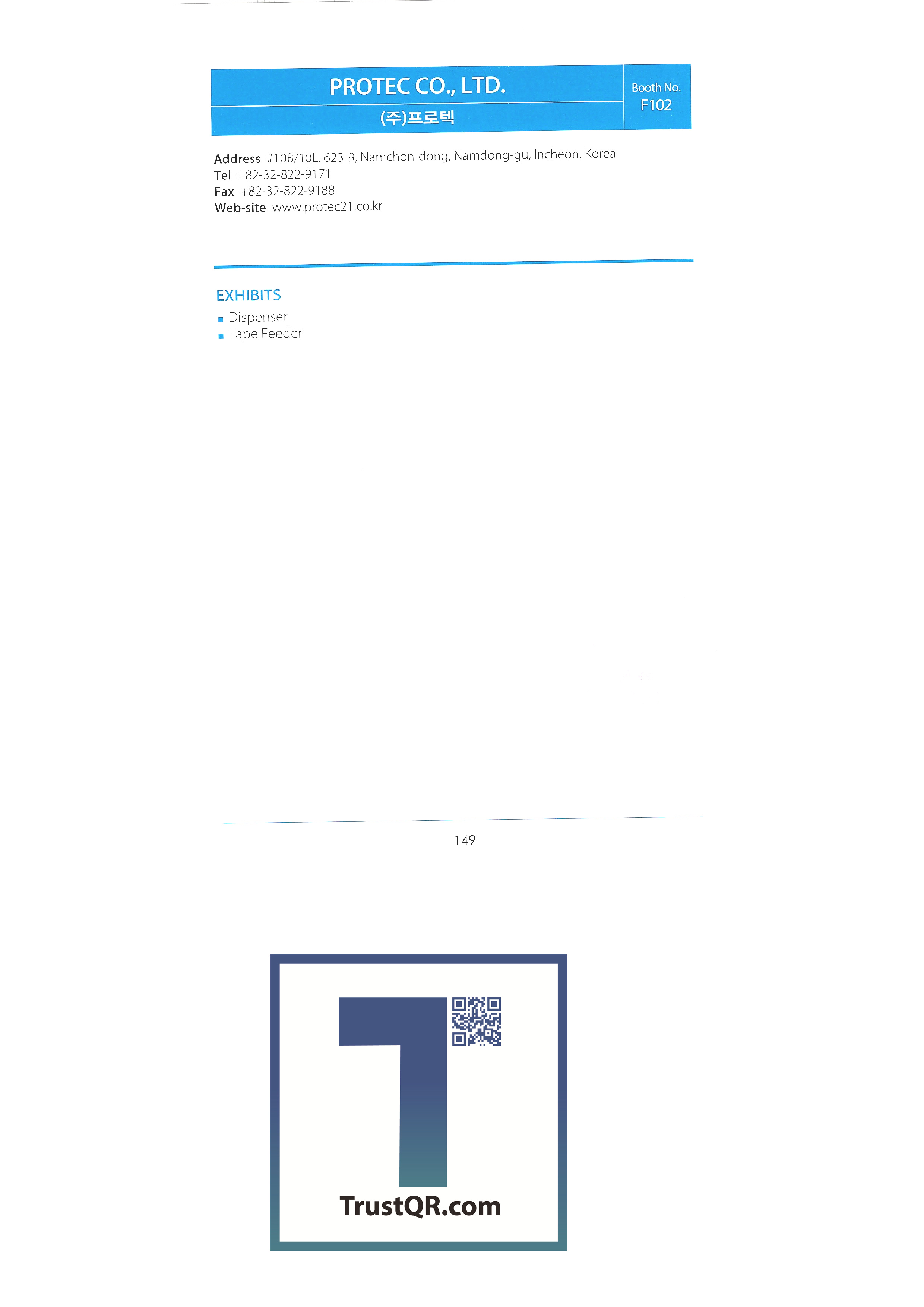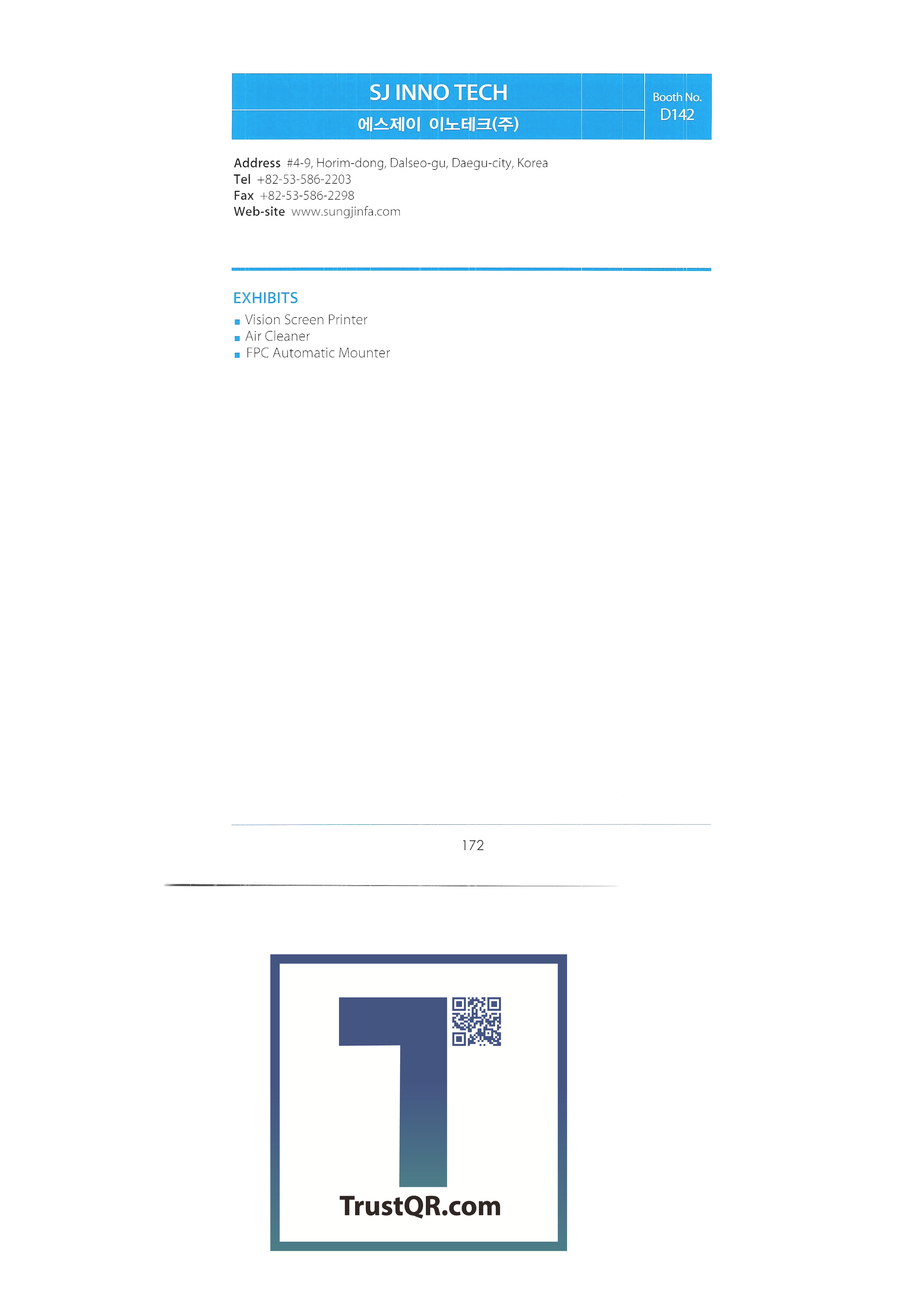 오케이코리아㈜ 오보텍한국지사 오티시㈜ ㈜파미 큰기술교역 프라임씨앤에스 ㈜프로텍 퀄맥스㈜ 퀵코리아 ㈜바른기술 세종산업㈜ SAKI CORPORATION 삼정이엔지 삼성테크윈㈜ SEAL KING IND.CO.,LTD ㈜쎄크 ㈜세일 하이텍 세일리코㈜ ㈜세명백트론 ㈜에스이오 서일이앤엠㈜ 서울문기상사 에스지 미디어 SHENMAO TECHNOLOGY INC 신명기전 에스제이 이노테크㈜ 에스엠씨 에스엠텍 ㈜에스엠티코리아 에스엔제이 코퍼레이션 ㈜솔나라 SOLAR PLUS COMPANY ㈜썸텍 성원교역㈜ 성지통상㈜ |