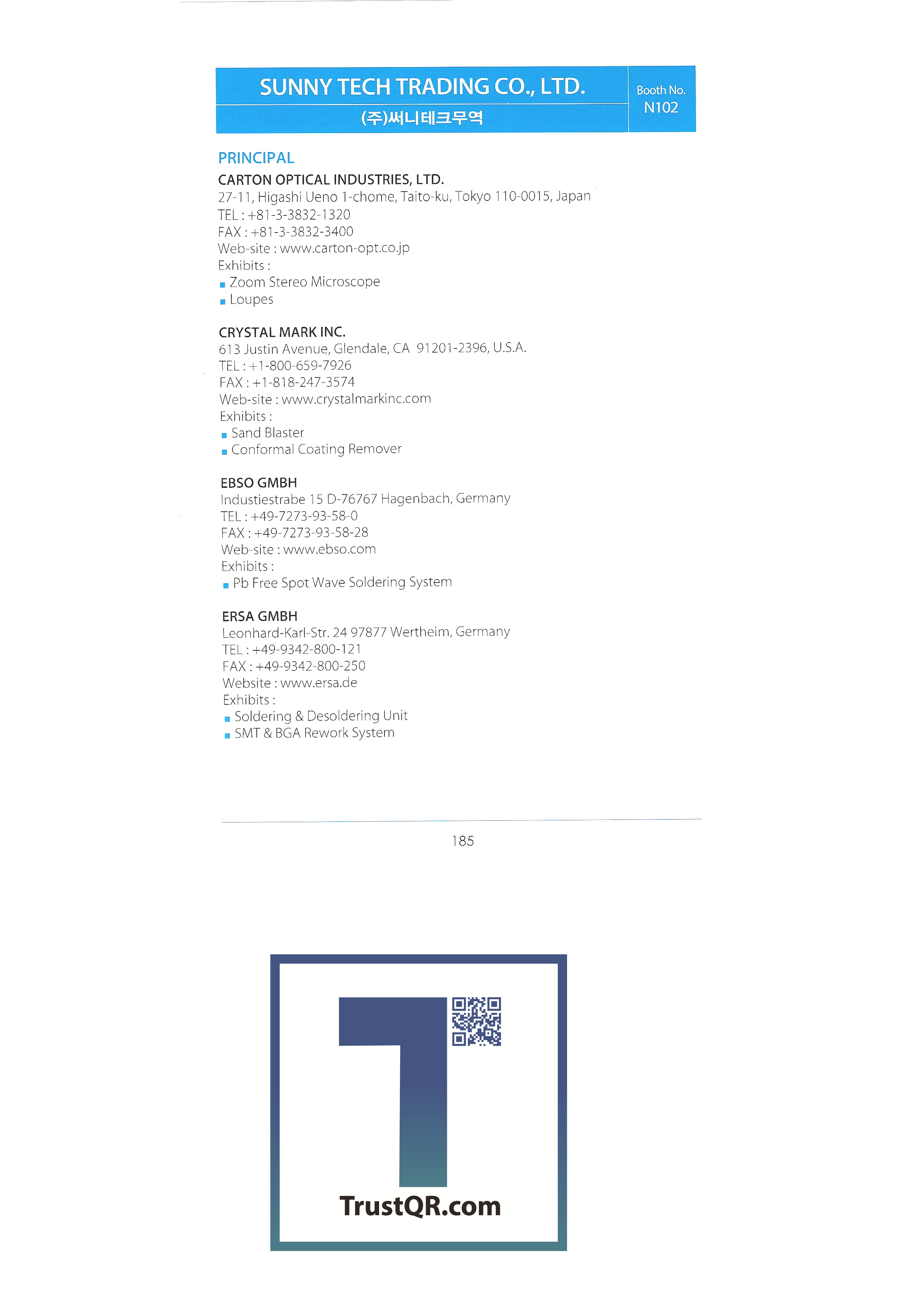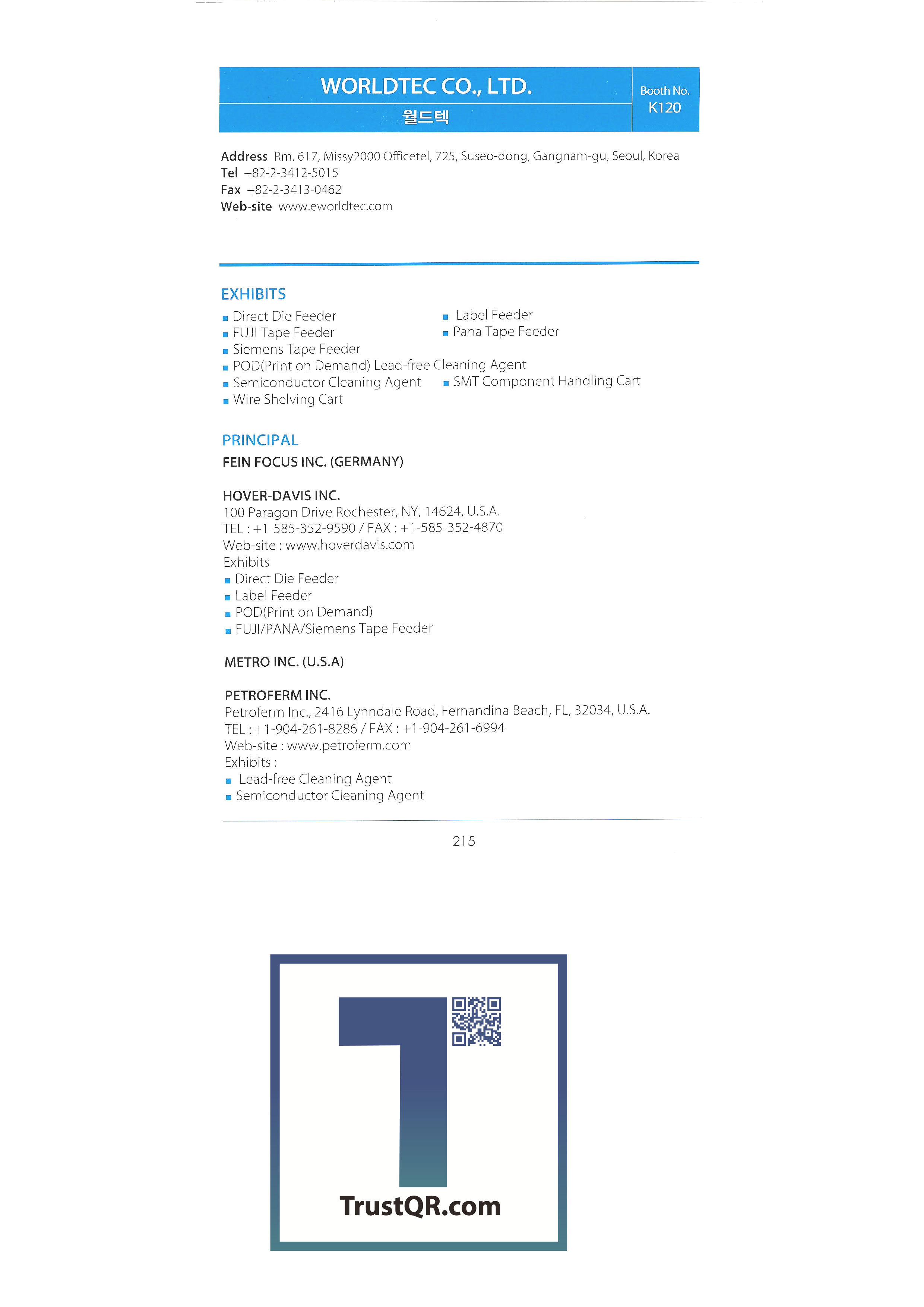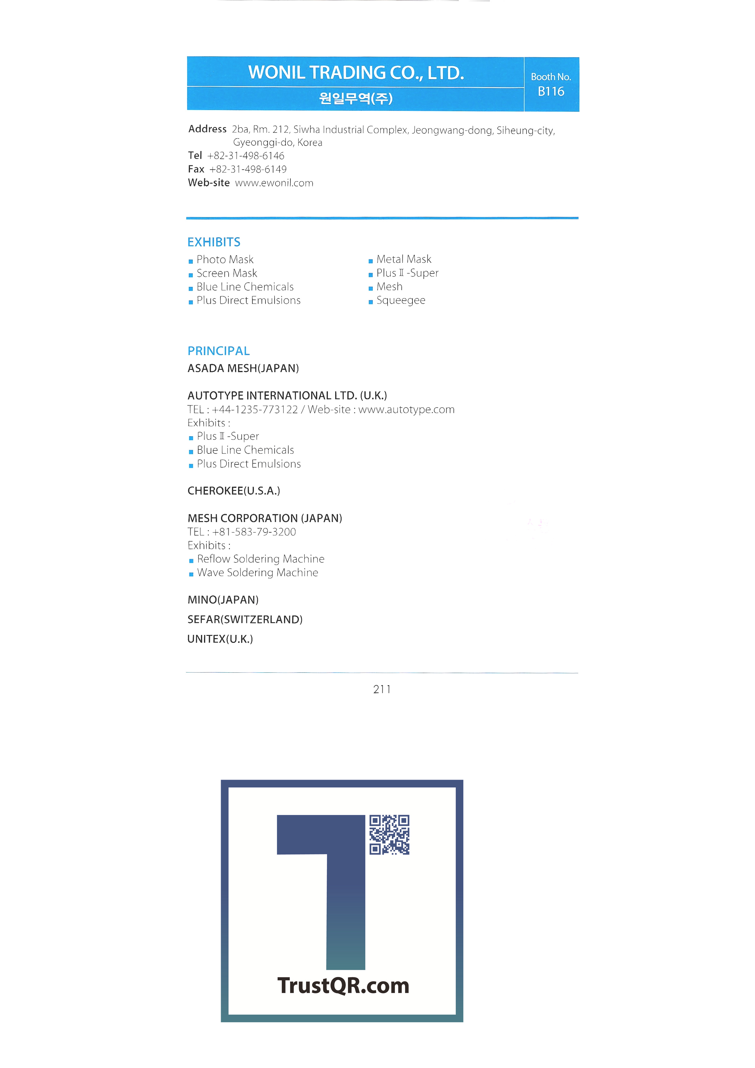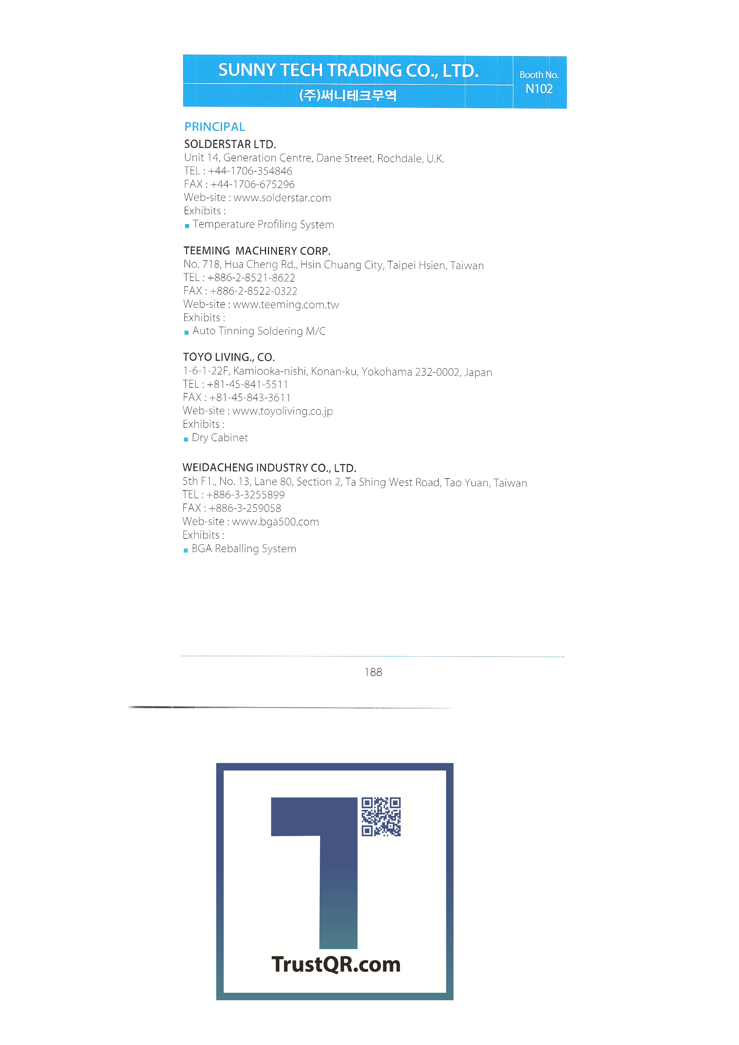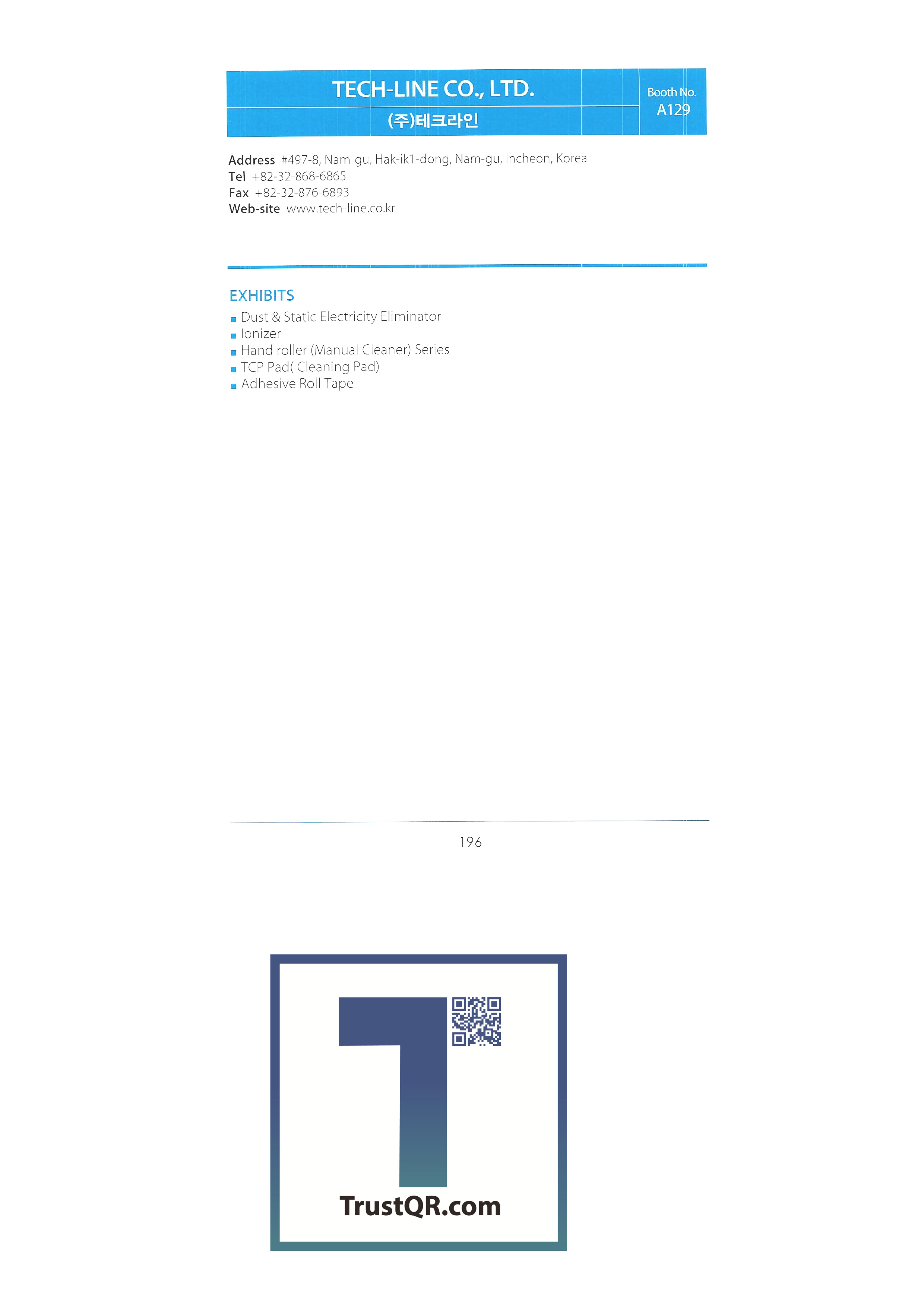 | ㈜성문테크 ㈜써니테크무역 썬크스코리아㈜ ㈜서플러스글로벌 태하엔지니어링 태화우레탄 TAIWAN REGIONAL ASSOCIATION OF ADHESIVE TAPE MANUFACTURES ㈜한국다무라 ㈜테크아이 ㈜테크라인 ㈜티에스 테크밸리㈜ ㈜테크월드 ㈜티이피 TIMEKEY CORP ㈜티엔텍 티에치에스 TRIMECH TECHNOLOGY PTE LTD ㈜티에스엠 ㈜유진테크 ㈜유니버샬 인스트룸먼트 코리아 ㈜버텍스 비젼시스템즈 ㈜우리회사 원일무역㈜ 우일에프에이㈜ 우주하이테크㈜ 웅진자외선 월드텍 엑스레이 코리아 윤희무역상사 ㈜영진아스텍 ㈜줌테크 |