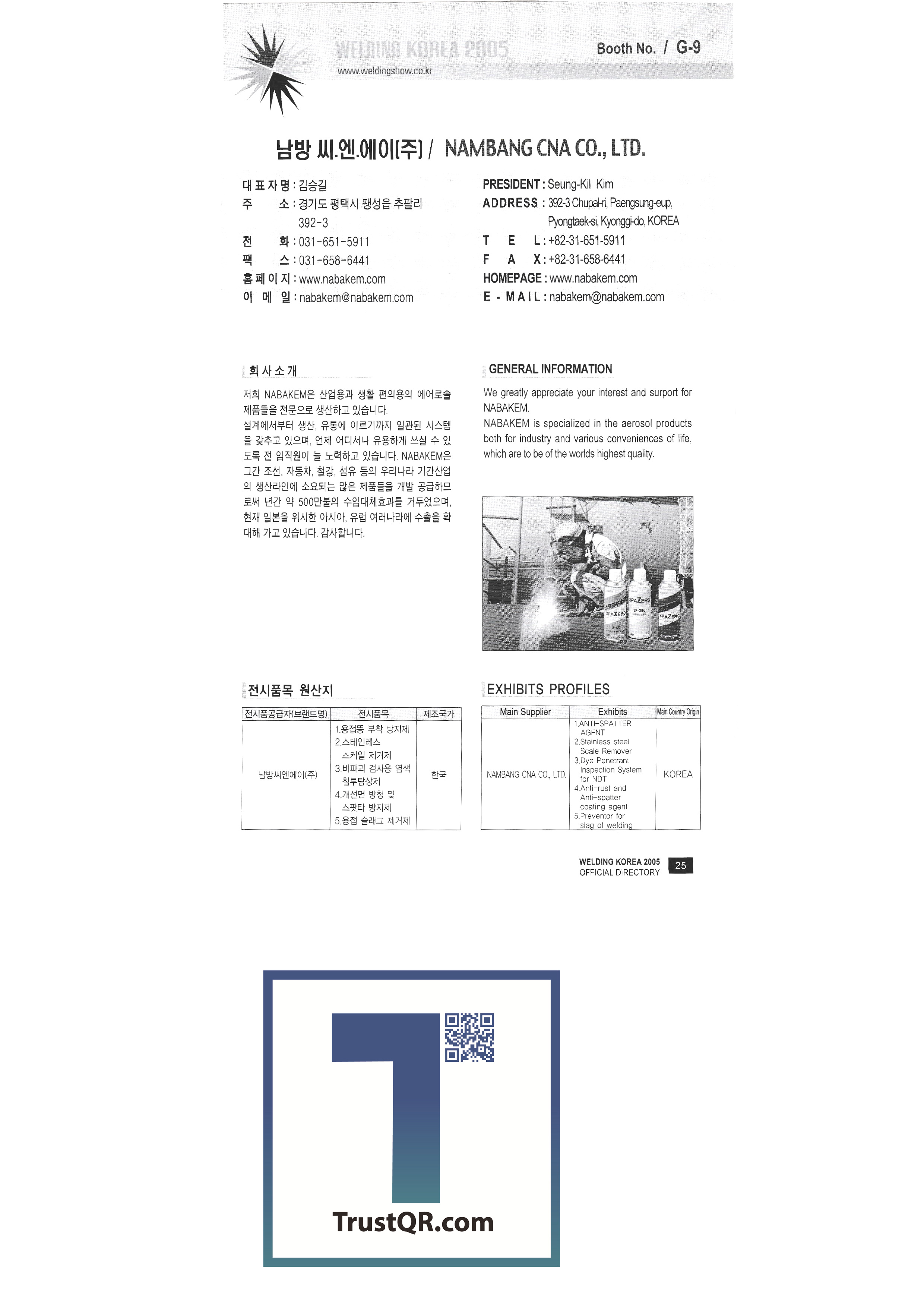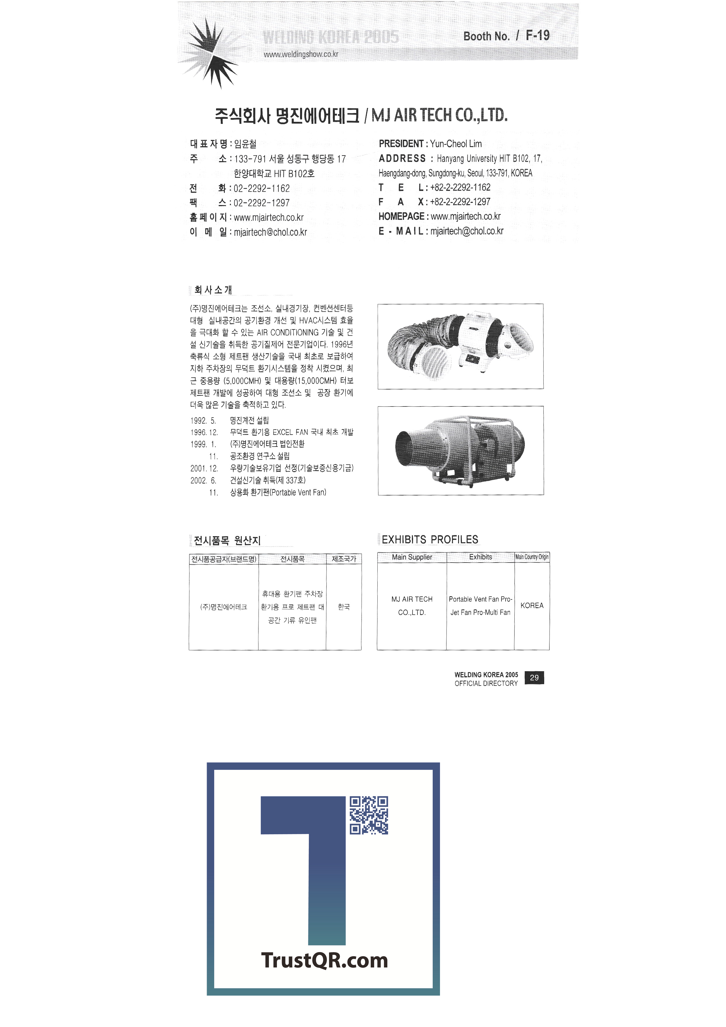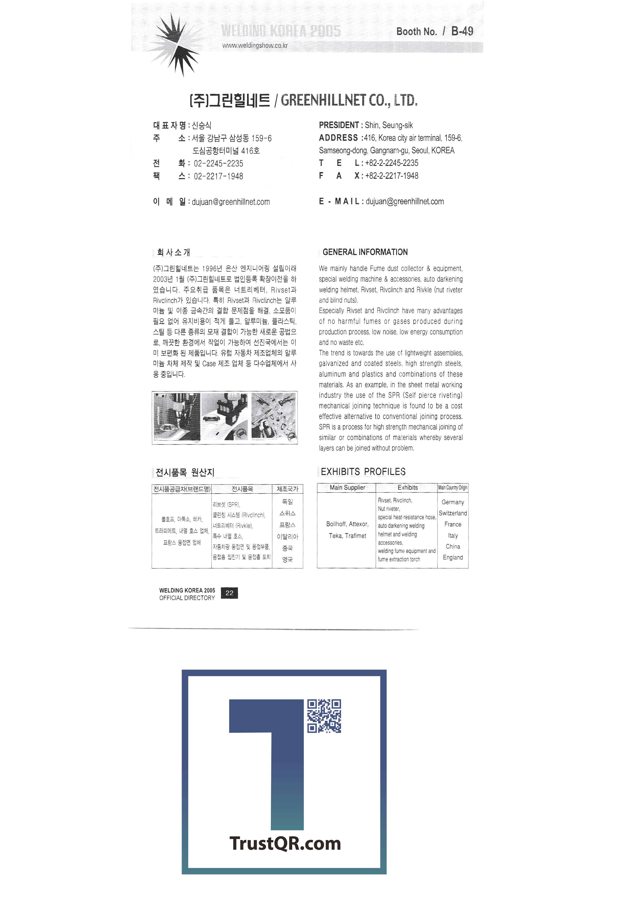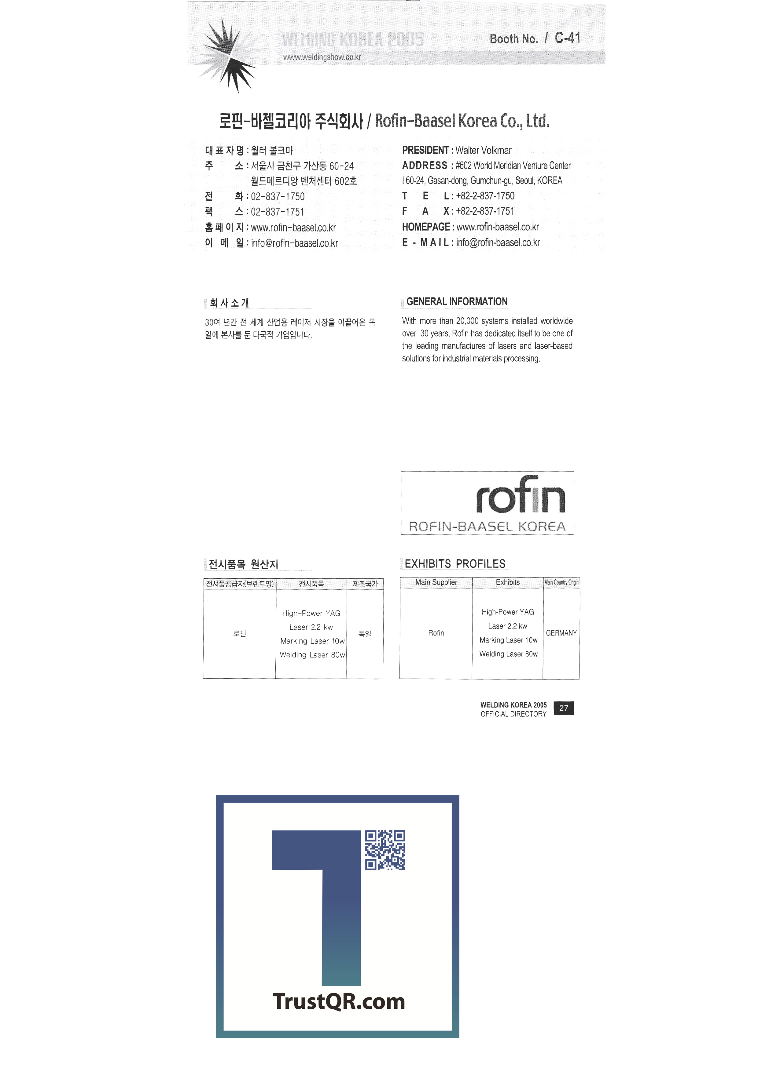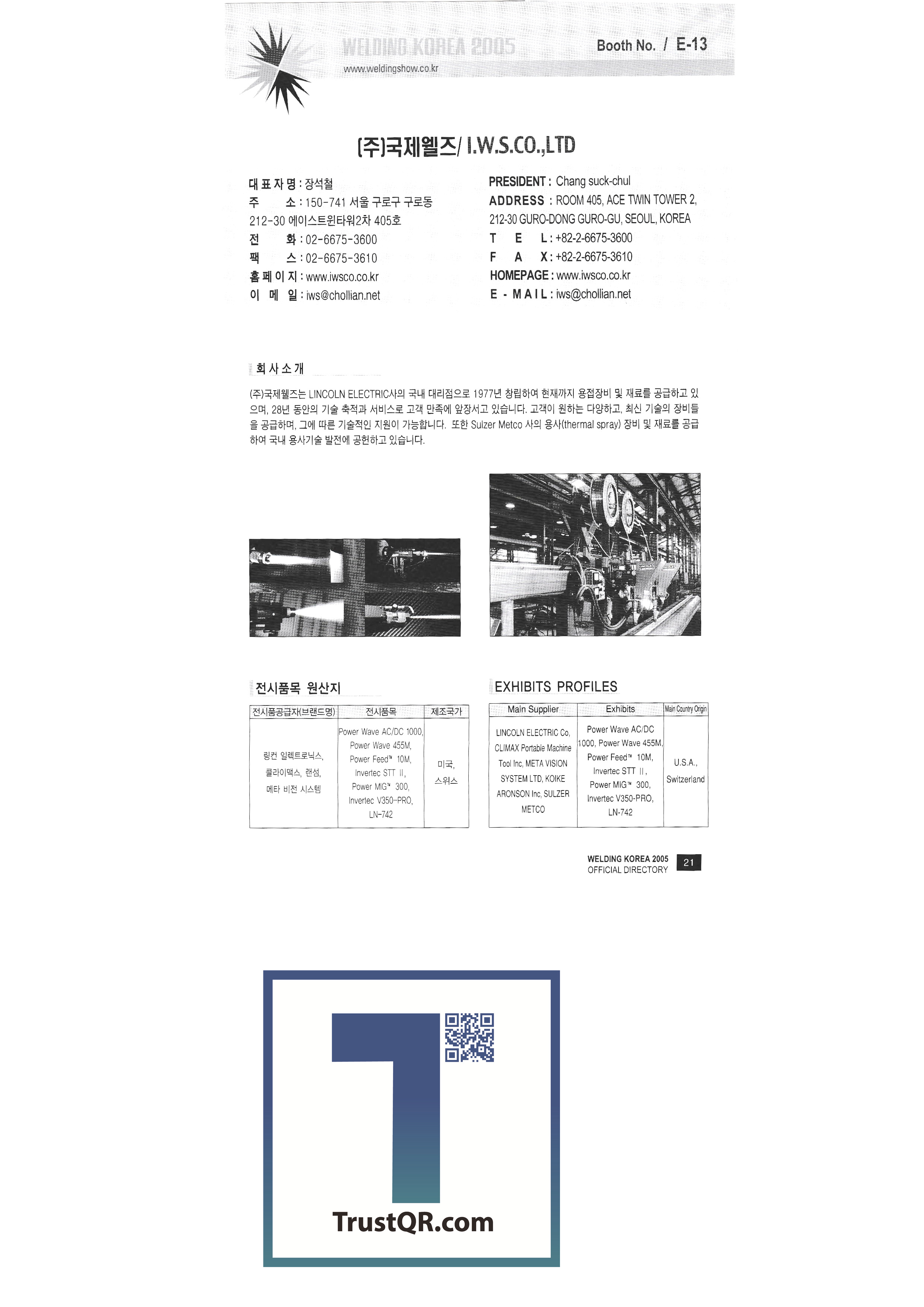International Automotive Exhibition International Wells Co., Ltd. Green Hill Net Co., Ltd. Geumgam EDM Kumho Electric Nambang C.N.A. Robowell Co., Ltd. Lopin-Basel Korea Co., Ltd. Max Electrician Myeongjin Airtech Co., Ltd. Bakuudarose Korea Co., Ltd. Samik General Welding Machine Seokyeong Brazing Seokyung Welding Machine Seokwang (Miller Korea Agency) Jaekwang TF (Seokwang Relay) Servo Weld Sungdo Industry |