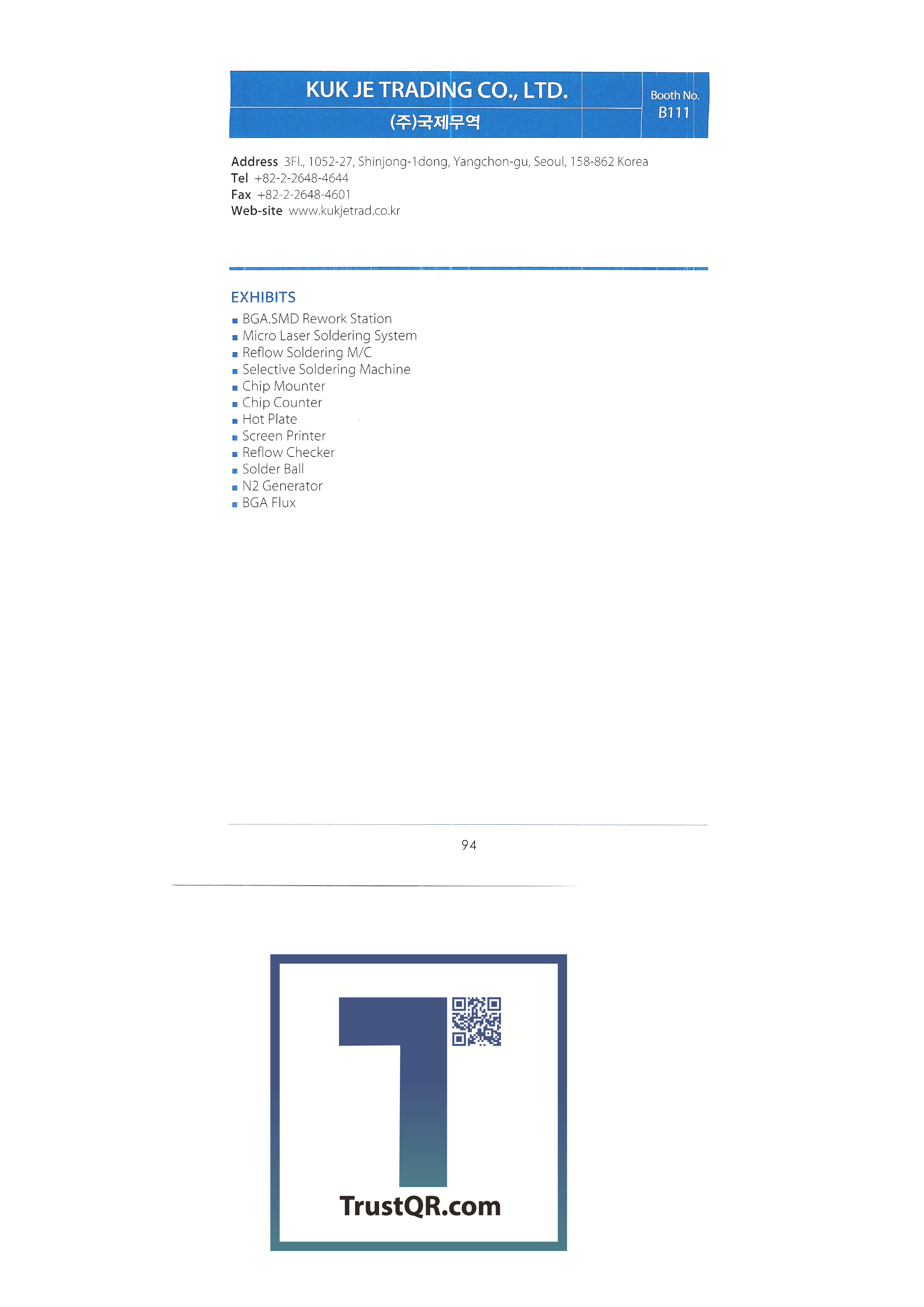 | 휴트론 ㈜아이엠피이씨 인디스에어㈜ ㈜인포더-FA저널 ㈜인터켐코리아 ㈜아이에스피 THE HUNGARIAN INVESTMENT AND TRADE DEVELOPMENT AGENCY ㈜아이티이노베이션 야긴 코퍼레이션 제이오텍 제이에스테크 준-비젼 케이씨티 테크 키엔스 코리아㈜ 한국생산기술연구원 고영 테크놀러지 ㈜한국아이티에스 한국종합기술 ㈜코리아 마그네슘 ㈜케이티티 ㈜국제무역 ㈜라이카 코리아 ㈜리트젠 민트테크놀로지 코리아 미래산업㈜ ㈜미르기술 월간 모션컨트롤 엠에쓰테크 ㈜엠시스 ㈜나노 프로텍 내쇼날 프로-랙 넥스타테크놀로지㈜ ㈜엔케이이 ㈜엔와이테크 오케이코리아 ㈜파미 펨트론 ㈜휘닉스디지탈테크 ㈜큐티에스 |