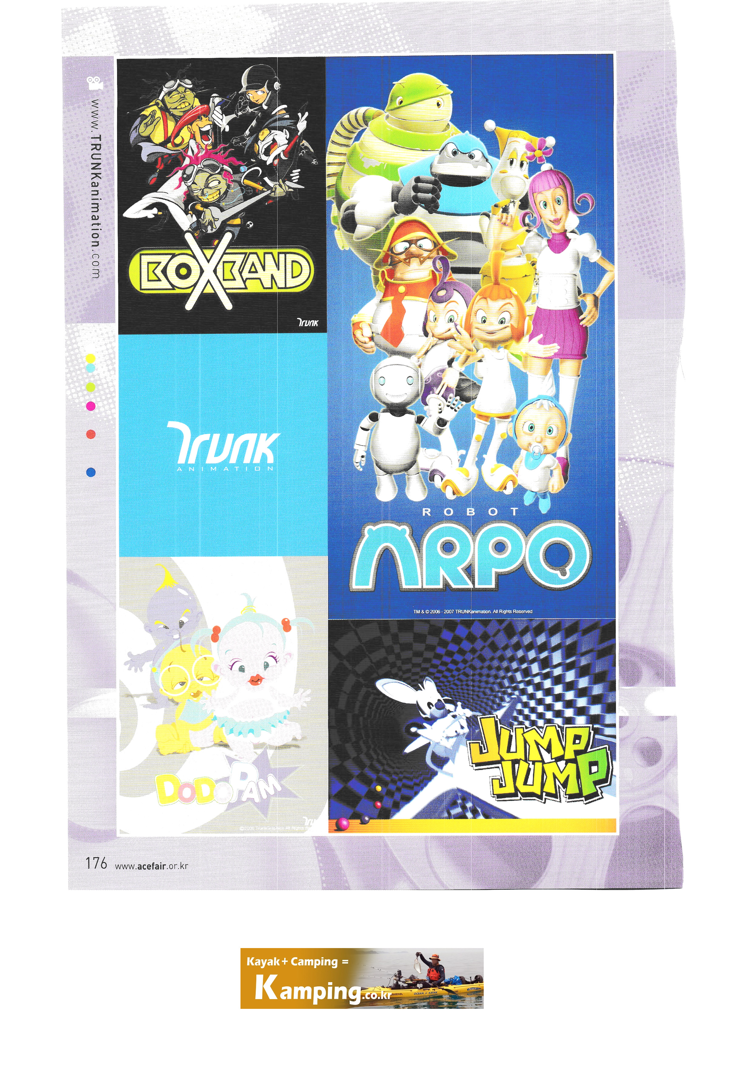 | La 2da Exposición Internacional de la Industria Cultural Creativa-5 Comunicación del canal uno Artículos de personaje Sak Media Línea de caracteres gabinete Comunidad KTS Co., Ltd. Ingeniería Taesung Animación del tronco Food TV Inc. Pixels Inc. Pixel Planet Co., Ltd. Korea Economic Daily TV Comunicación de información geoespacial de Corea 9) Canal de pesca de Corea FTV Corea inet Asociación de personajes de Corea Hyundai Home Shopping Equipo del proyecto de formación profesional de la industria cultural de la Universidad de Honam Museo de Escultura de Regeneración Ambiental Base Camp Productions Pty Ltd |