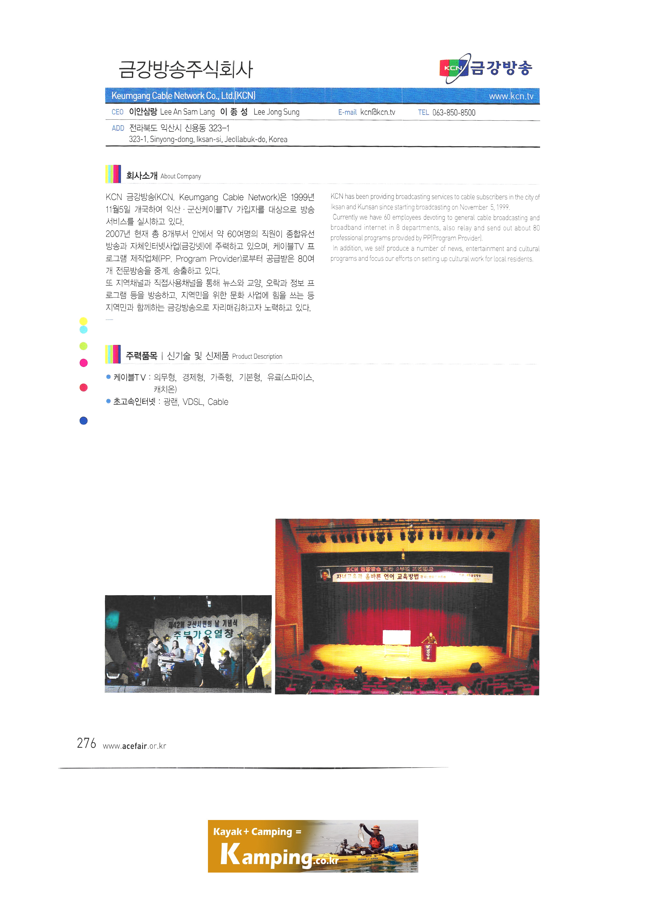 | 제 2 회 국제 문화 창의 산업전 -7 Da Ai Television Easyfun Entertainment ePhoenix Networks Co. Ltd. Tzuchi Communications and Culture Foudation Agent VFX Co. LTD. Bright Beacon Animation Chaiyo Productions Co. Ltd. MEDIA OF MEDIAS PUBLIC COMPANY LIMITED Right Beyond Co. Ltd. Software Industry Promotion Agency TRT-TURKISH RADIO & TELEVISION CORPORATION Academy of Art University Barstormer Productions Cine Excel Entertainment, Inc Eleven Arts, Inc. Hollywood Classics USA / Inframe Pet Bird Entertainment MULTIMEDIA JOINSTOCK COMPANY 한국케이블TV방송협회 ㈜한국케이블TV광주방송 CMB광주,전남방송 호남방송,서남방송 ㈜한국케이블TV전남동부방송 ㈜티브로드전주방송 금강방송주식회사 ㈜한국케이블TV전북방송 ㈜씨앤앰 |
