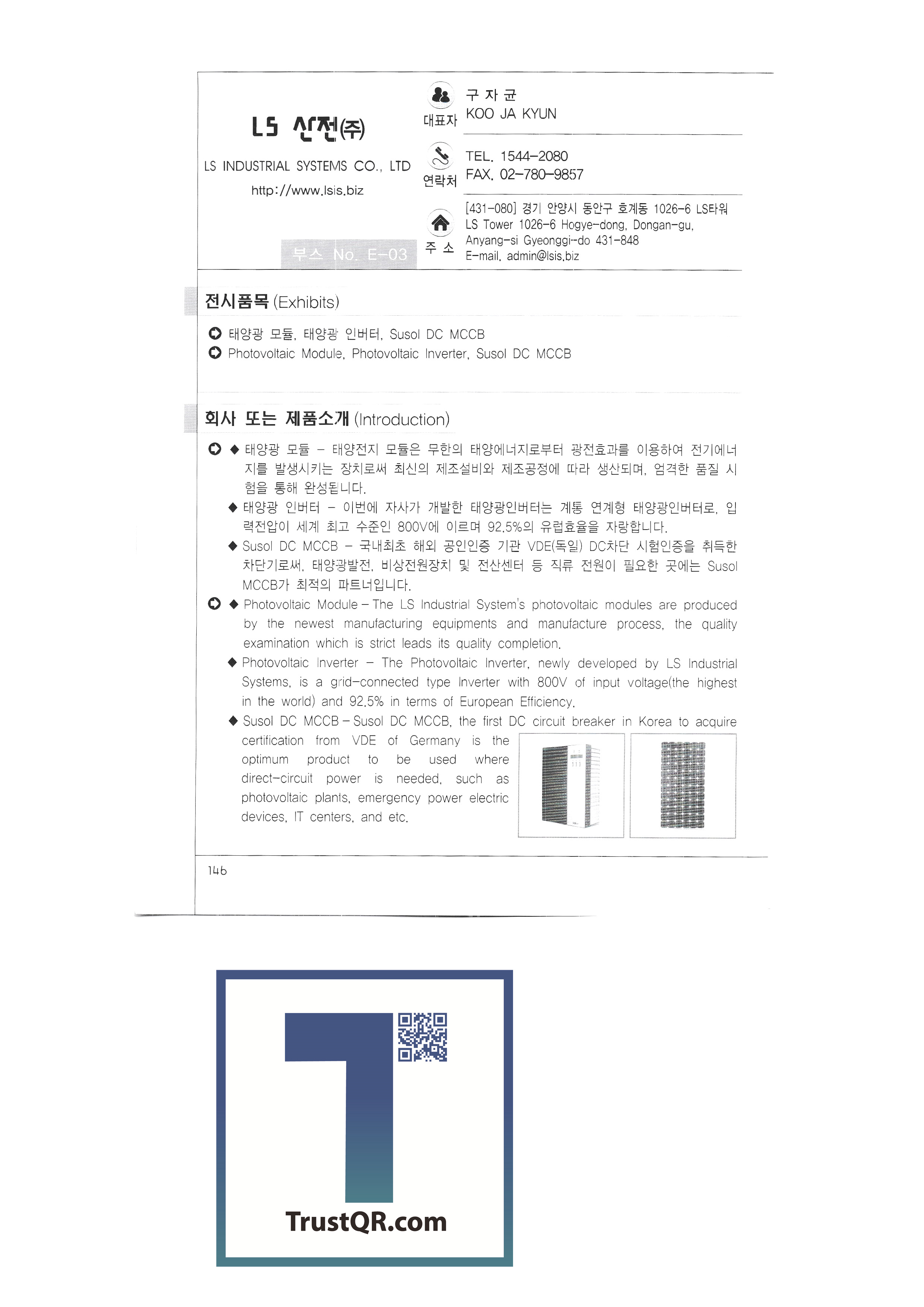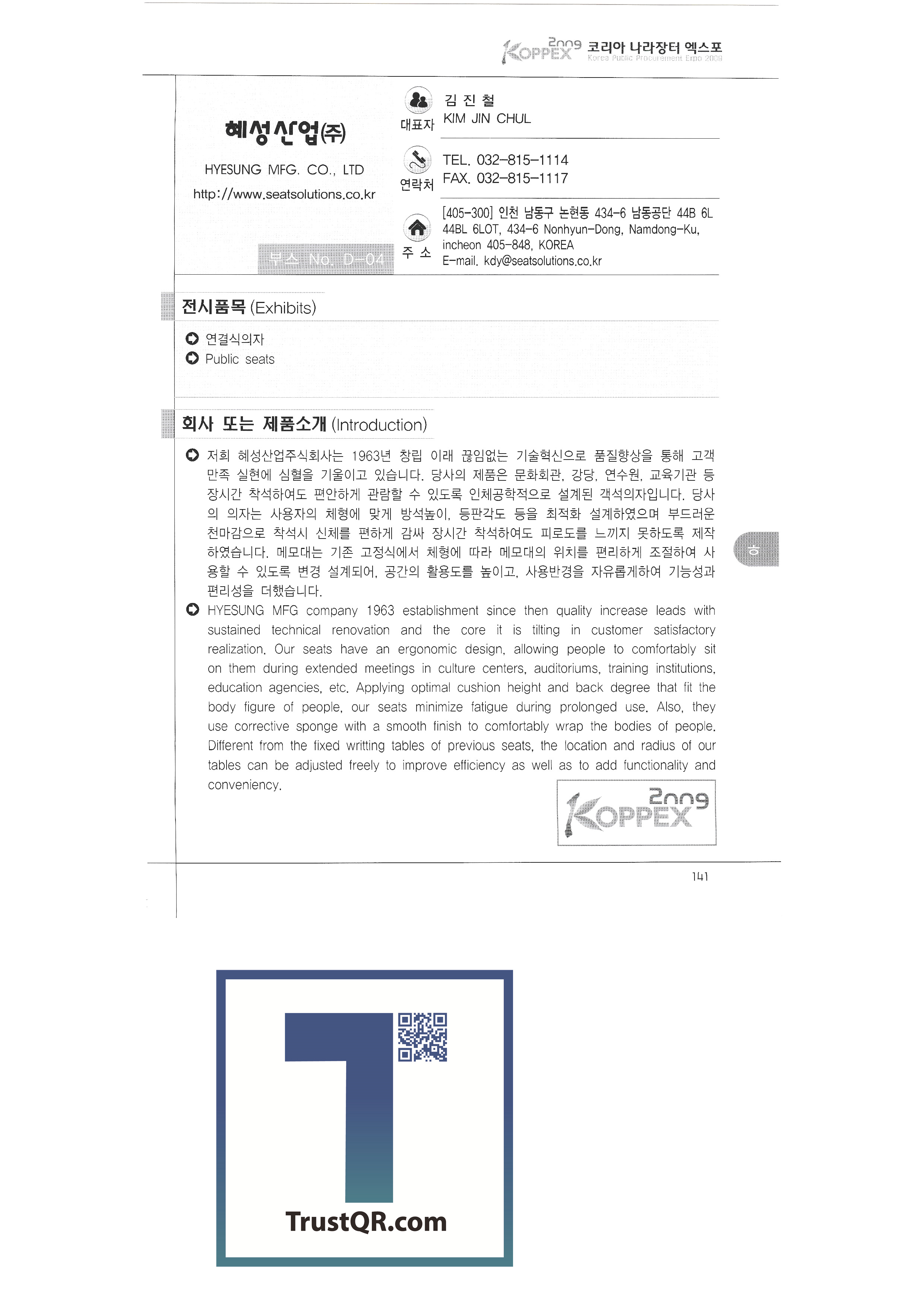 KOPPEX Korea Nara Market Expo 2009-5 Hydeok Co., Ltd. Hyesung Industry Co., Ltd. Hwawoo Technology Co., Ltd. Hwangto Biotech Co., Ltd. Human Medextech Co., Ltd. LG Electronics LS Industrial Systems Co., Ltd. PPL Peace Co., Ltd. |