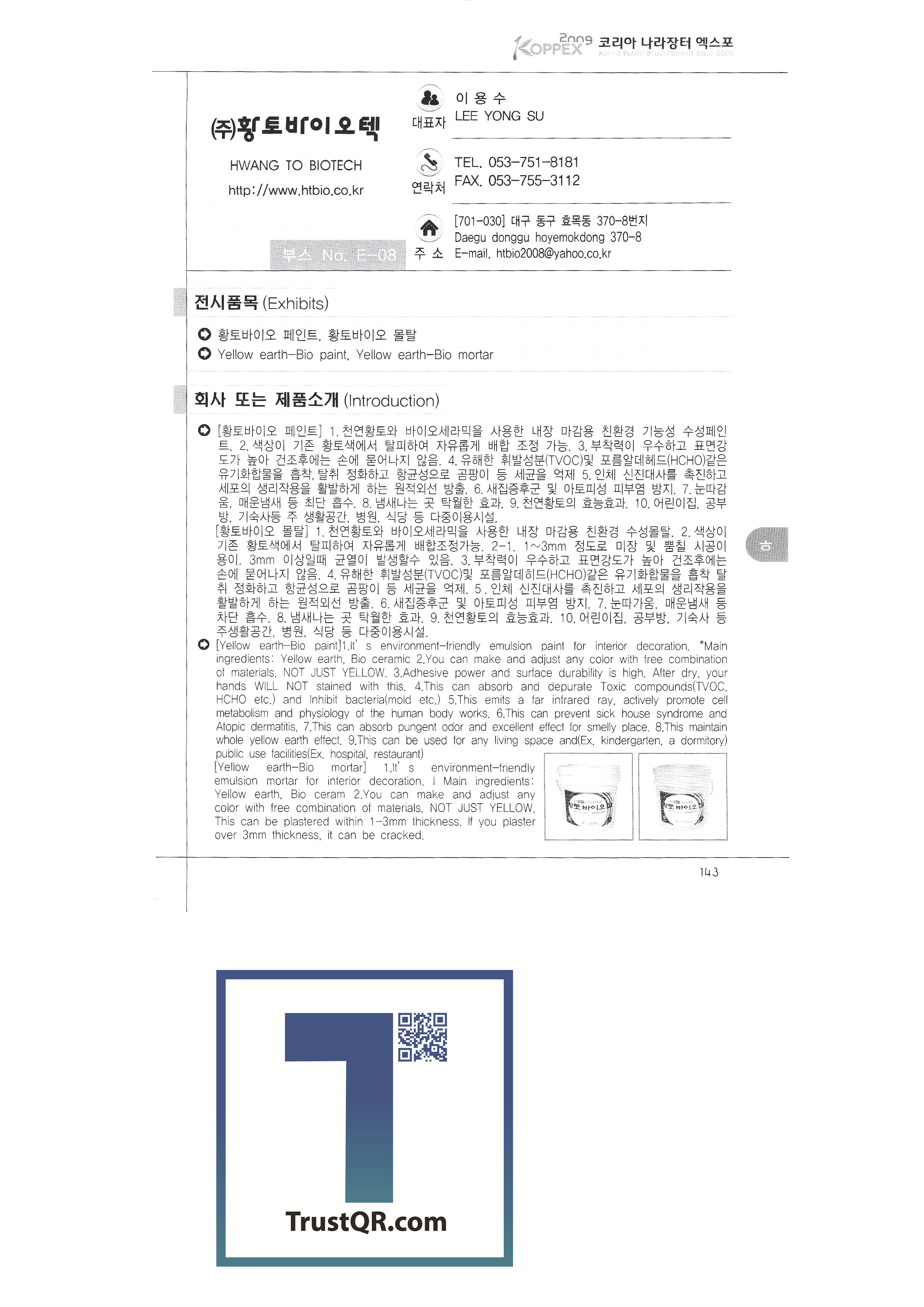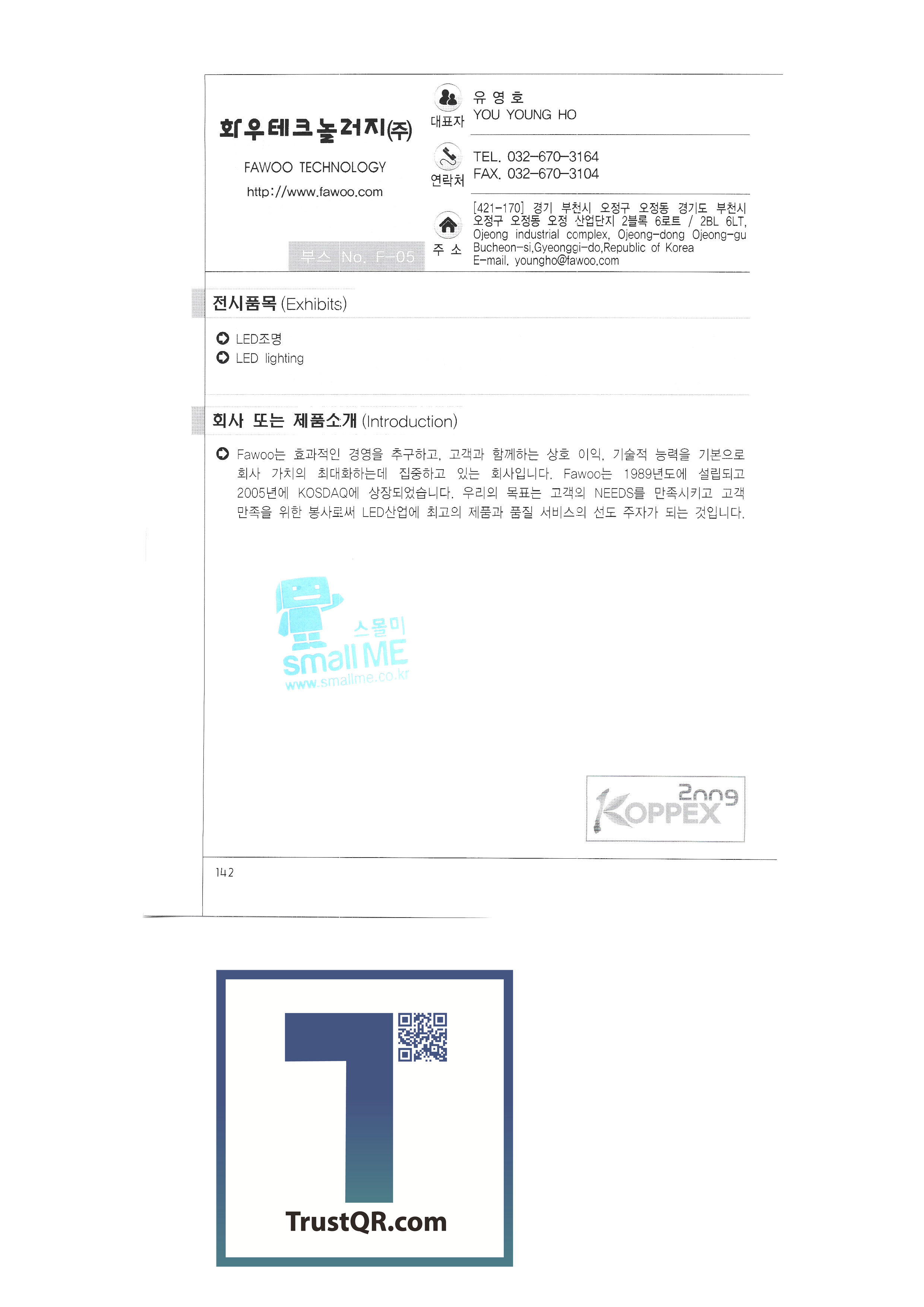 | KOPPEX Korea Nara Market Expo 2009-5 บจก. ไฮด็อก Hyesung Industry Co. , Ltd. บริษัท ฮวาวูเทคโนโลยี จำกัด บริษัท ฮวางโตไบโอเทค จำกัด บริษัท ฮิวแมนเมดเทคเทค จำกัด LG Electronics บจก. แอลเอสอินดัสเตรียลซิสเต็มส์ บจก. พีพีแอลพีซ |